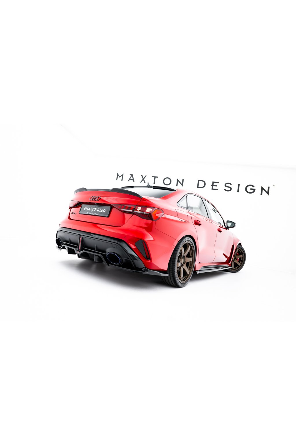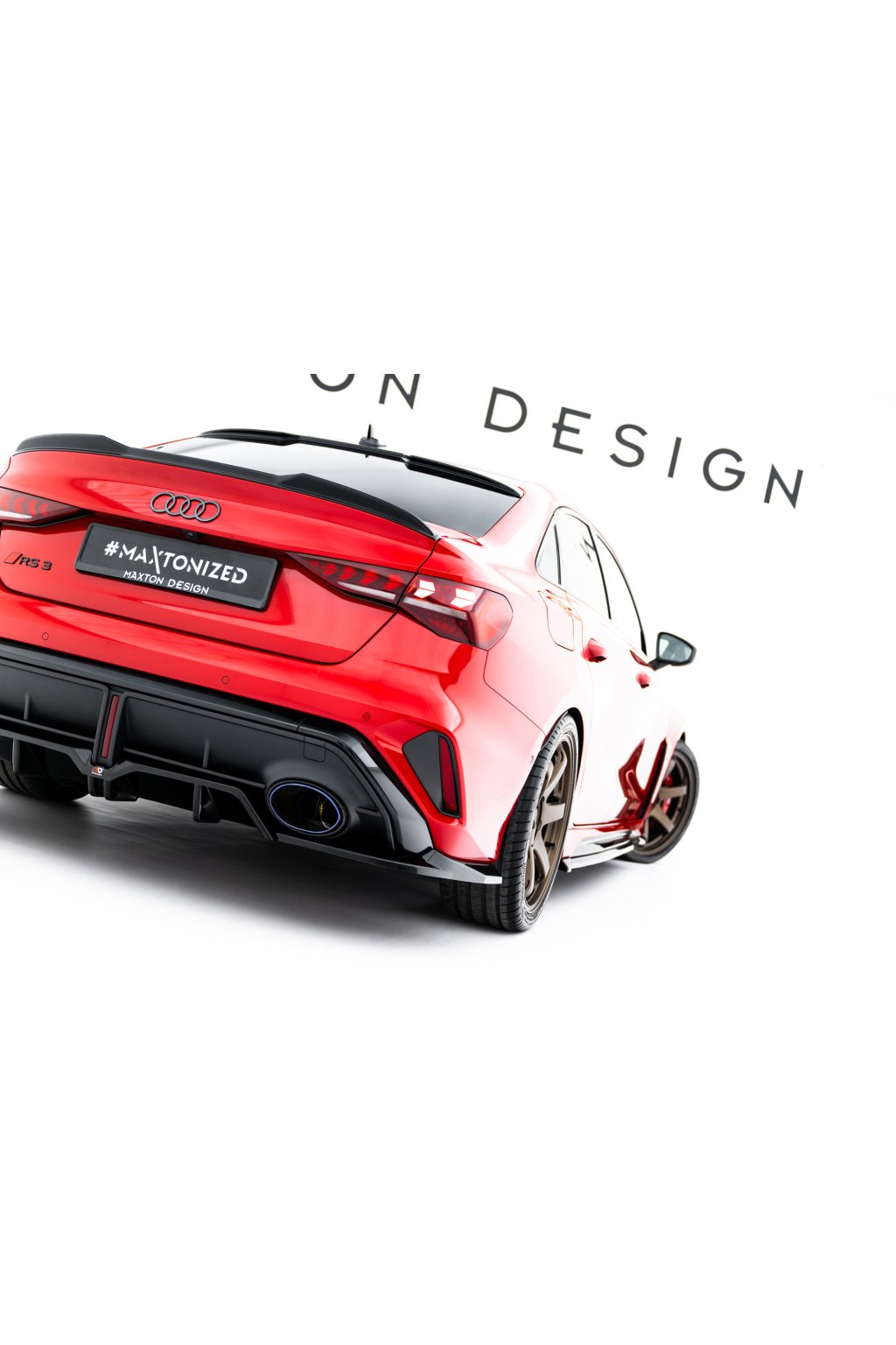 Maxton Design spoiler pod zadní nárazník s žebrováním v.1 pro Audi RS3 8Y Facelift, černý lesklý plast ABS, Sedan