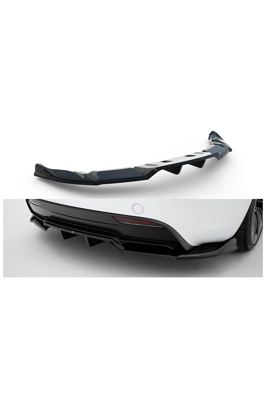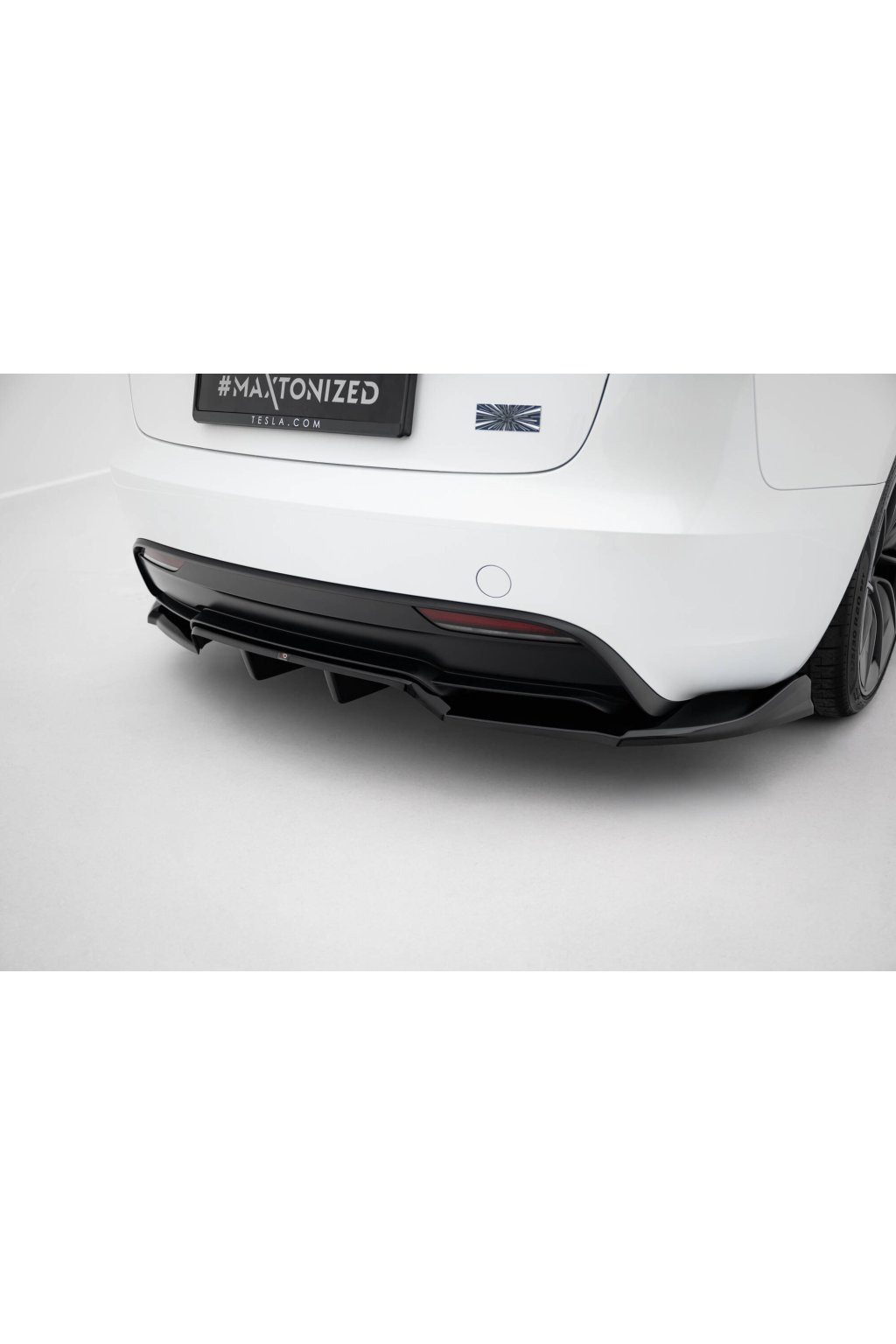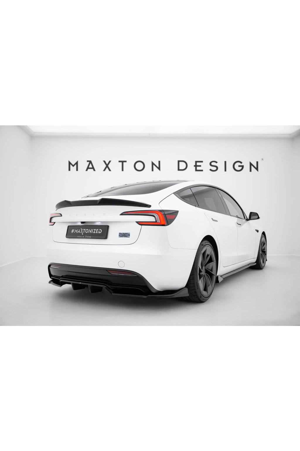 Maxton Design spoiler pod zadní nárazník s žebrováním v.1 pro Tesla Model 3 Mk1 Project Highland Facelift, černý lesklý plast ABS, Performance