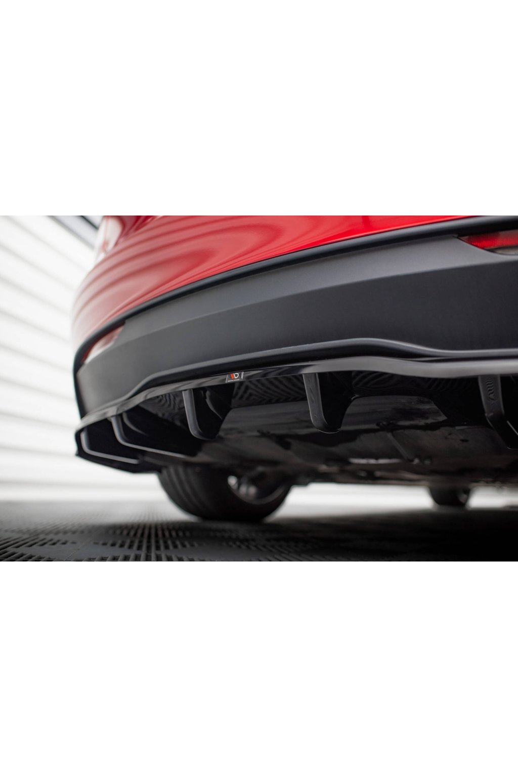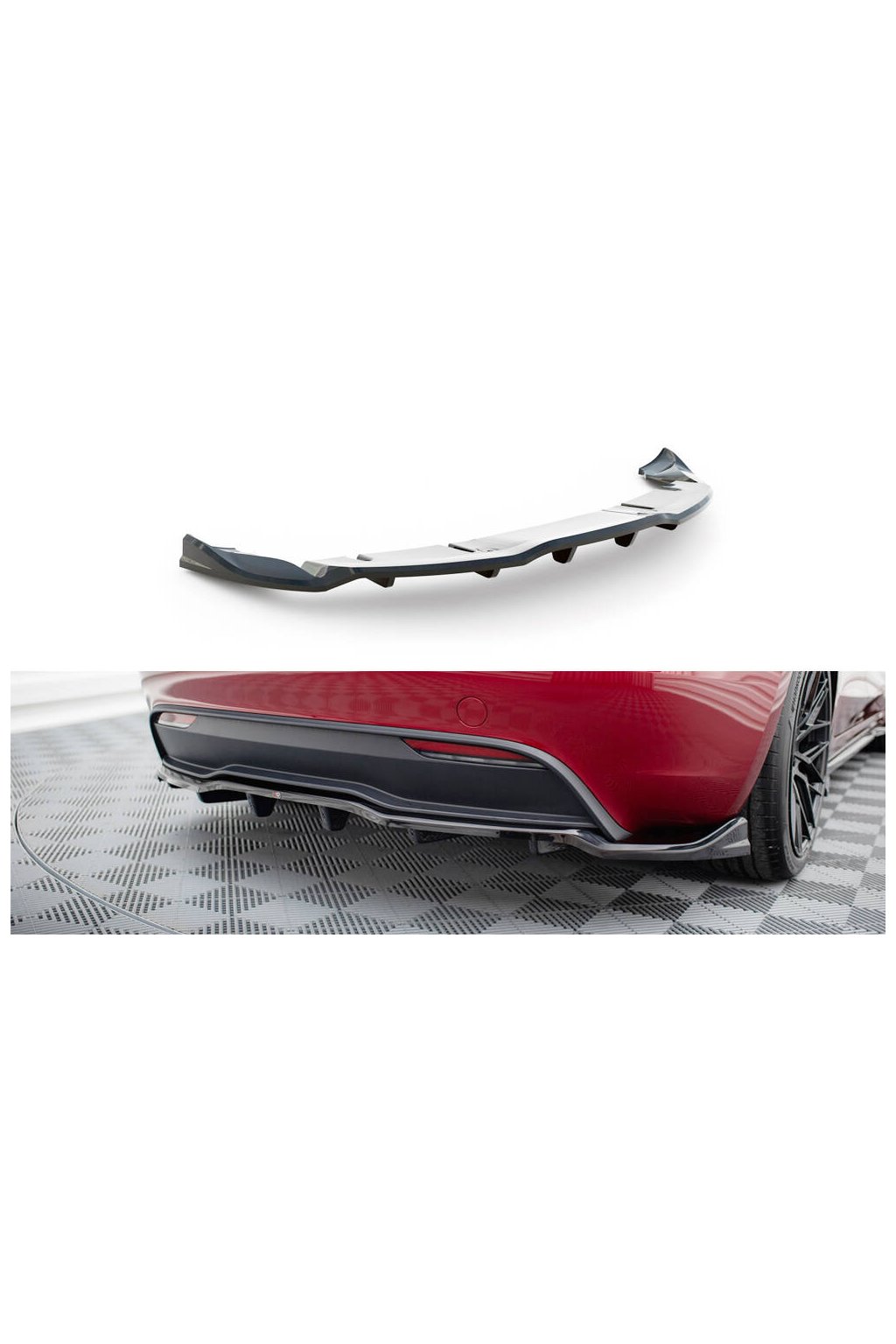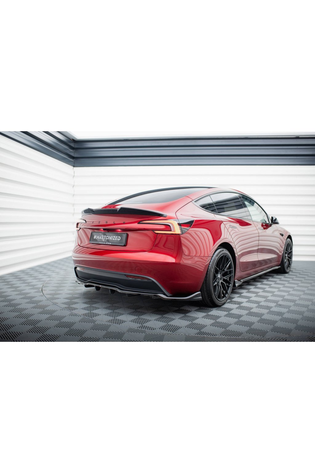 Maxton Design spoiler pod zadní nárazník s žebrováním v.1 pro Tesla Model 3 Mk1 Project Highland Facelift, černý lesklý plast ABS