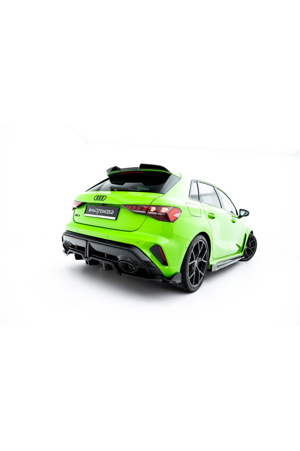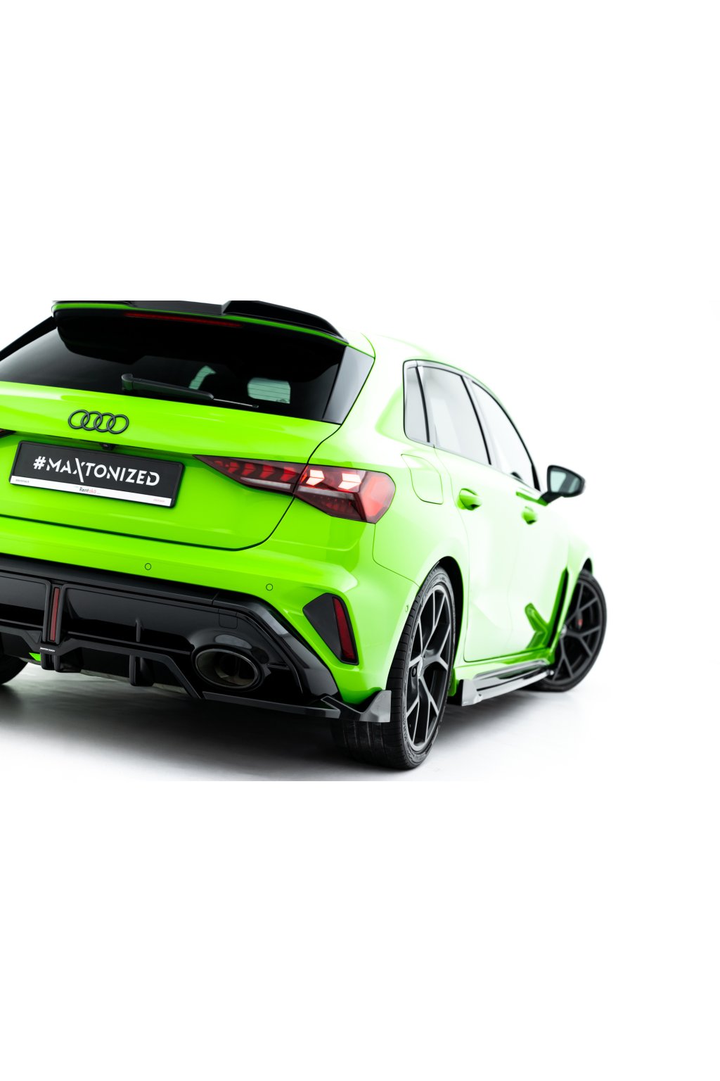 Maxton Design spoiler pod zadní nárazník s žebrováním v.3 pro Audi RS3 8Y Facelift, černý lesklý plast ABS, Sportback