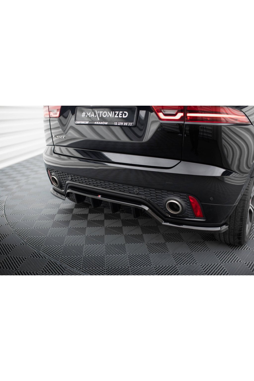 Maxton Design středový spoiler pod zadní nárazník s žebrováním pro Jaguar E-Pace Mk1 R-Dynamic, černý lesklý plast ABS