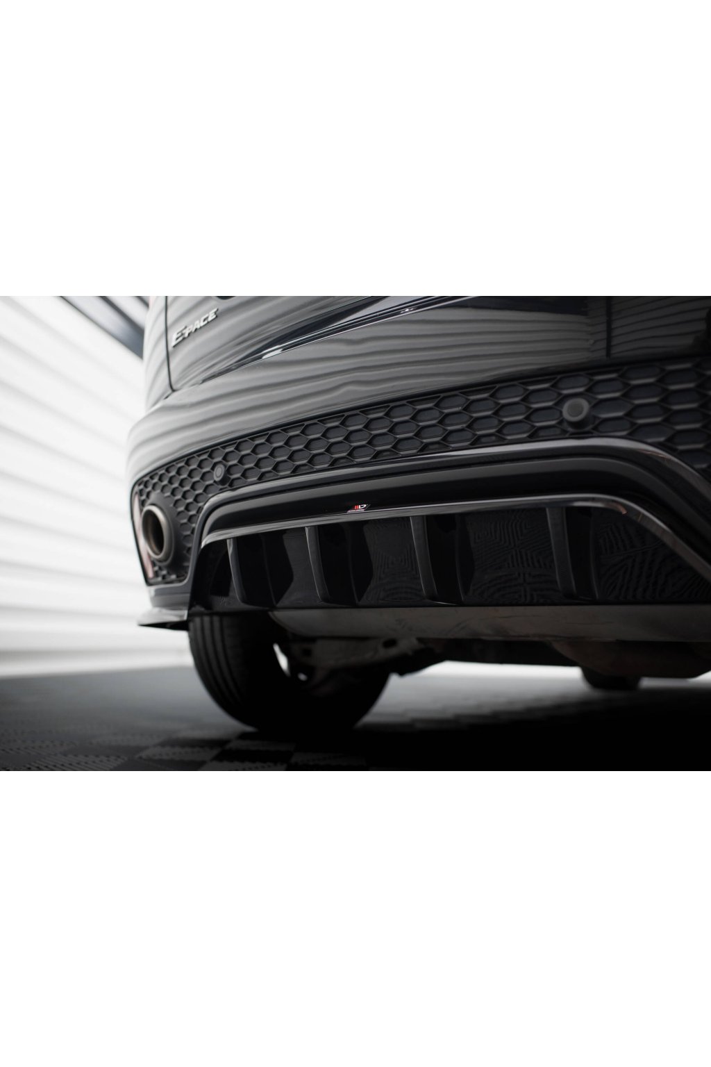 Maxton Design středový spoiler pod zadní nárazník s žebrováním pro vozidlo Jaguar E-Pace Mk1 R-Dynamic . Povrchová úprava spoileru černý lesklý plast ABS.