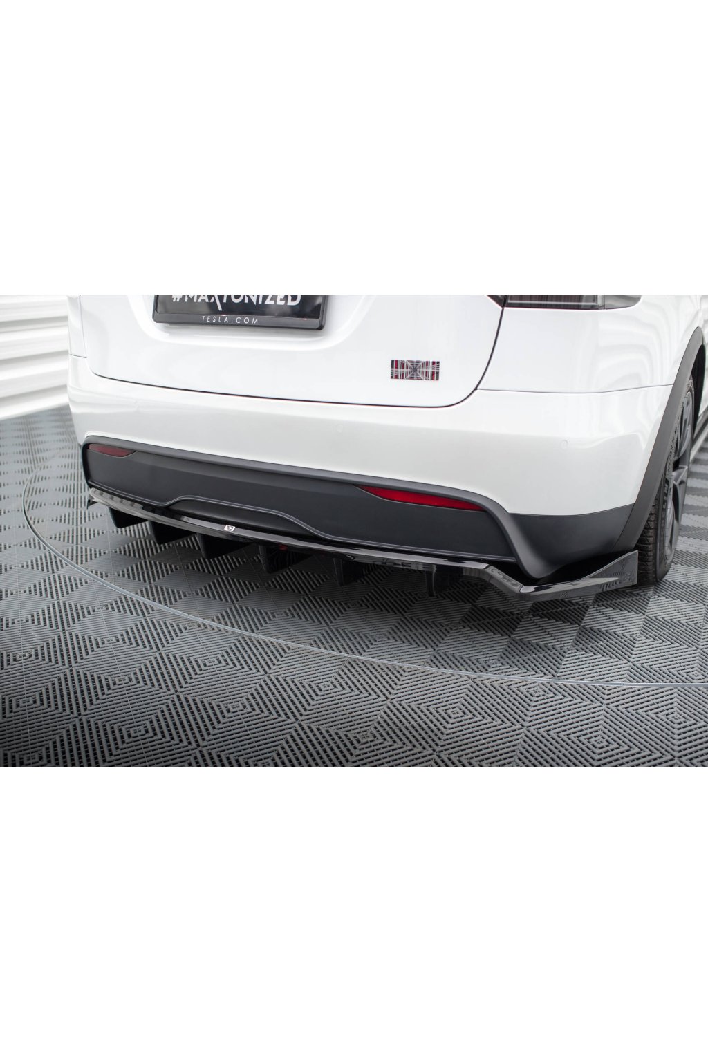 Maxton Design středový spoiler pod zadní nárazník s žebrováním pro Tesla Model X Mk1 Facelift, černý lesklý plast ABS