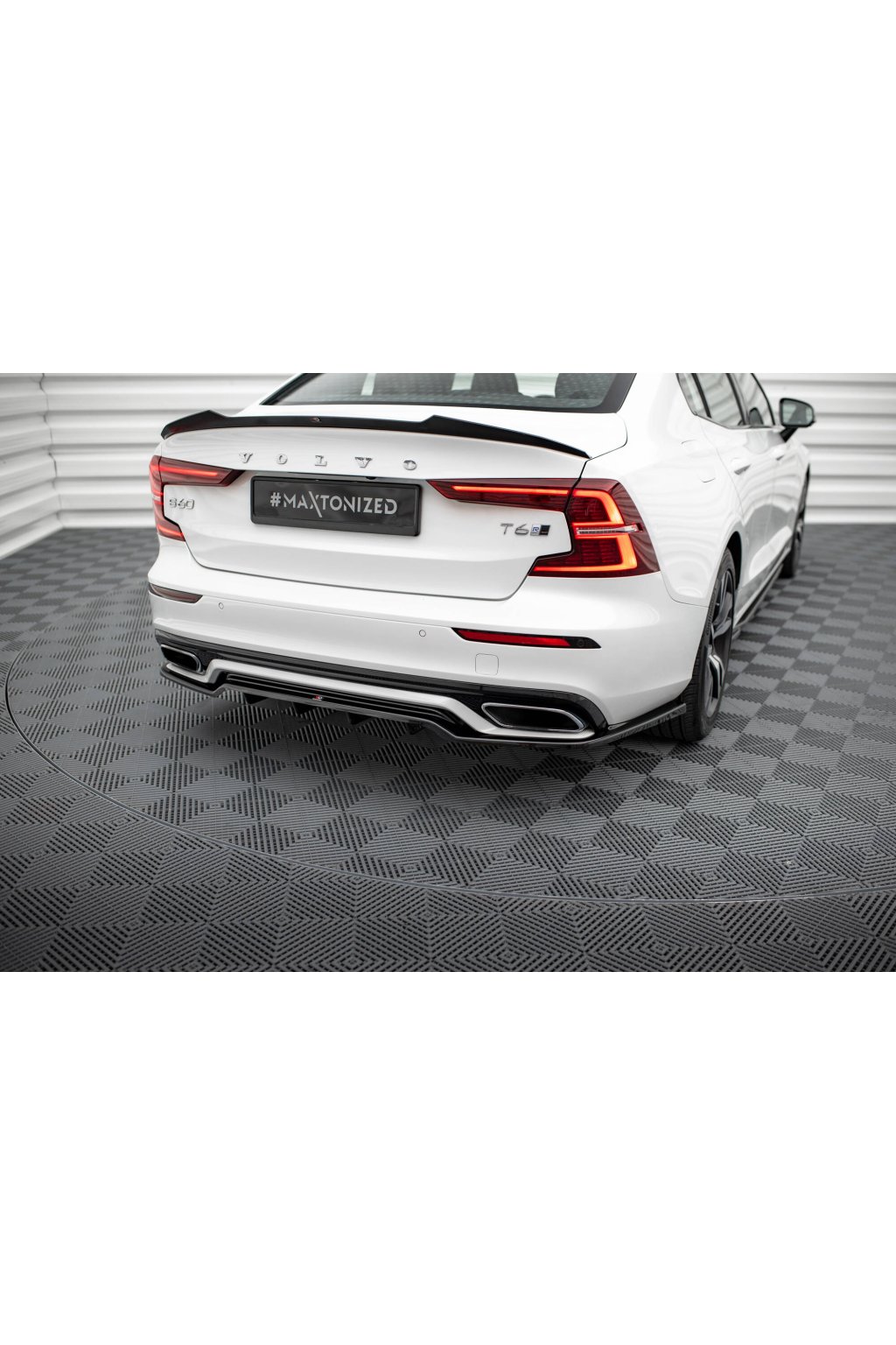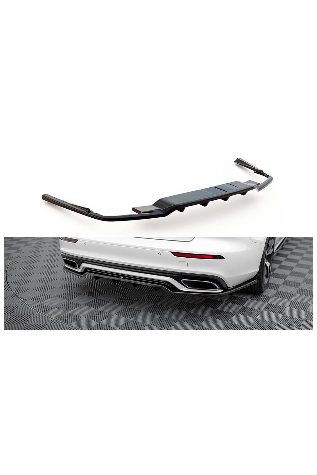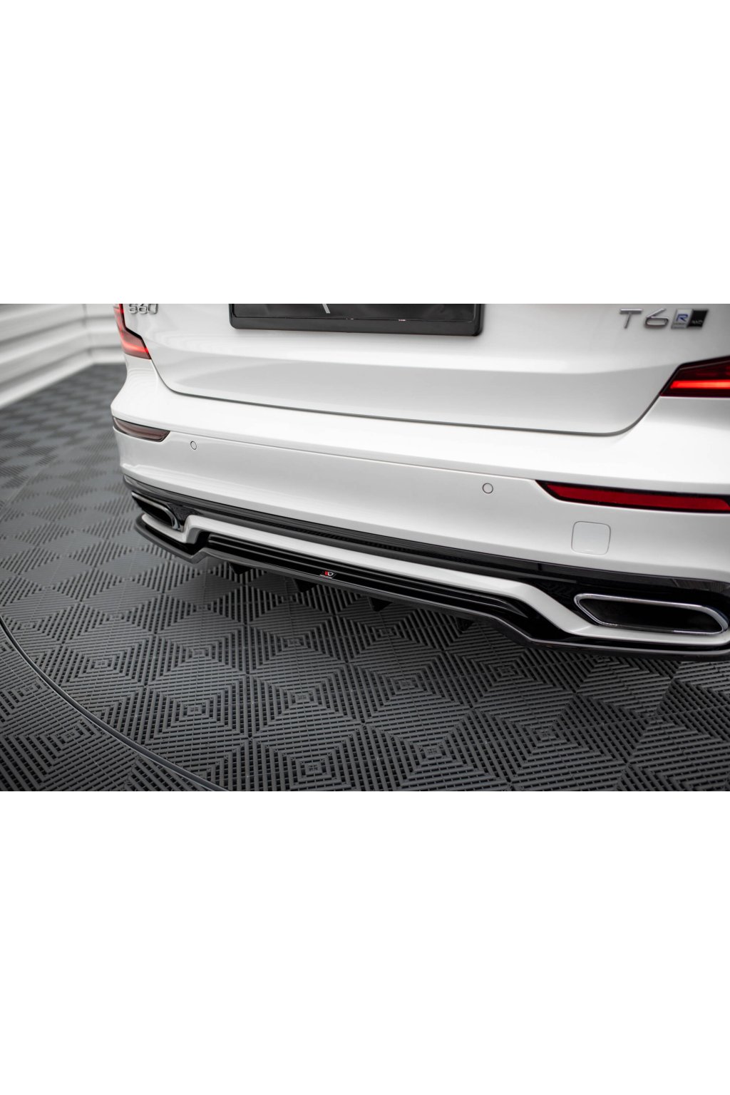 Maxton Design středový spoiler pod zadní nárazník s žebrováním pro Volvo V60 R-Design Mk3, černý lesklý plast ABS