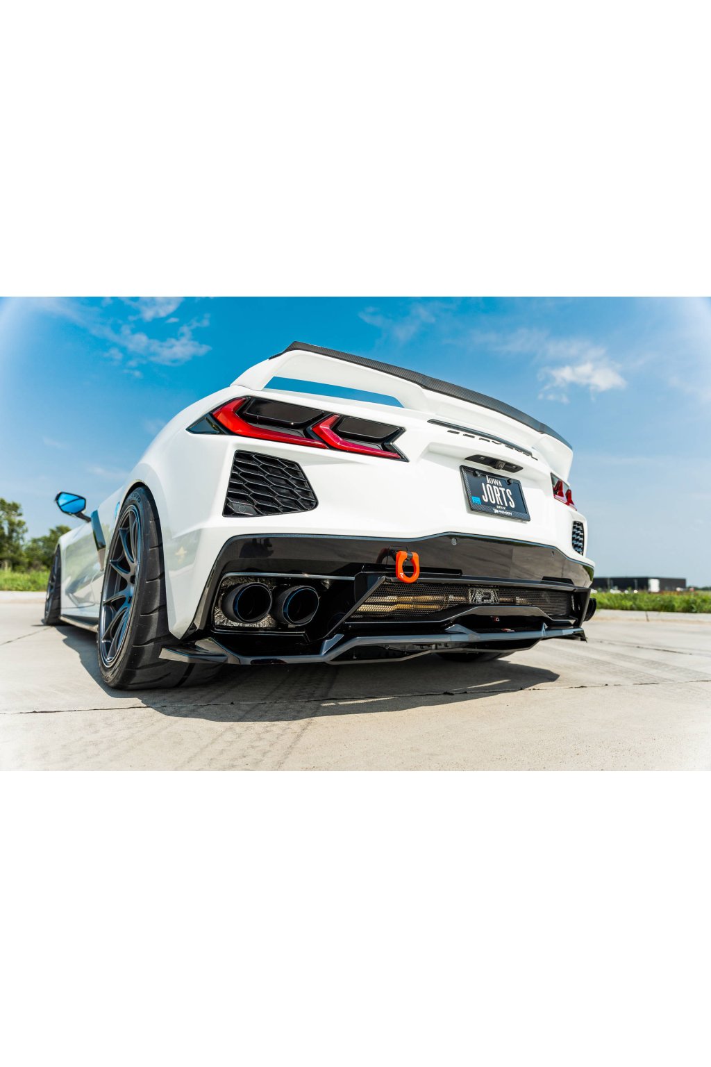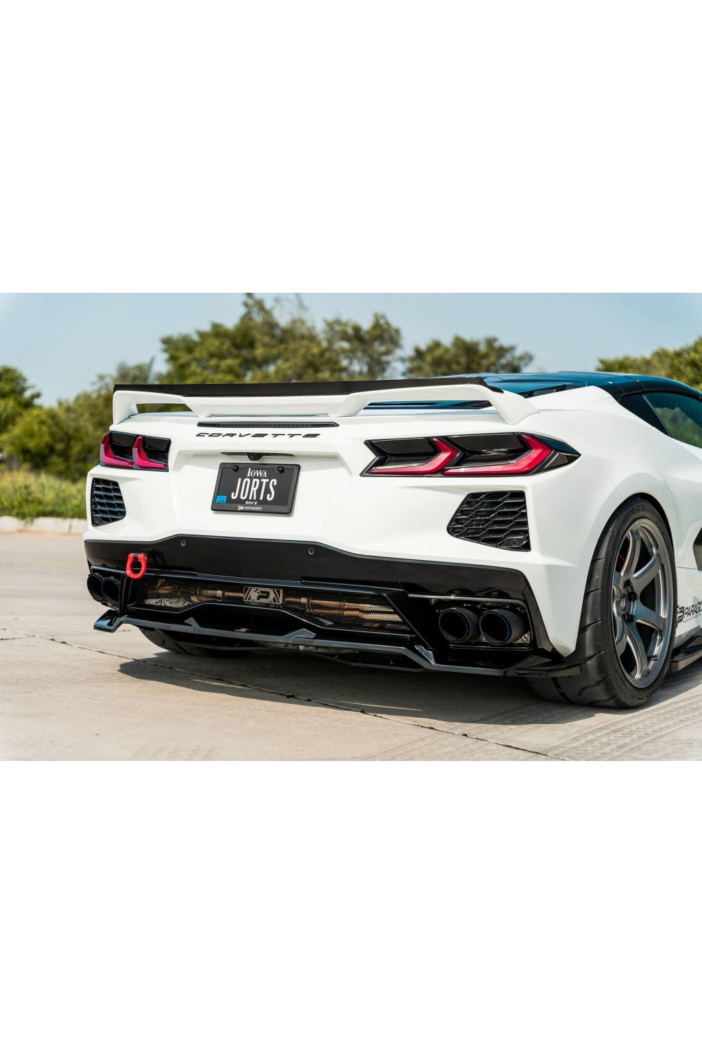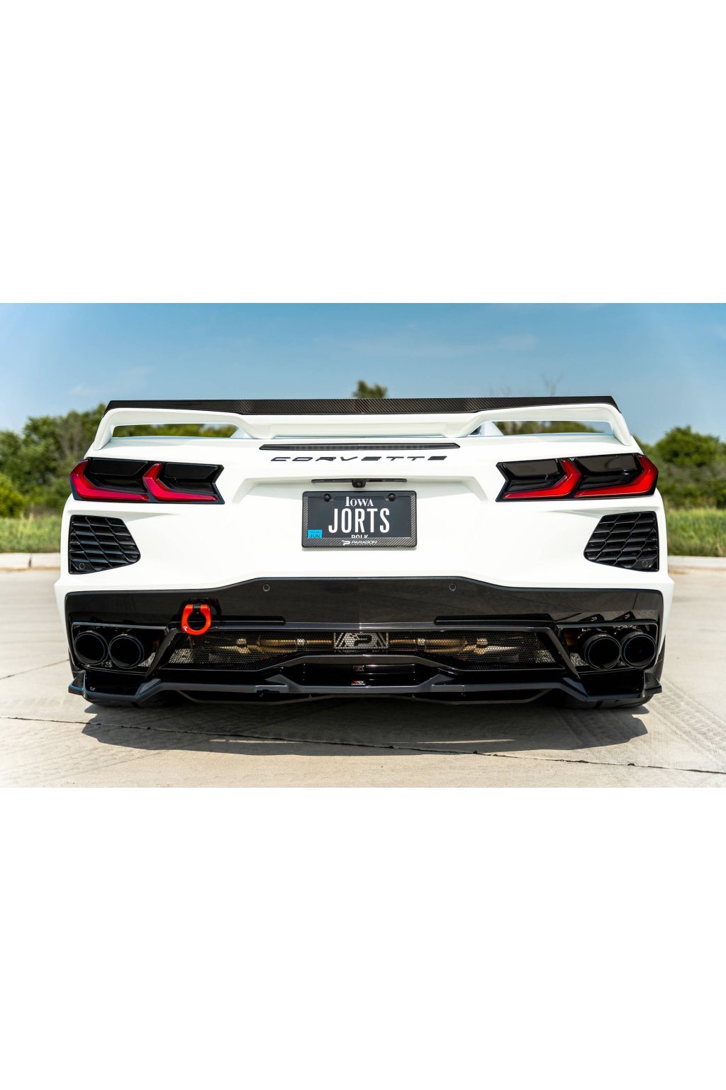 Maxton Design středový spoiler zadního nárazníku pro vozidlo Chevrolet Corvette C8 . Povrchová úprava spoileru černý lesklý plast ABS.