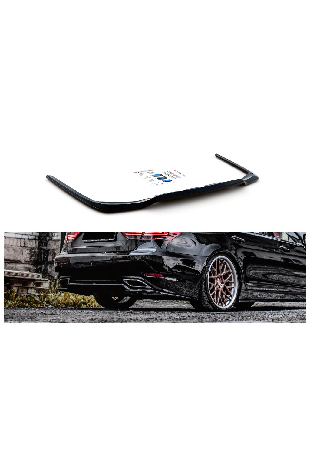 Maxton Design středový spoiler zadního nárazníku pro vozidlo Lexus LS Mk4 . Povrchová úprava spoileru černý lesklý plast ABS.