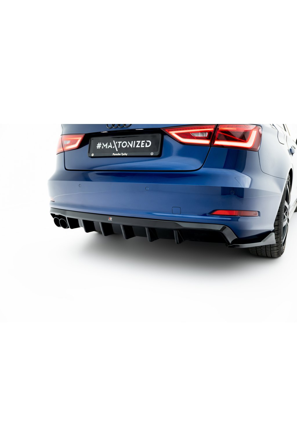Maxton Design vložka zadního nárazníku pro Audi A3 8V, černý lesklý plast ABS, Sedan, verze s dvojitou koncovkou na jedné straně