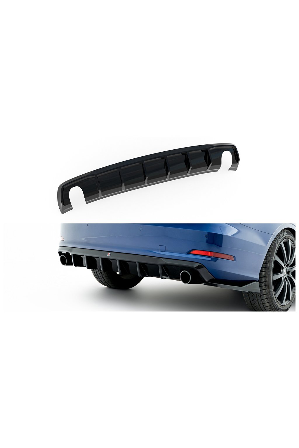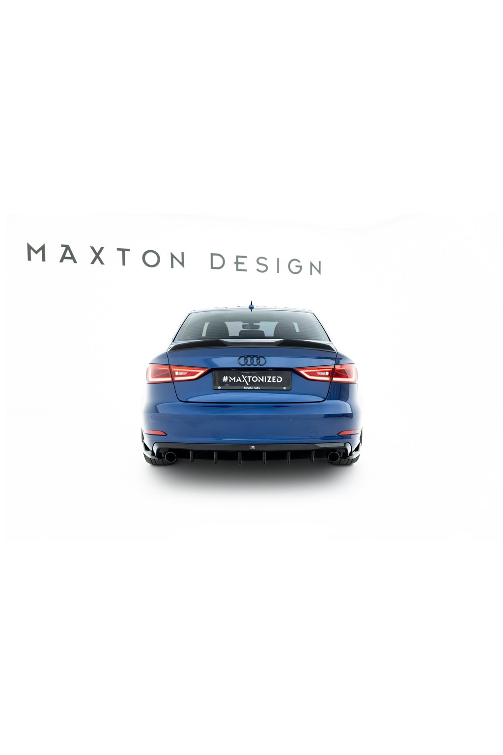 Maxton Design vložka zadního nárazníku pro Audi A3 8V, černý lesklý plast ABS, Sedan, verze s jednoduchou koncovkou na obou stranách