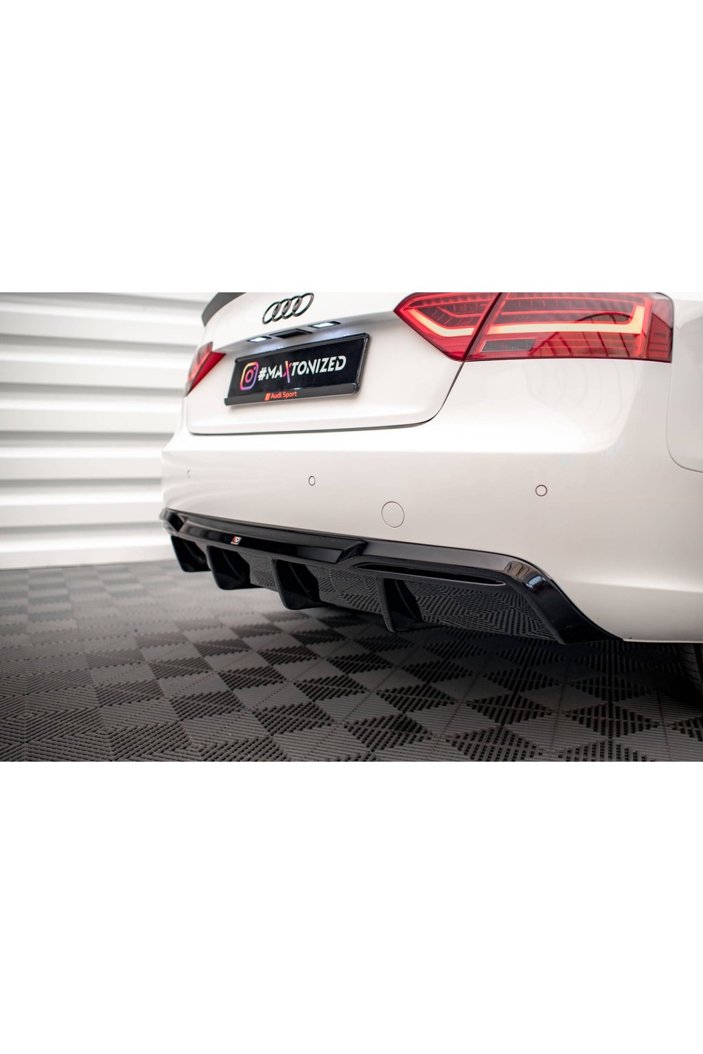 Maxton Design vložka zadního nárazníku pro Audi A5 8T FL, černý lesklý plast ABS, Sportback, s dvojitou koncovkou na jedné straně