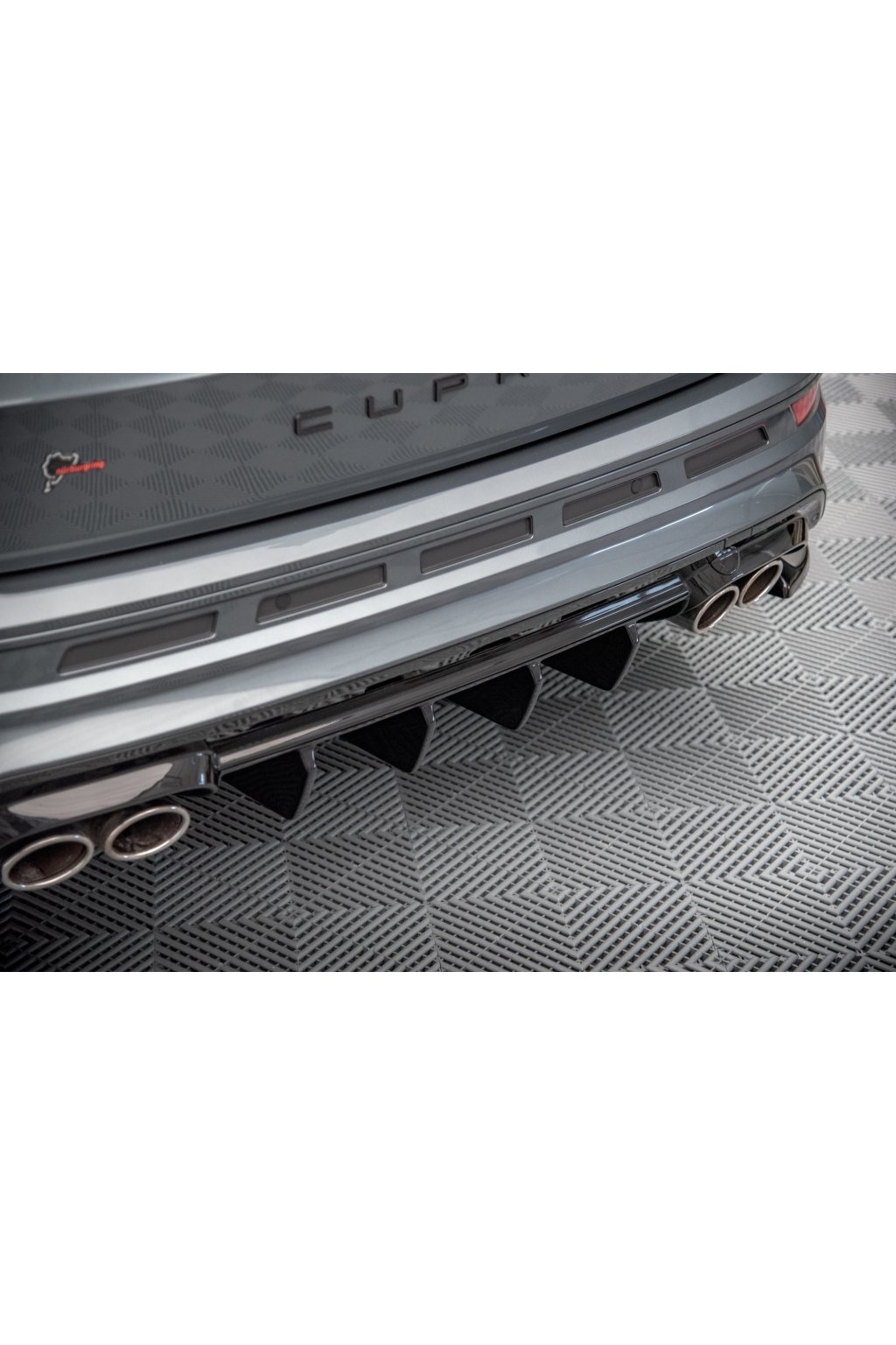 Maxton Design vložka zadního nárazníku pro vozidlo Cupra Ateca . Povrchová úprava spoileru carbon-Look.