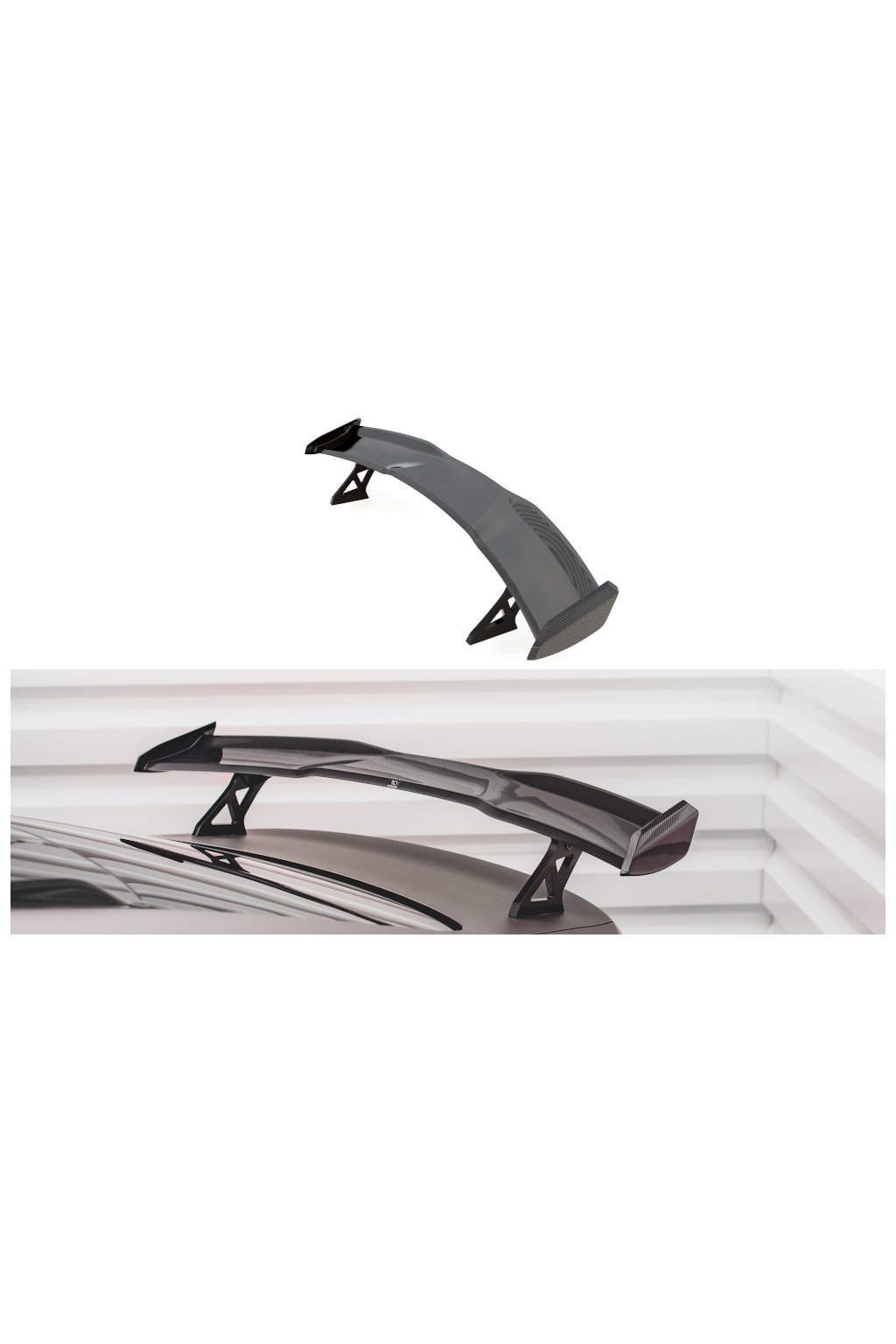 Výrazné křídlo na víko kufru upravuje proudění vzduchu kolem zadní části vozu a podstatně zvýrazňuje sportovní charakter vozu. Součástí balení je montážní materiál a stojny vyrobené z černě lakovaného hliníku.