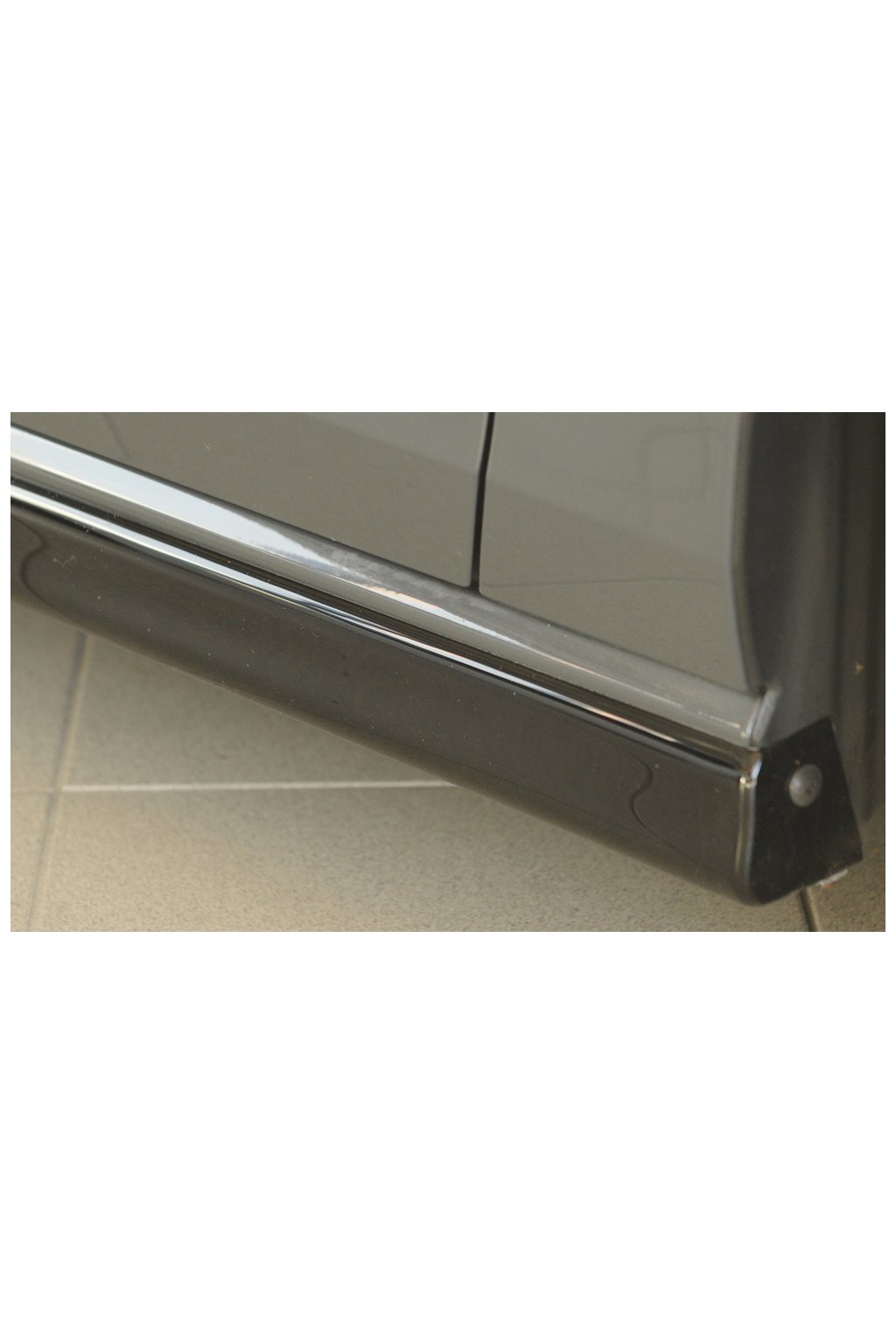 Boční práh Rieger Tuning určen k montáži na vozy Volkswagen Golf 8 3-dvéř.. Provedení v černém lesklém laku bez nutnosti dalšího lakování.
