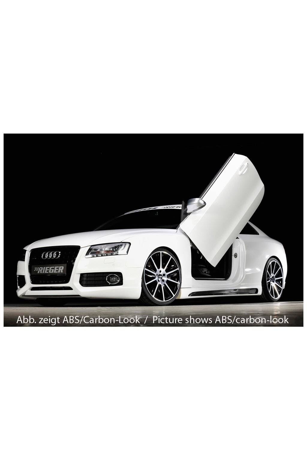 Boční práh Rieger Tuning určen k montáži na vozy Audi A5 S5 B8, B81 kabriolet, kupé vč. faceliftu r.v. 06/07-07/11, 10/11-06/16. Je dodáván v provedení plast ABS bez povrchové úpravy, určeno k lakování.