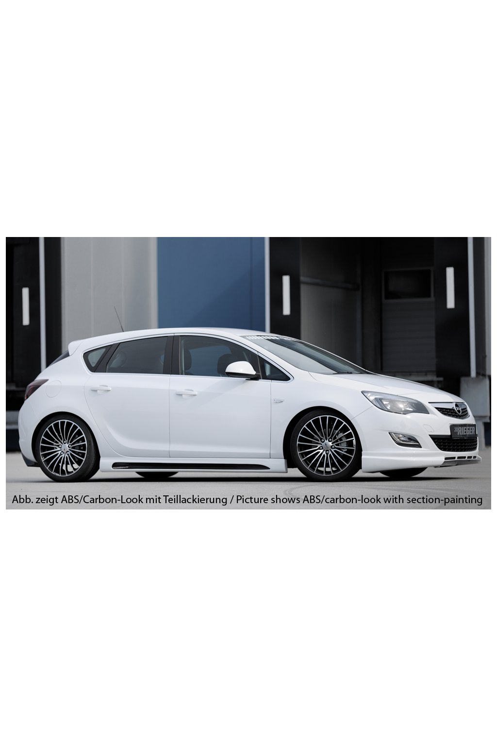 Rieger boční práh mont. strana levá pro Opel Astra J 5-dvéř., hatchback, sedan/notchback, sports tourer vč. faceliftu, r.v. 10/12-, 11/08-09/12, plast ABS s povrchovou úpravou Carbon-Look, s prolisem a výřezem