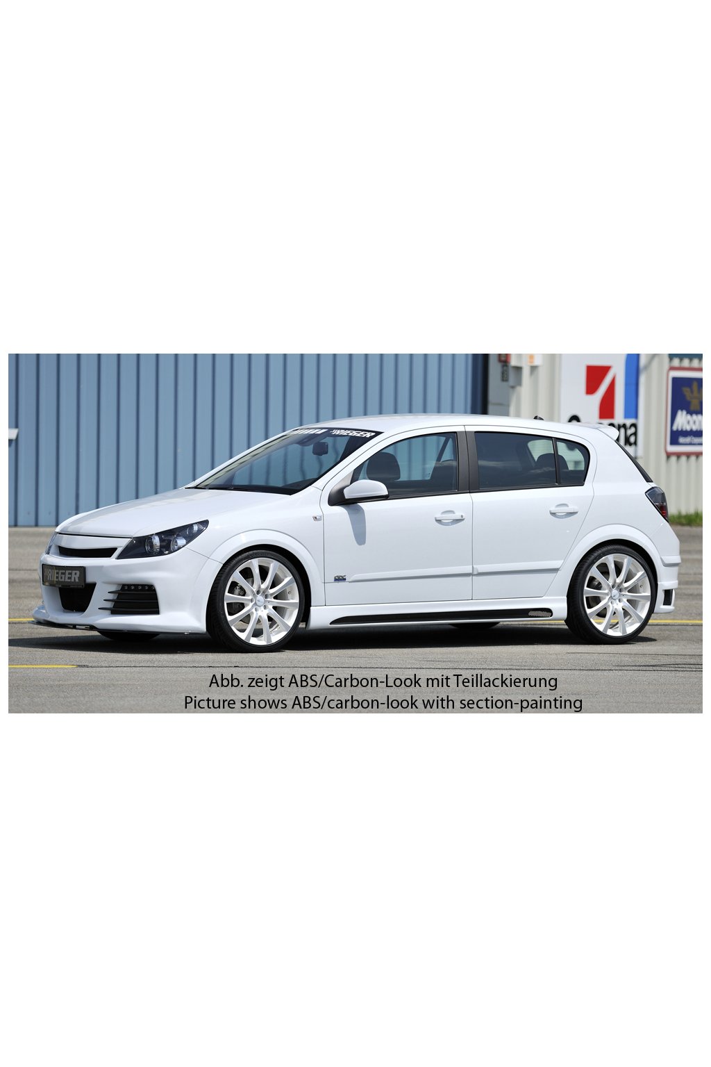 Boční práh Rieger Tuning určen k montáži na vozy Opel Astra H 5-dvéř., hatchback, notchback r.v. 03/04-. Je dodáván v provedení plast ABS bez povrchové úpravy, určeno k lakování.
