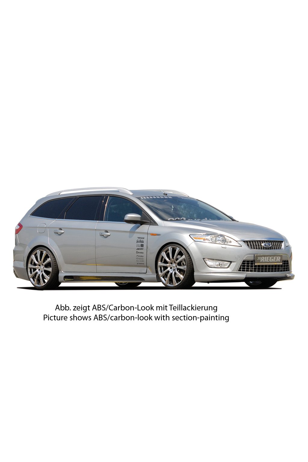 Boční práh Rieger Tuning určen k montáži na vozy Ford Mondeo BA7 combi, fastback, sedan vč. faceliftu r.v. 03/07-09/10, 10/10-09/14. Je dodáván v provedení plast ABS bez povrchové úpravy, určeno k lakování.