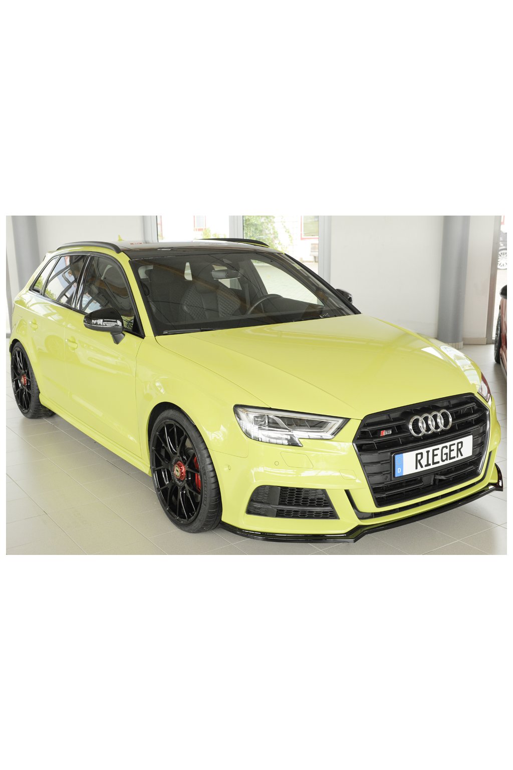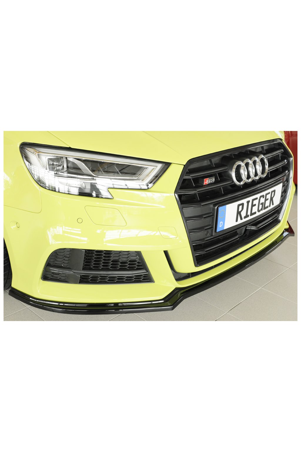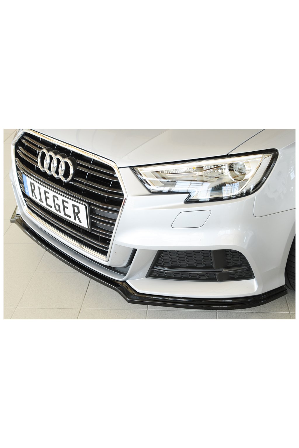Rieger Tuning lipa pod přední nárazník pro Audi A3 S3 8V 3-dvéř. (hatchback 8V1), 5-dvéř. (sportback 8VA) po faceliftu, 09/16-, plast ABS lakovaný do černé lesklé barvy.