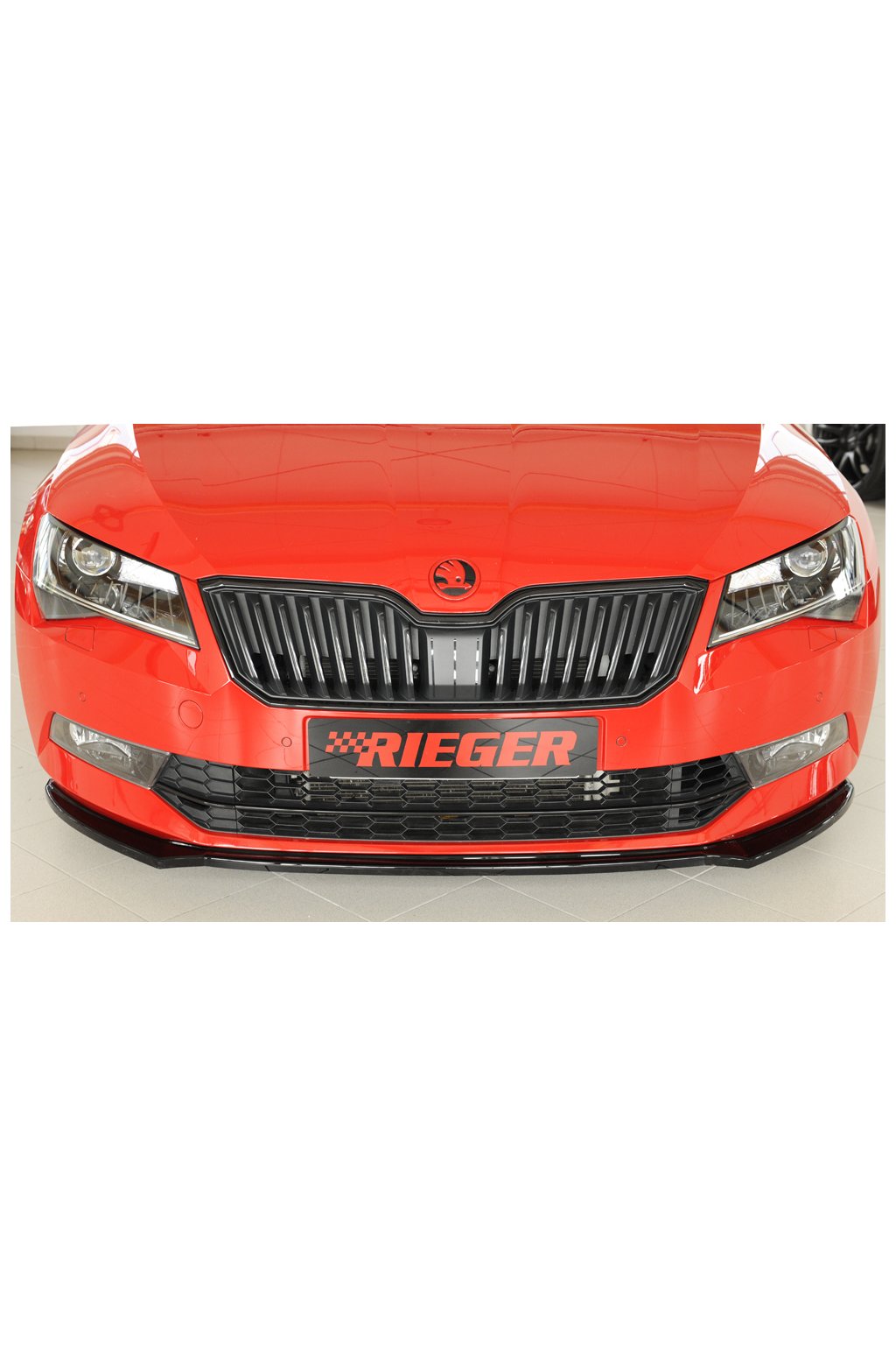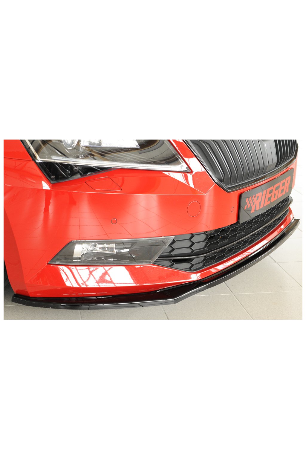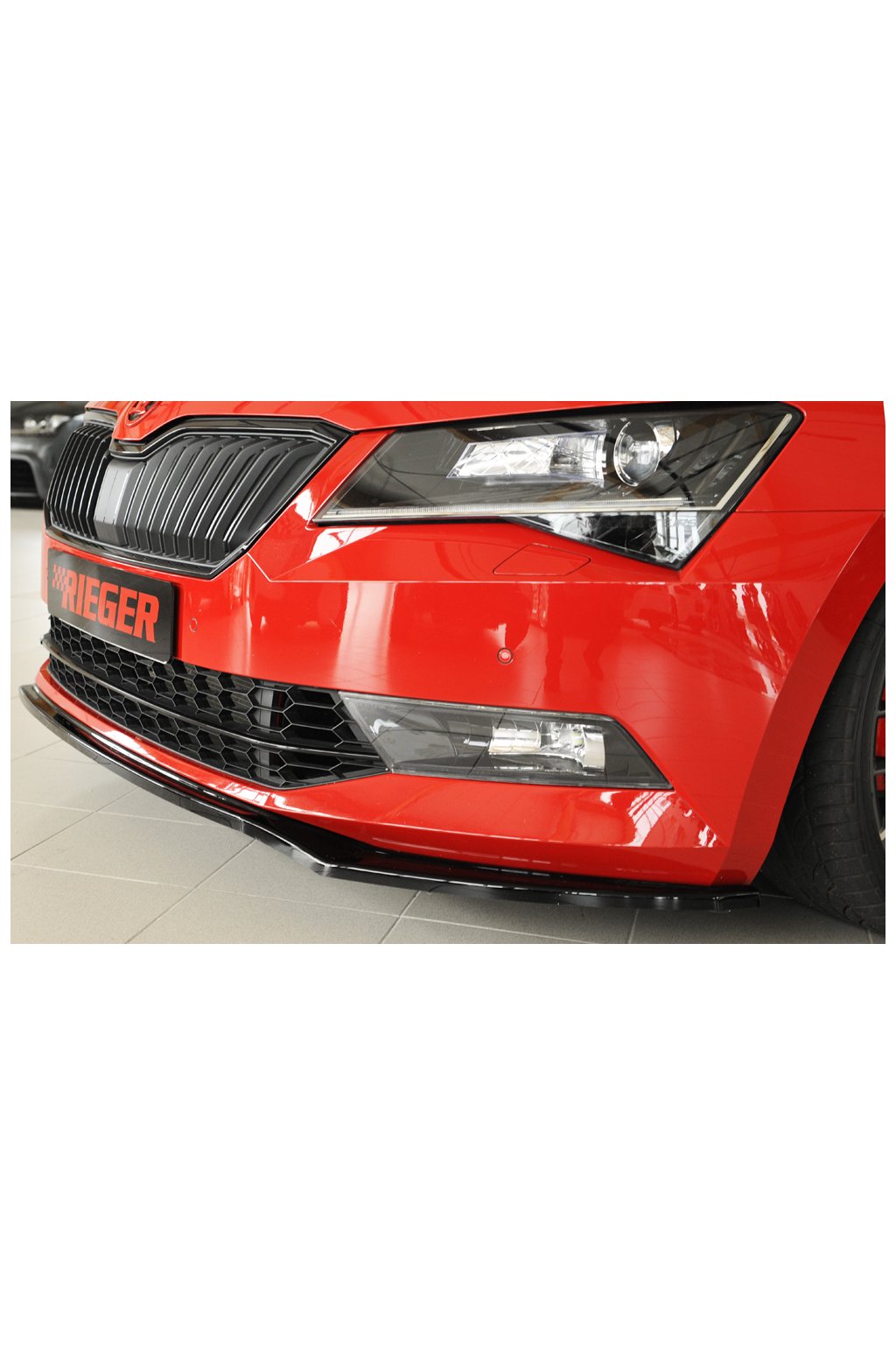 Rieger Tuning lipa pod přední nárazník pro Škoda Superb III 3T, 3V combi, sedan vč. faceliftu, 03/15-10/18, 11/18-, plast ABS lakovaný do černé lesklé barvy.