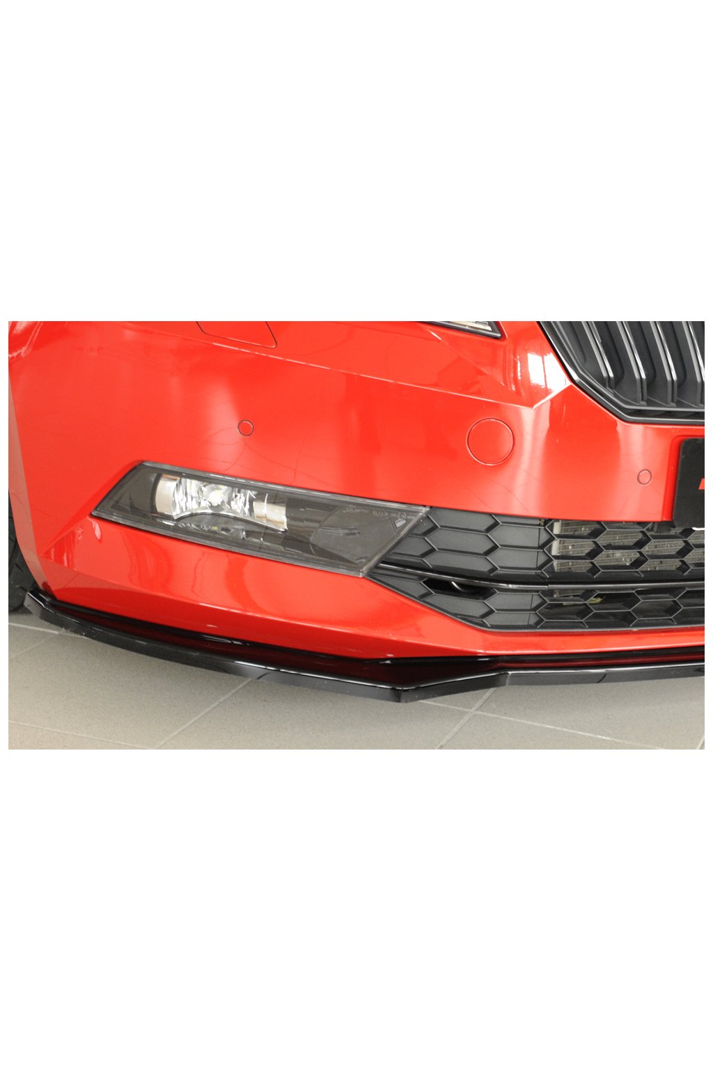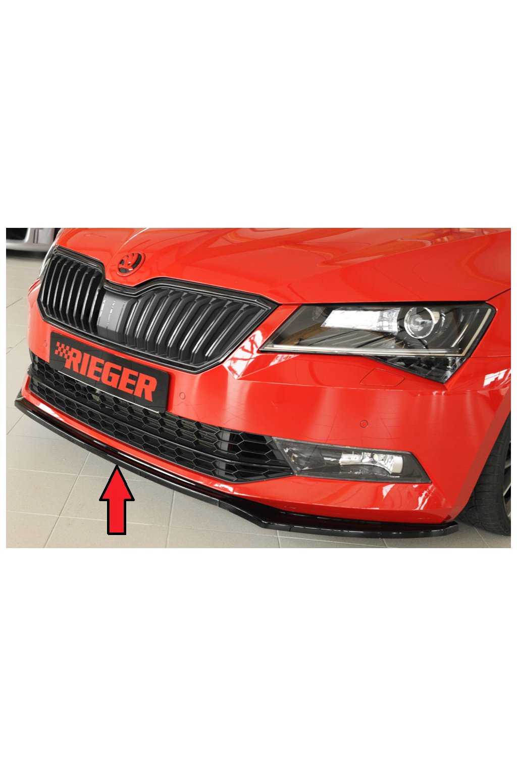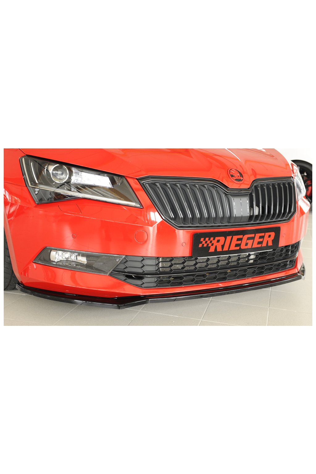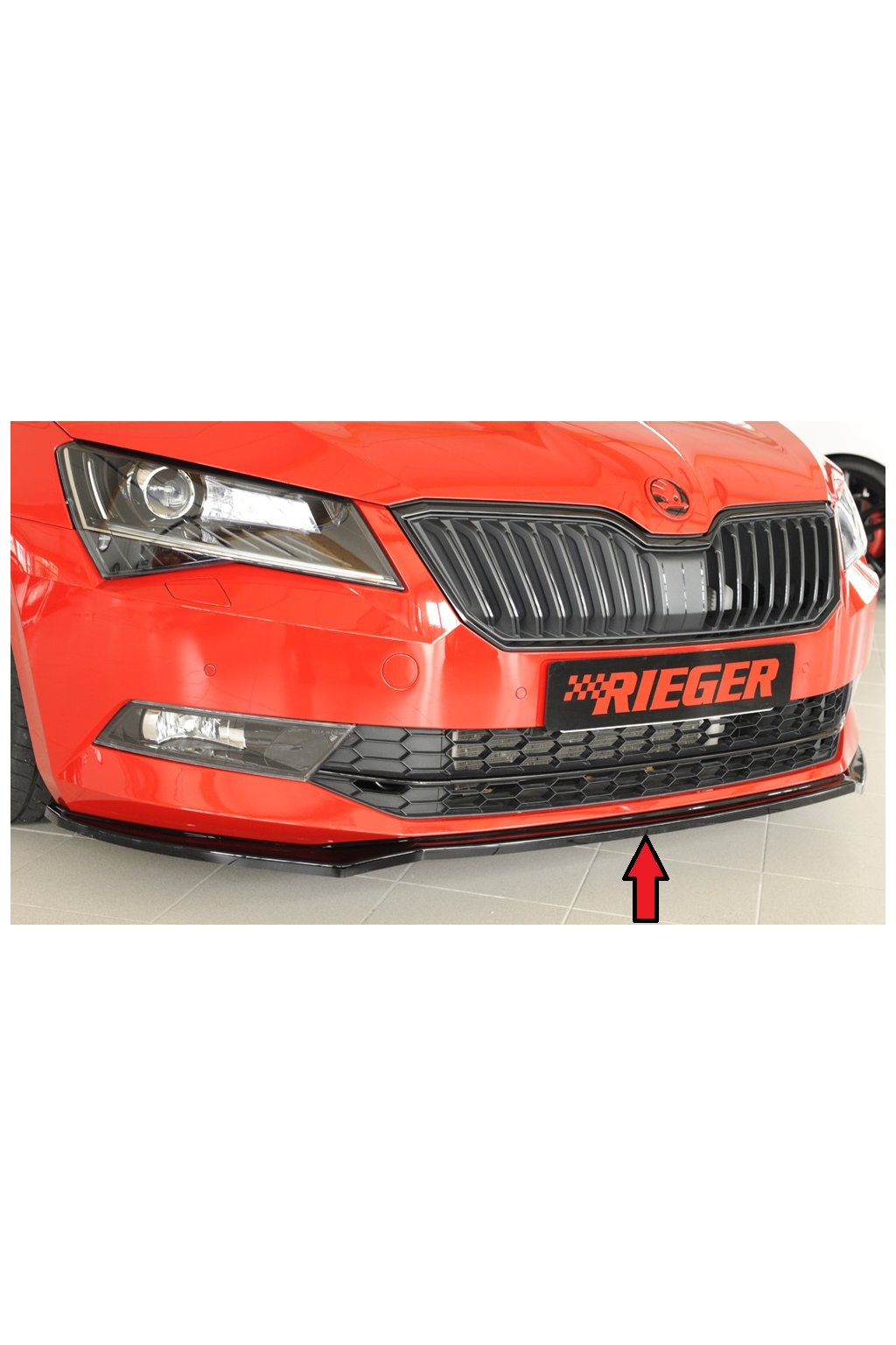 Rieger Tuning lipa pod přední nárazník pro Škoda Superb III 3T, 3V combi, sedan vč. faceliftu, 03/15-10/18, 11/18-, plast ABS lakovaný do černé lesklé barvy.