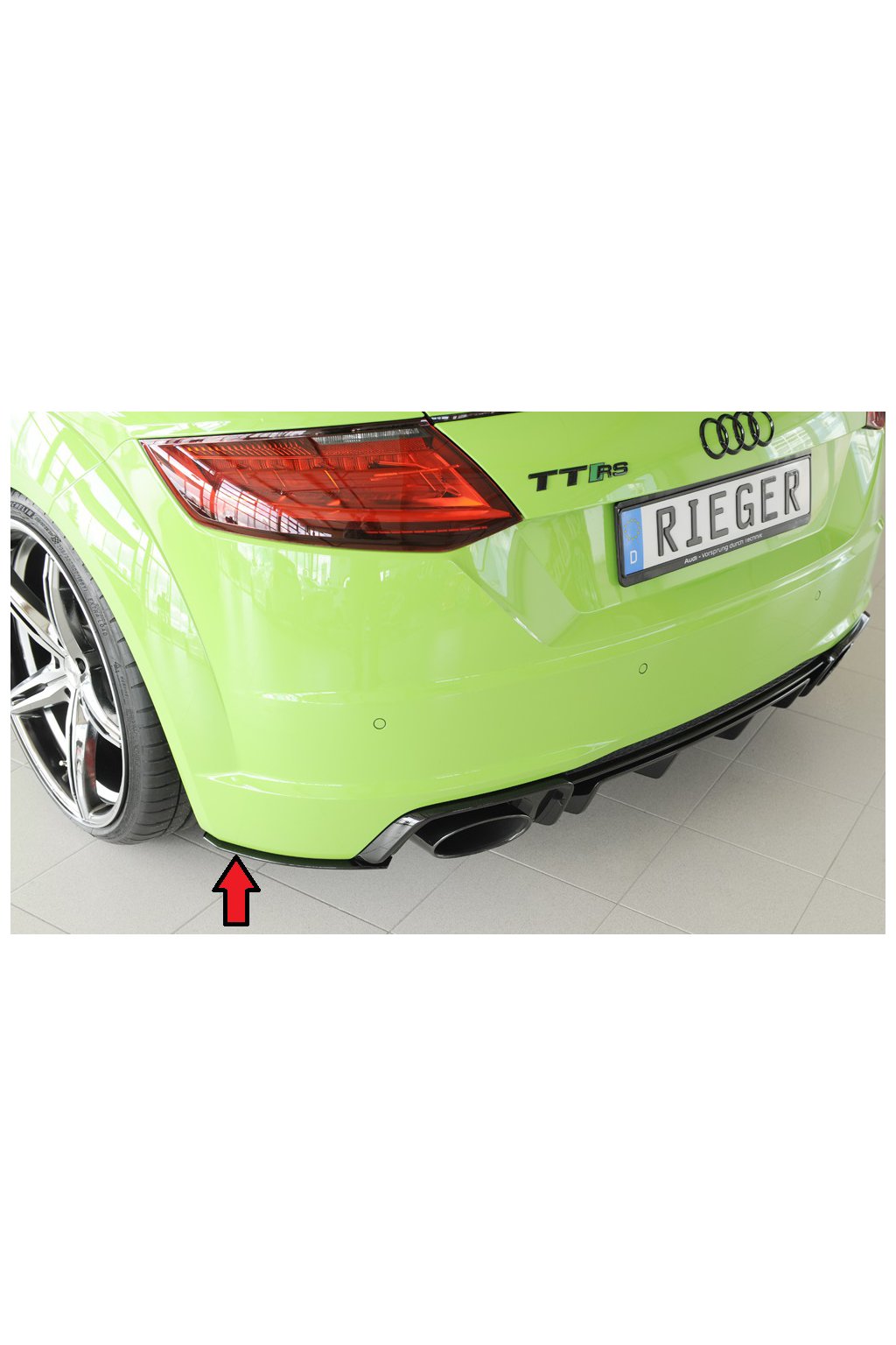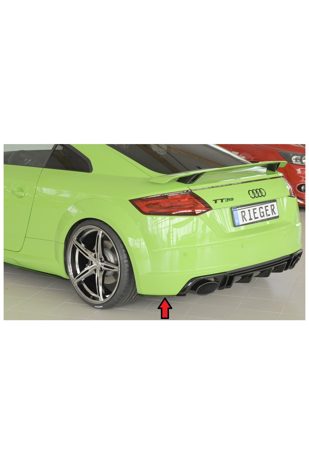 Rieger Tuning spoiler pod zadní nárazník na levé straně pro Audi TT RS 8J, 8J1-FV, 8S kupé, roadster před faceliftem, 05/16-08/18.