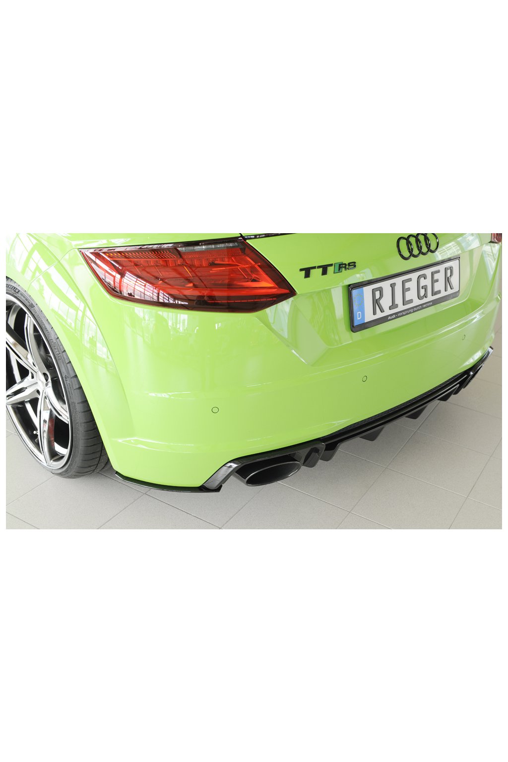 Rieger Tuning spoiler pod zadní nárazník na levé straně pro vozy Audi TT RS 8J, 8J1-FV, 8S kupé, roadster před faceliftem, 05/16-08/18.
