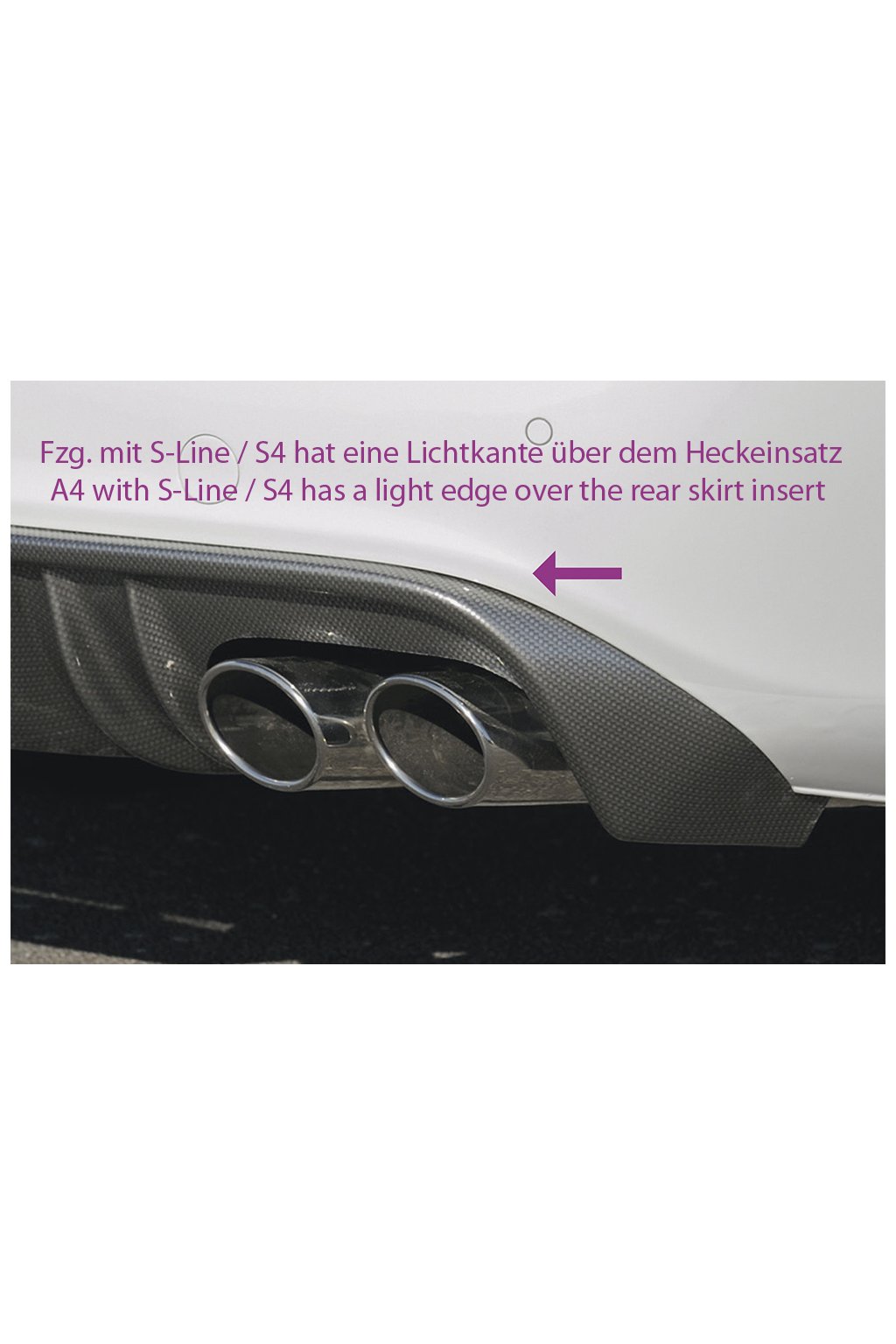 Rieger spoiler pod zadní nárazník pro Audi A4 B8, B81 avant, sedan před faceliftem r.v. 11/07-12/11, plast ABS bez povrchové úpravy, mimo S-Line, pro dvojité koncovky na obou stranách 4x115x85 mm