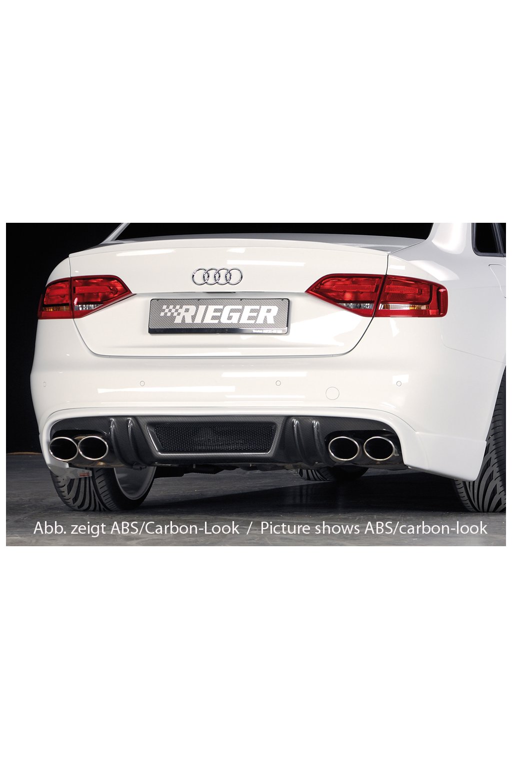 Rieger spoiler pod zadní nárazník pro Audi A4 S4 B8, B81 avant, sedan před faceliftem r.v. 11/08-12/11, plast ABS bez povrchové úpravy, S-Line, pro dvojité koncovky na obou stranách 4x115x85 mm
