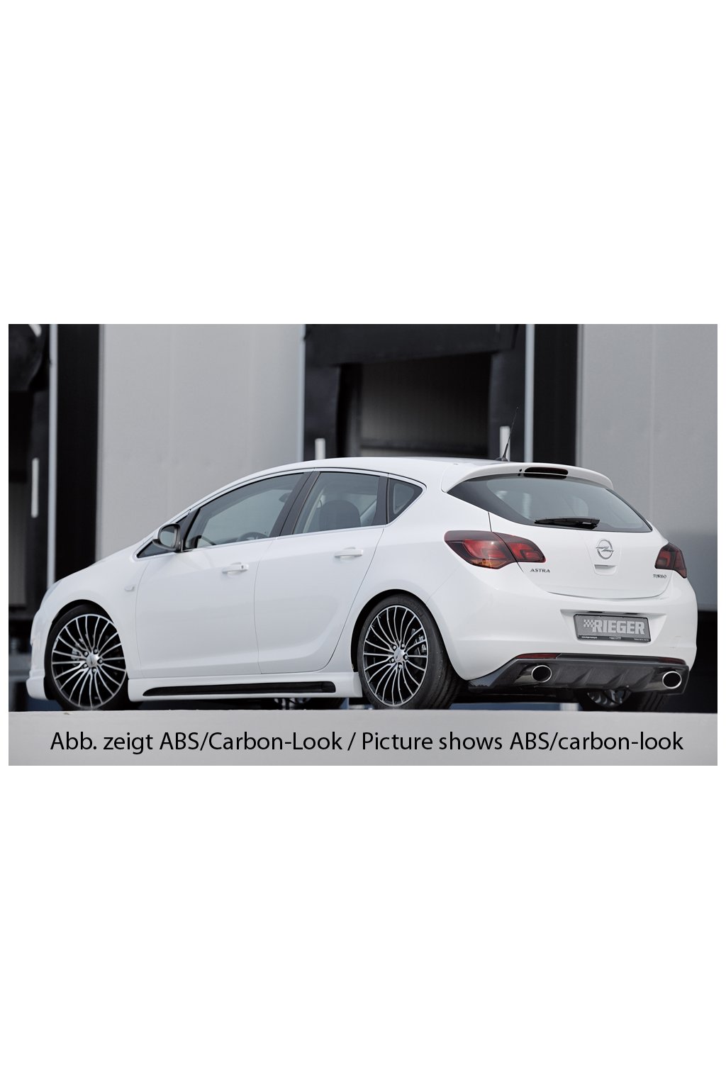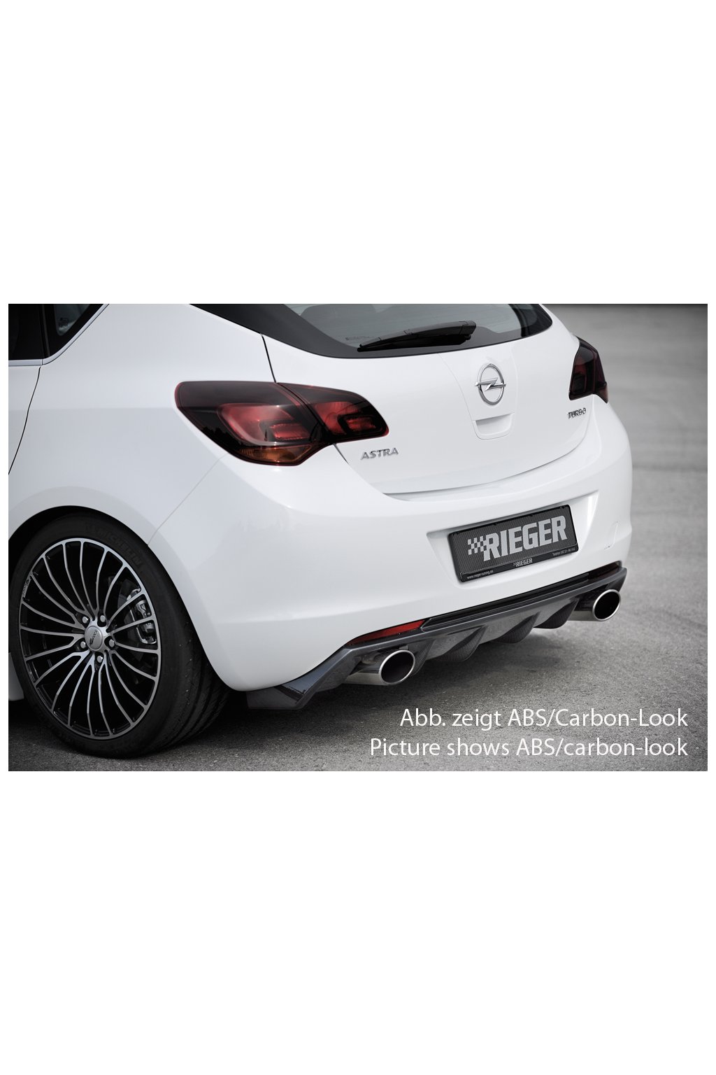 Rieger Tuning vložka zadního nárazníku (GBL-51316) pro vozy Opel Astra J 5-dvéř., hatchback před faceliftem, 11/08-09/12. Provedení v černém lesklém laku bez nutnosti dalšího lakování.