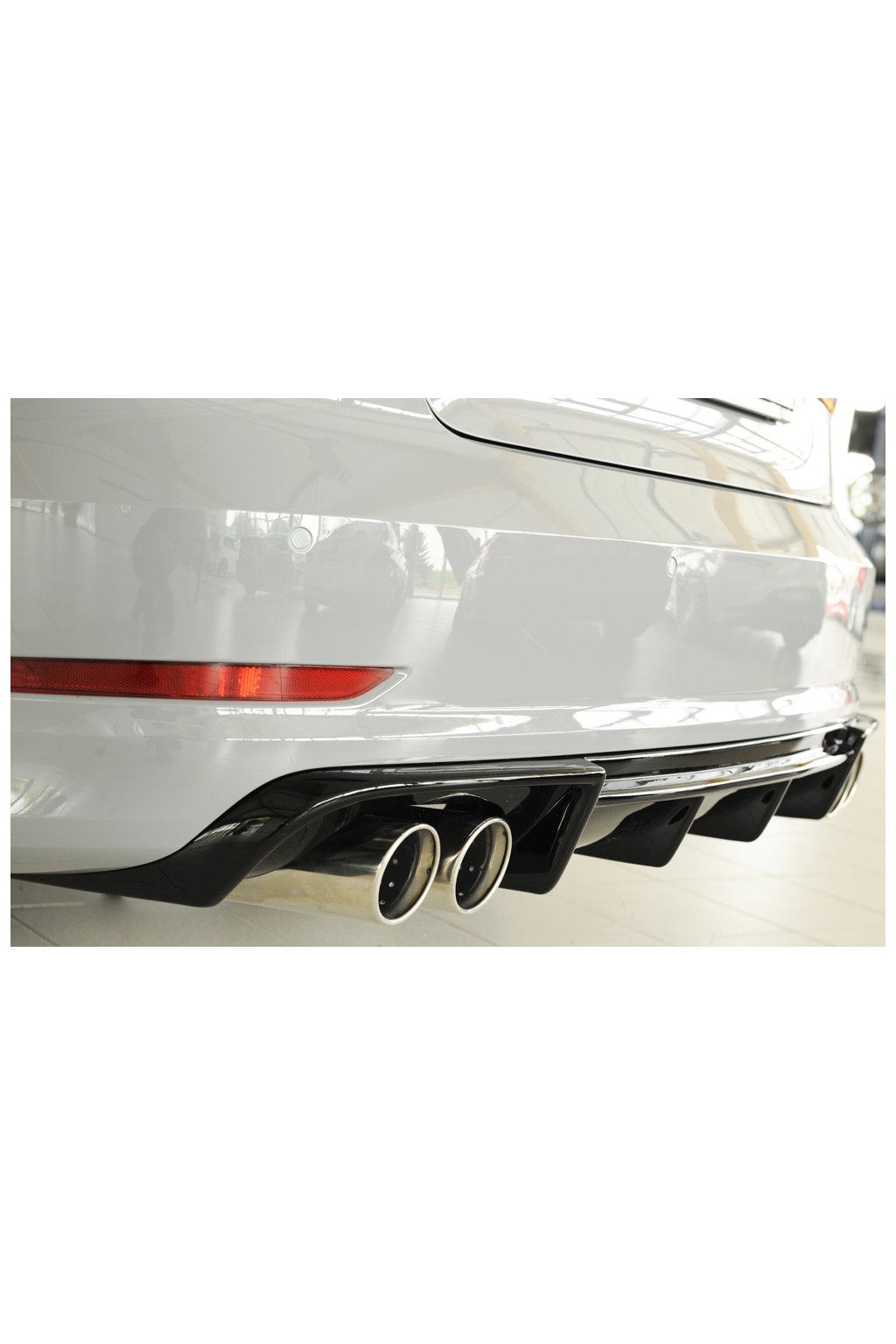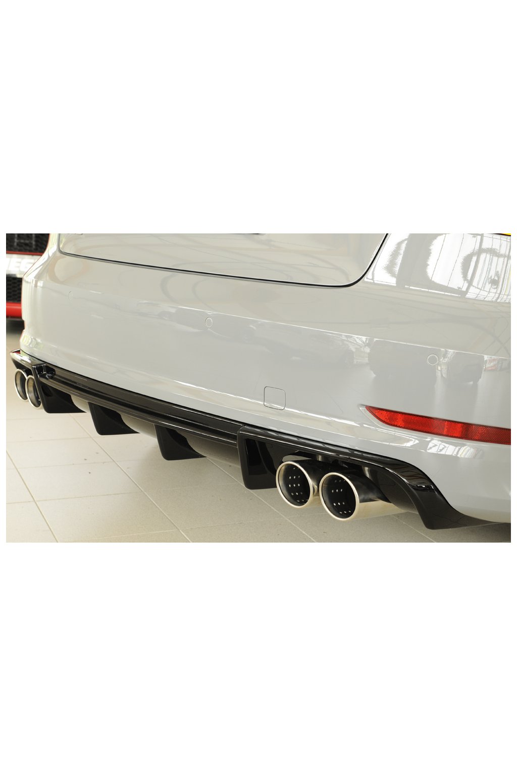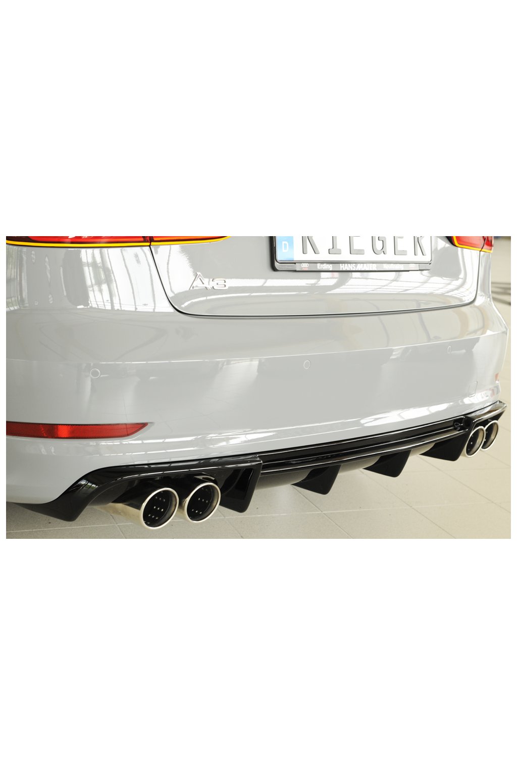 Rieger vložka zadního nárazníku pro Audi A3 8V 3-dvéř. (convertible 8V7), 5-dvéř. (sedan 8VS) před faceliftem, plast ABS lakovaný do černé lesklé barvy, pro dvojité koncovky na obou stranách 4x90 mm