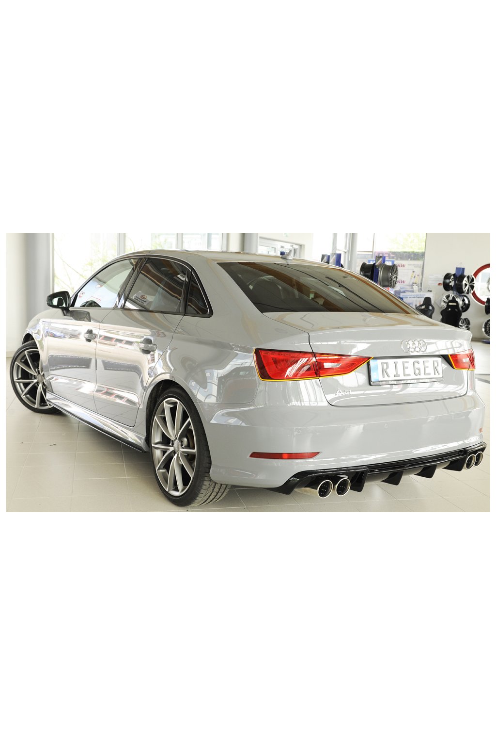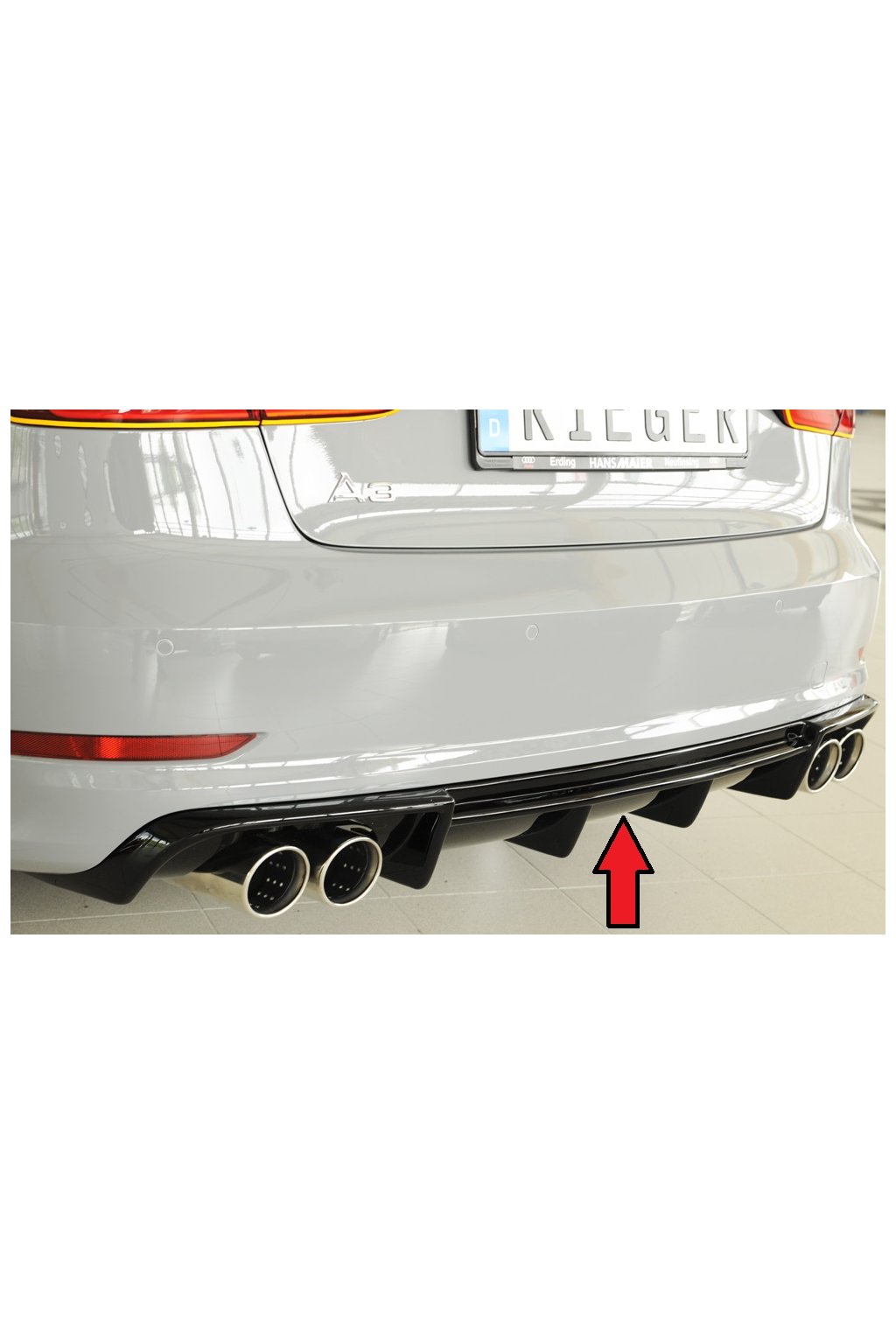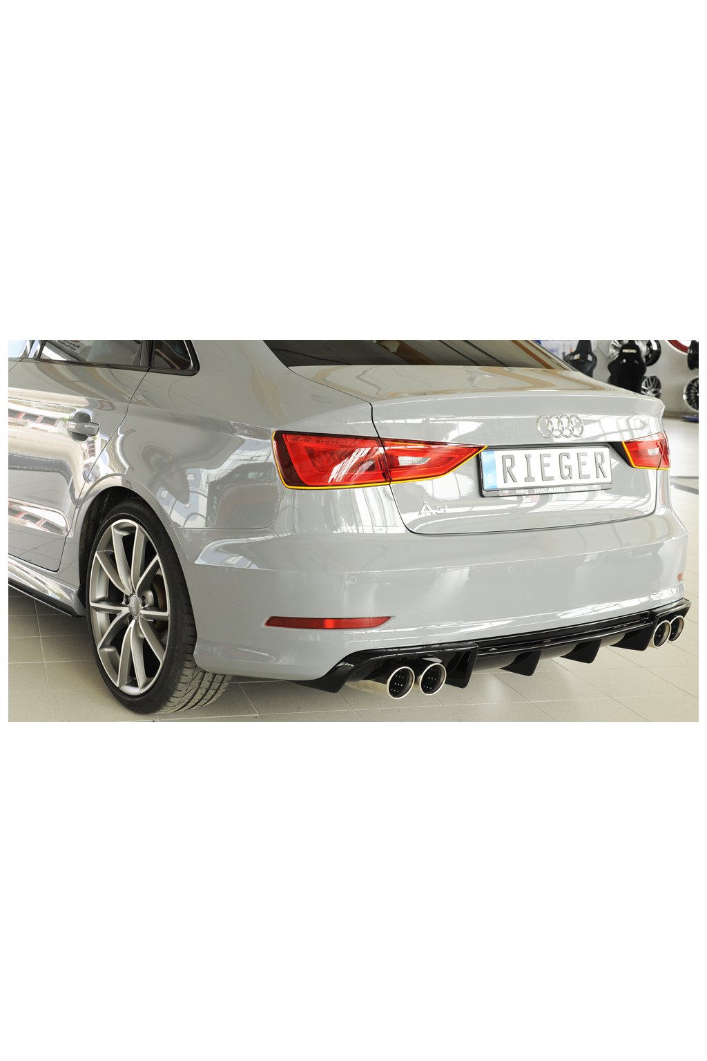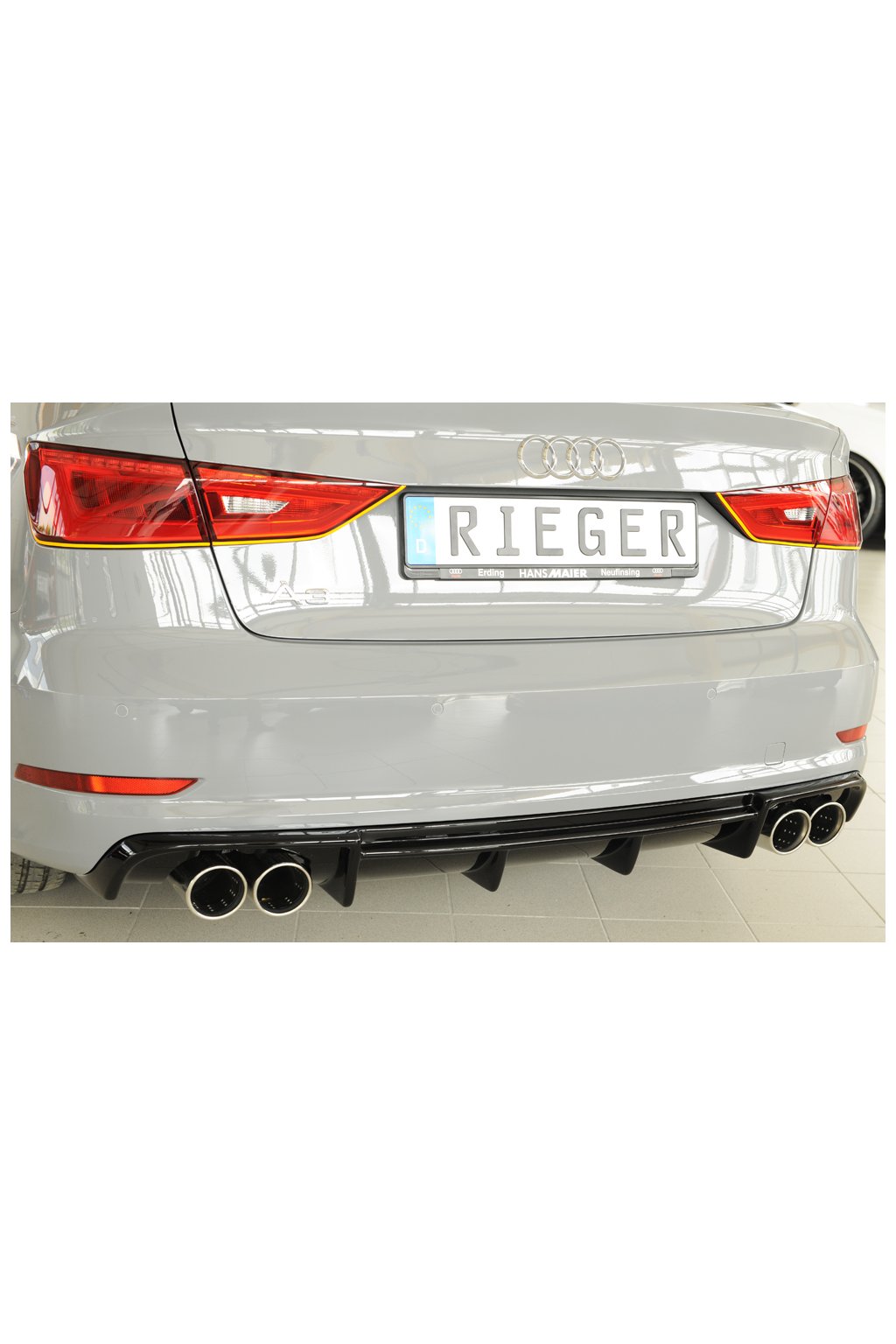 Rieger Tuning vložka zadního nárazníku pro vozy Audi A3 8V 3-dvéř. (convertible 8V7), 5-dvéř. (sedan 8VS) před faceliftem, 07/12-08/16. Provedení v černém lesklém laku bez nutnosti dalšího lakování.