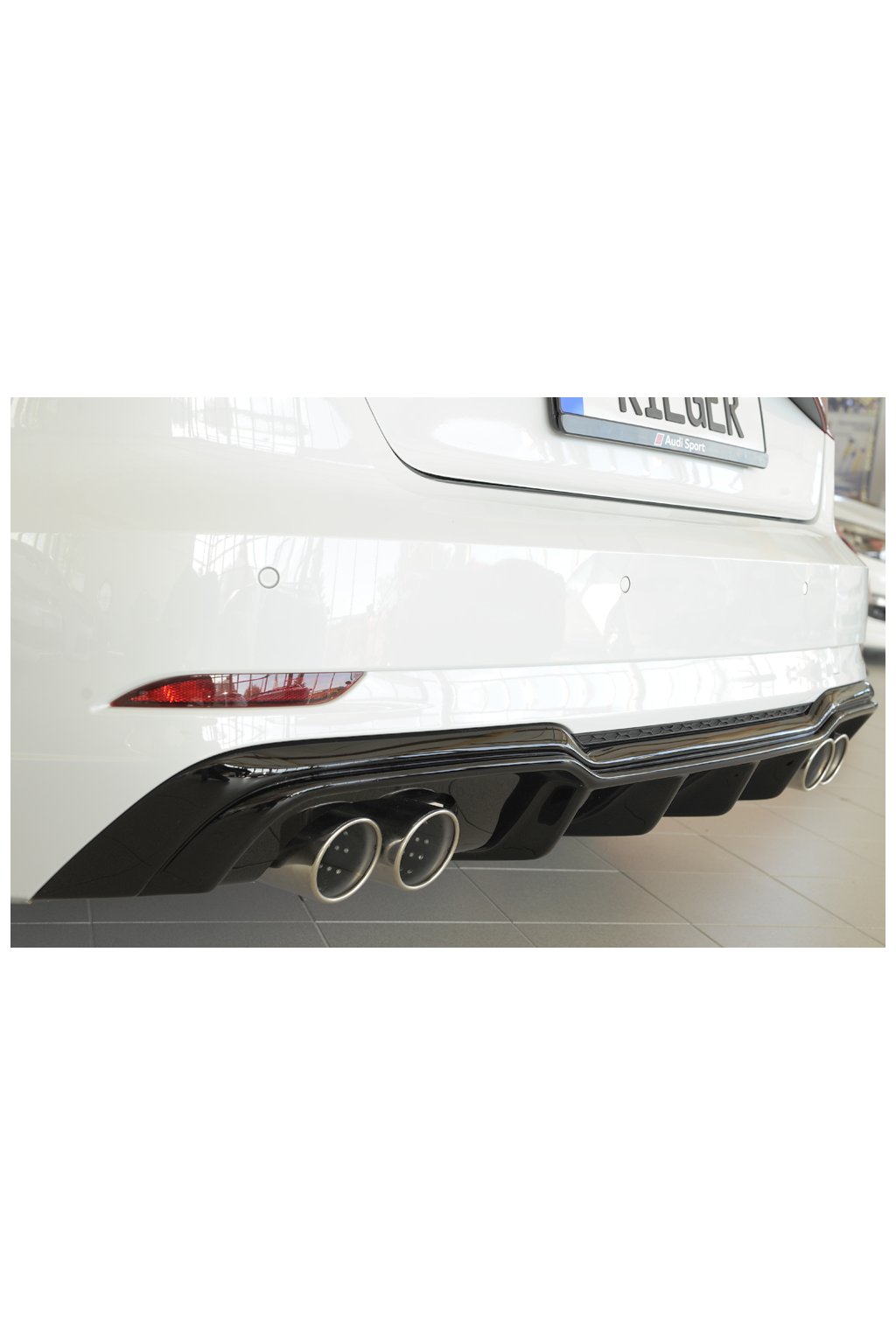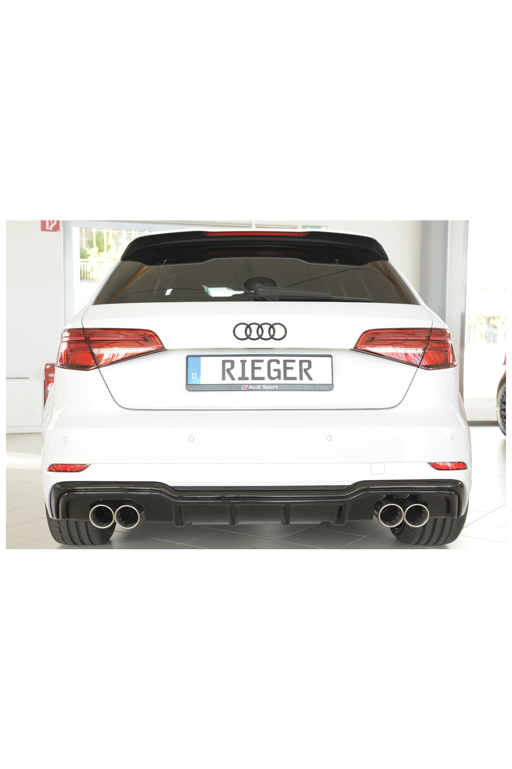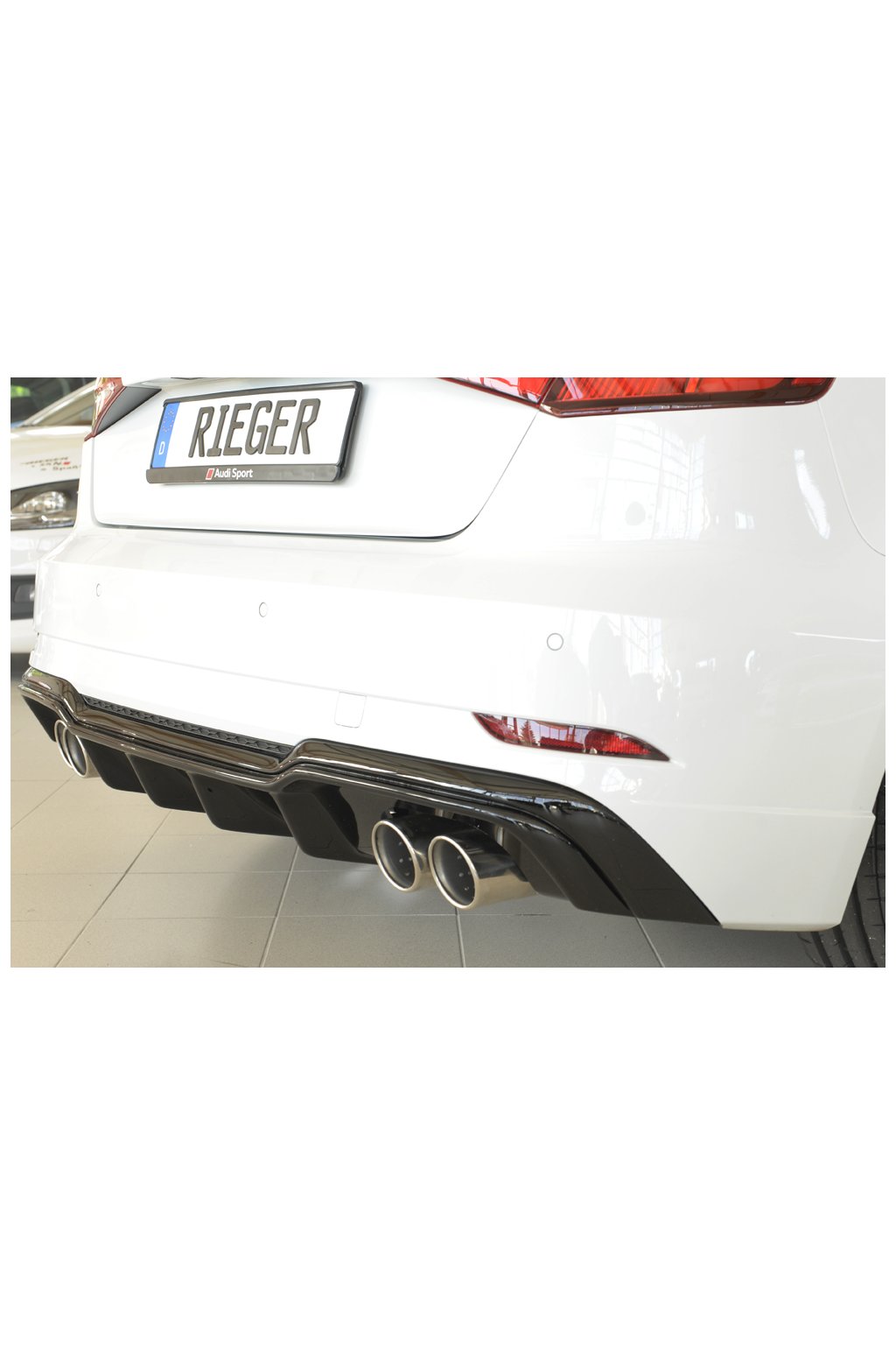 Rieger vložka zadního nárazníku pro Audi A3 8V 3-dvéř. (hatchback 8V1), 5-dvéř. (sportback 8VA) po faceliftu, plast ABS lakovaný do černé lesklé barvy, pro dvojité koncovky na obou stranách 4x90 mm