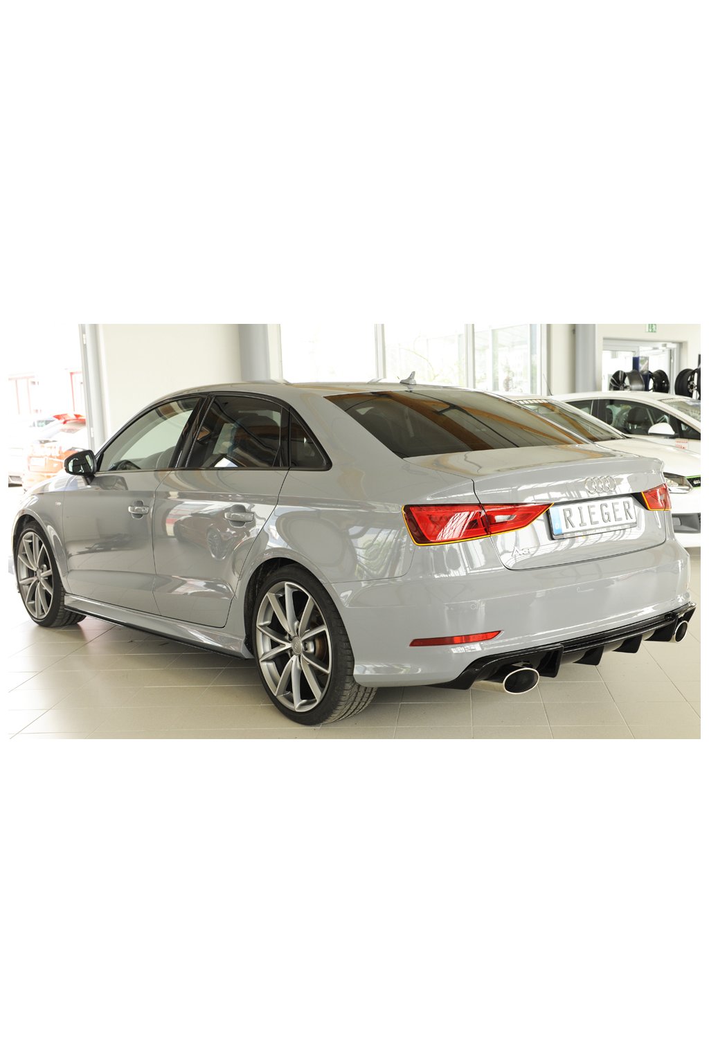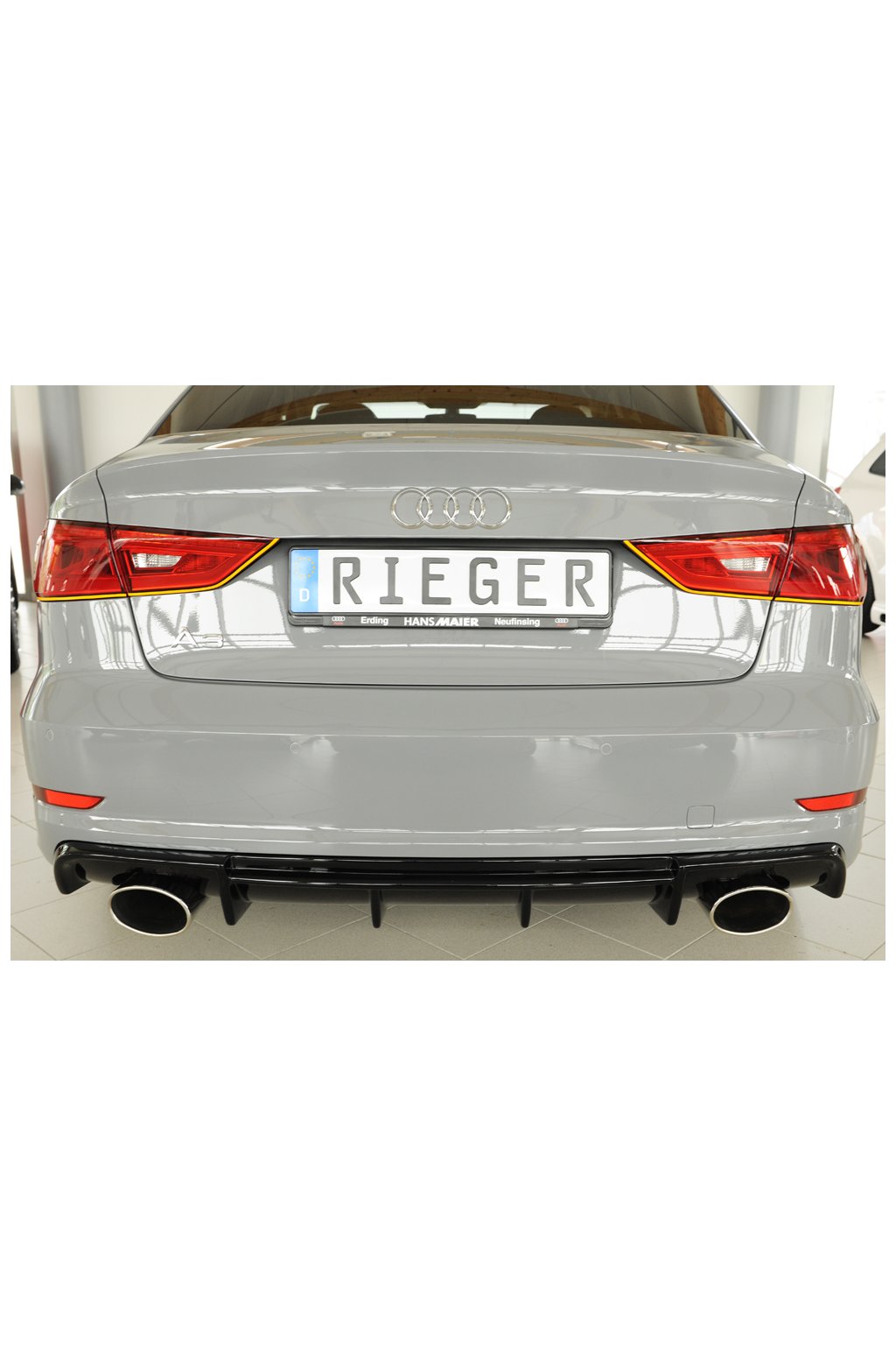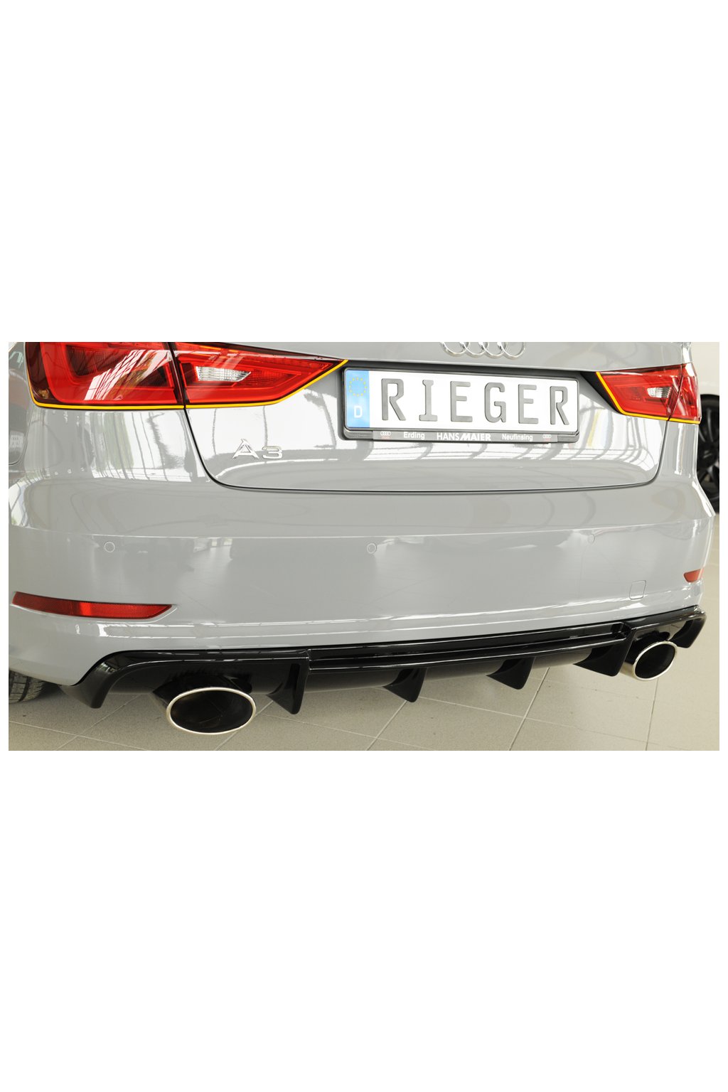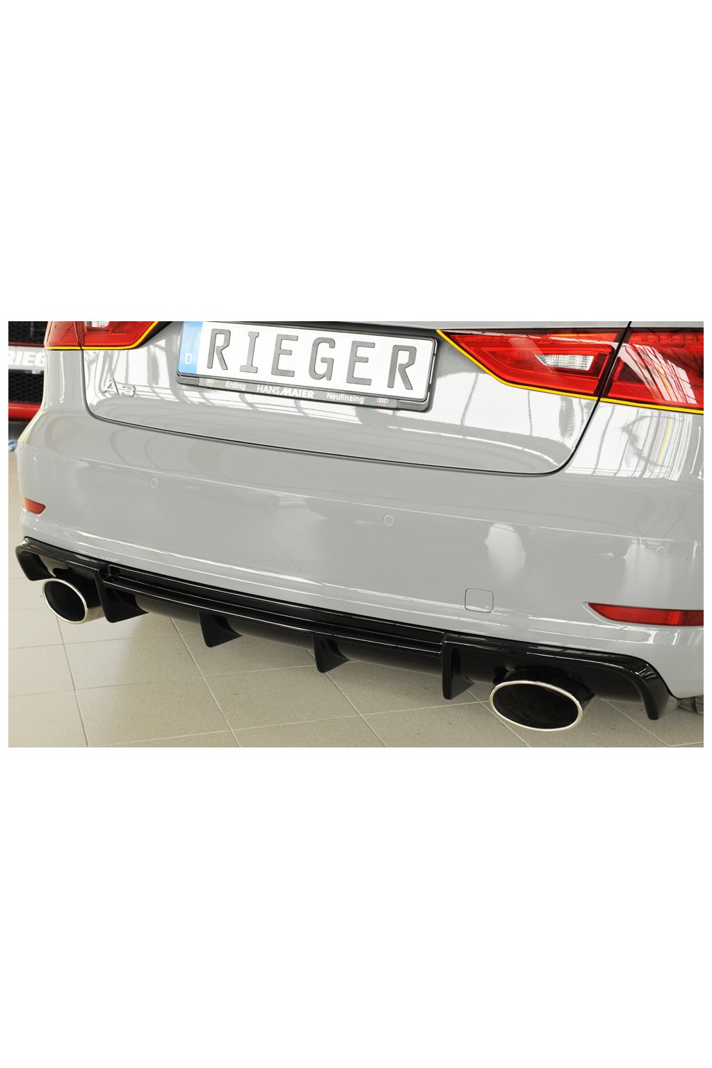 Rieger Tuning vložka zadního nárazníku pro vozy Audi A3 S3 8V 3-dvéř. (convertible 8V7), 5-dvéř. (sedan 8VS) před faceliftem, 05/13-08/16. Provedení v černém lesklém laku bez nutnosti dalšího lakování.