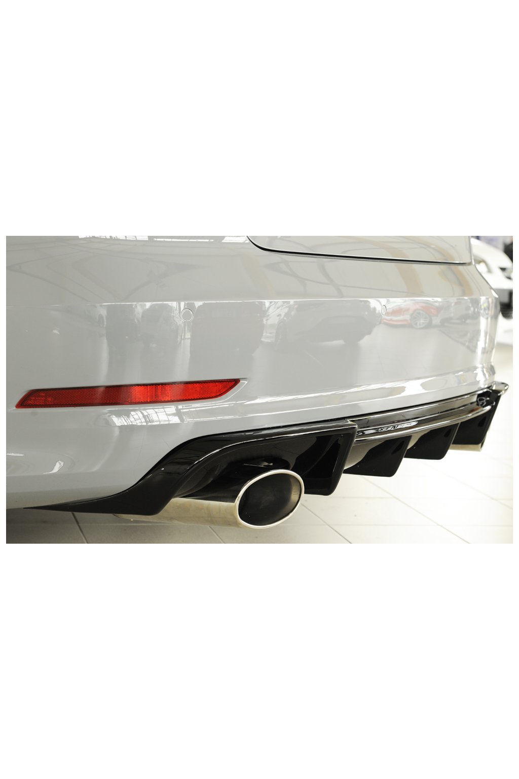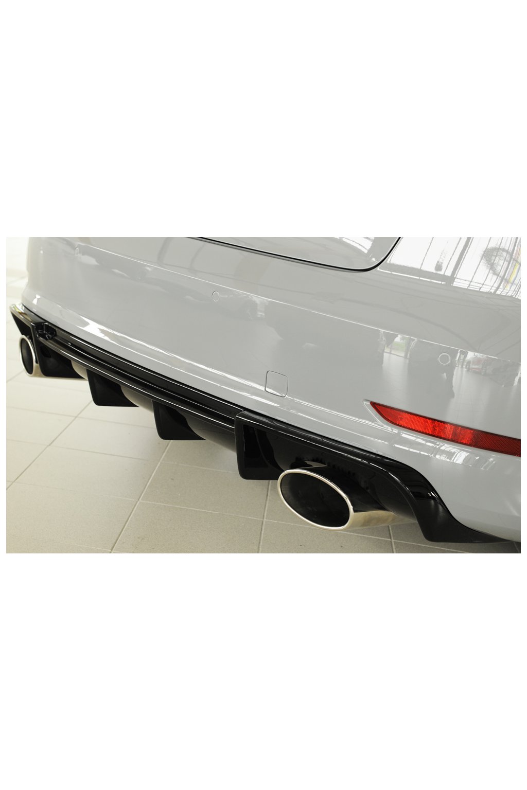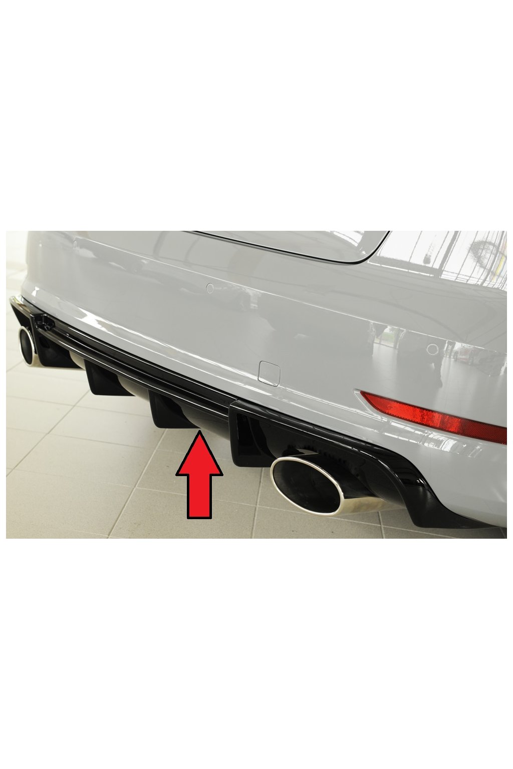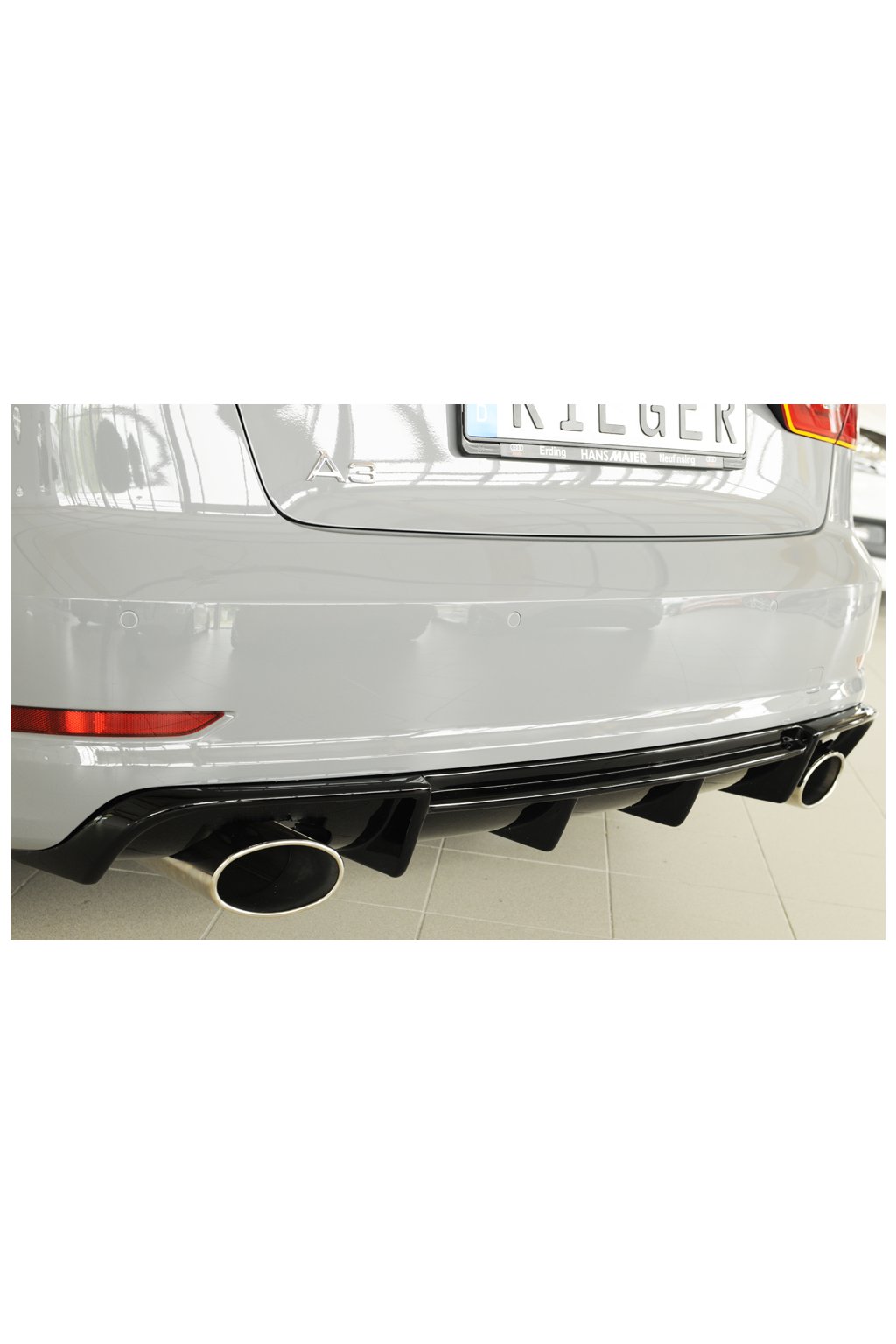 Rieger Tuning vložka zadního nárazníku pro vozy Audi A3 S3 8V 3-dvéř. (convertible 8V7), 5-dvéř. (sedan 8VS) před faceliftem, 05/13-08/16. Provedení v černém lesklém laku bez nutnosti dalšího lakování.
