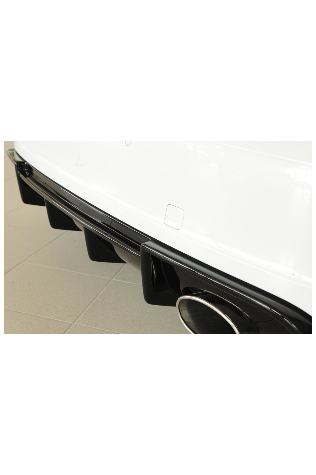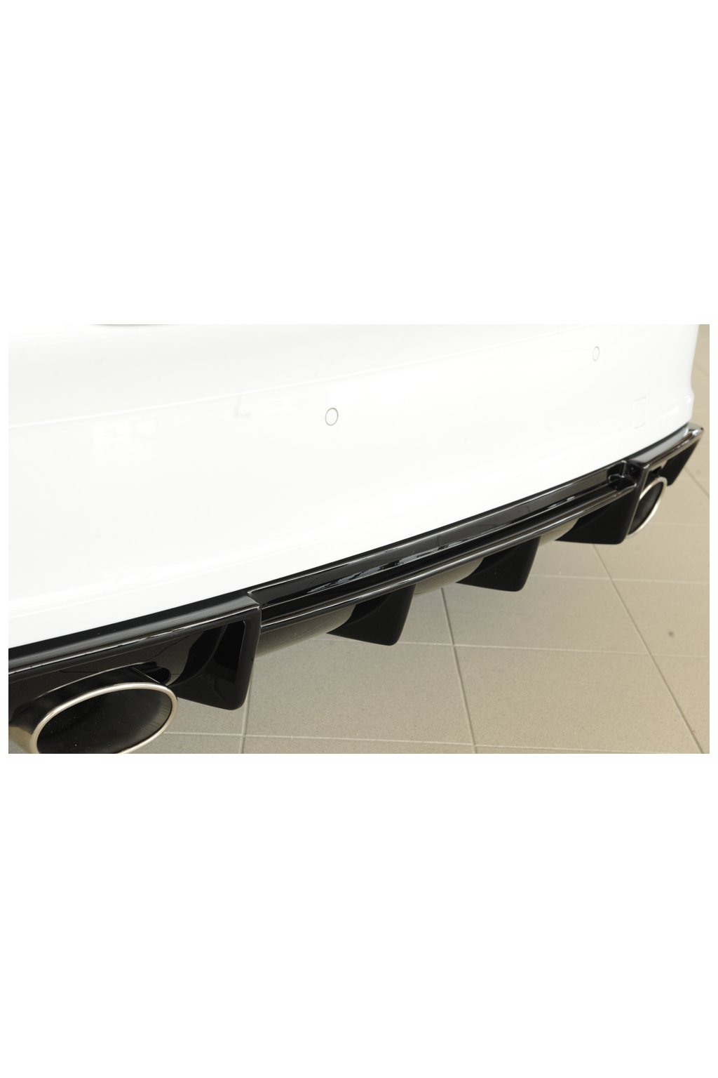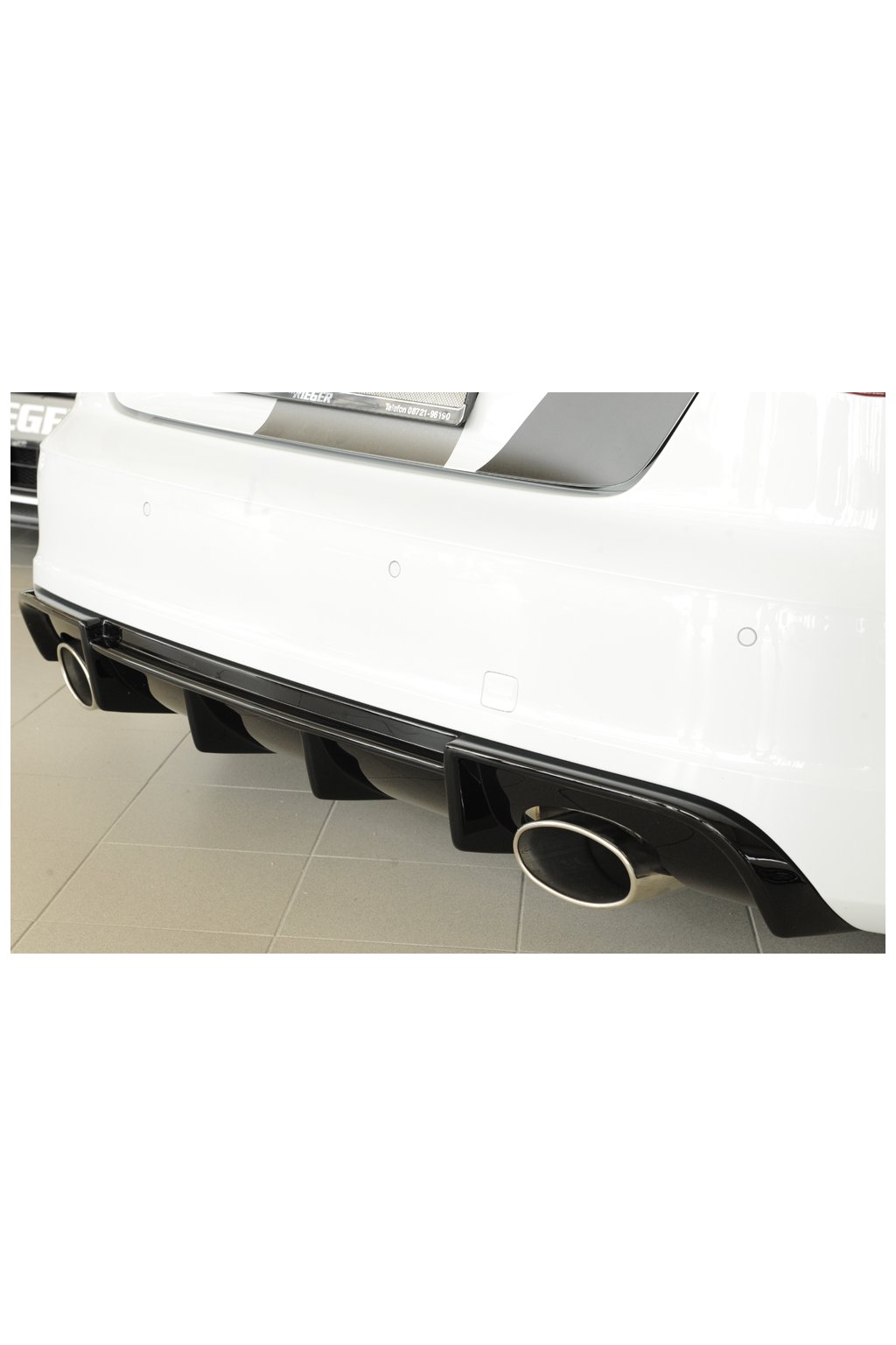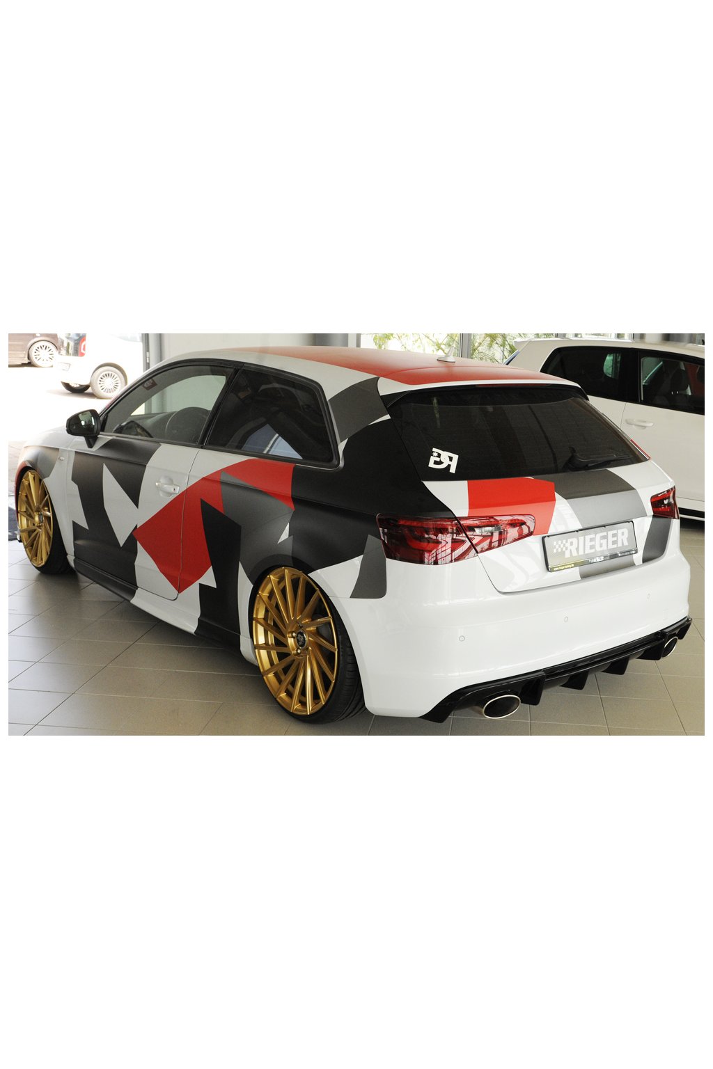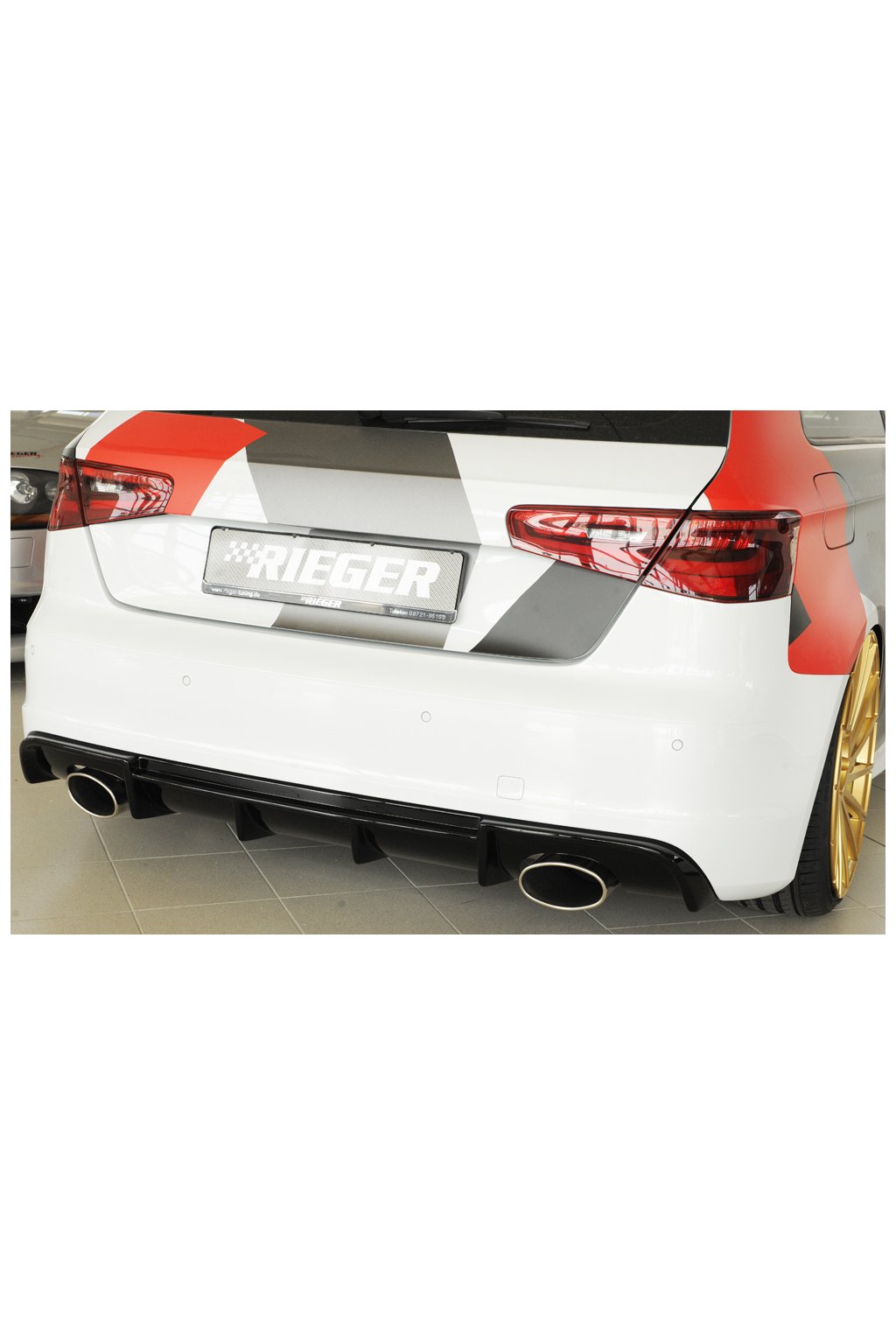 Rieger Tuning vložka zadního nárazníku pro vozy Audi A3 S3 8V 3-dvéř. (hatchback 8V1), 5-dvéř. (sportback 8VA) před faceliftem, 05/13-08/16. Provedení v černém lesklém laku bez nutnosti dalšího lakování.