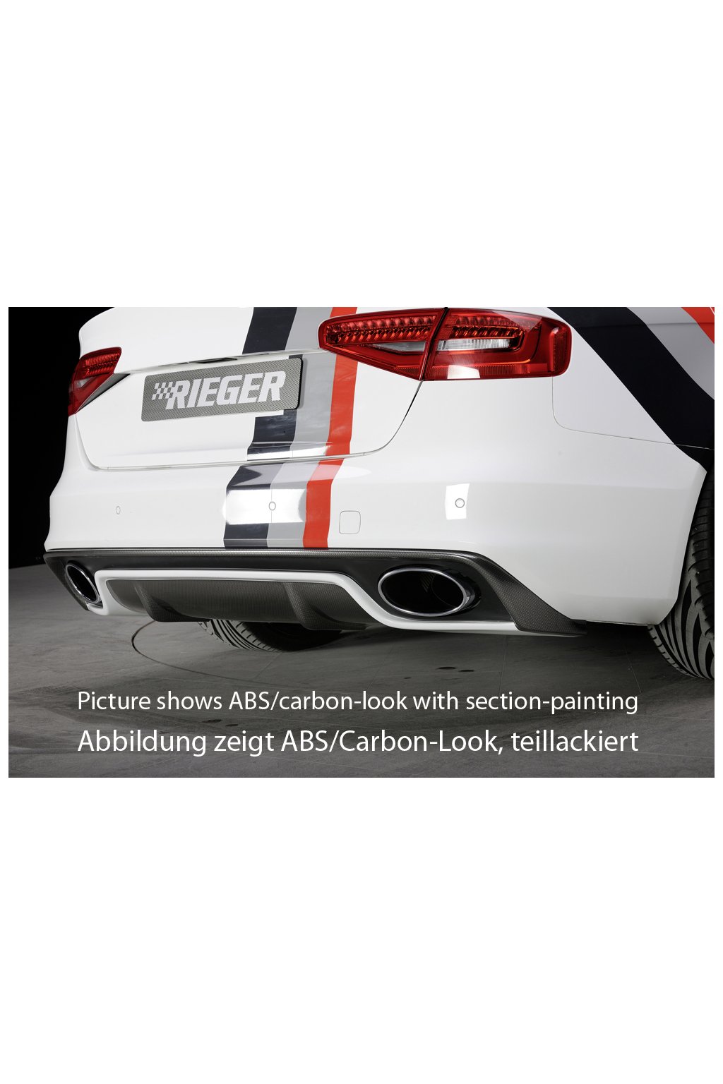 Rieger Tuning vložka zadního nárazníku pro vozy Audi A4 S4 B8, B81 avant, sedan po faceliftu, 01/12-. Provedení v černém lesklém laku bez nutnosti dalšího lakování.