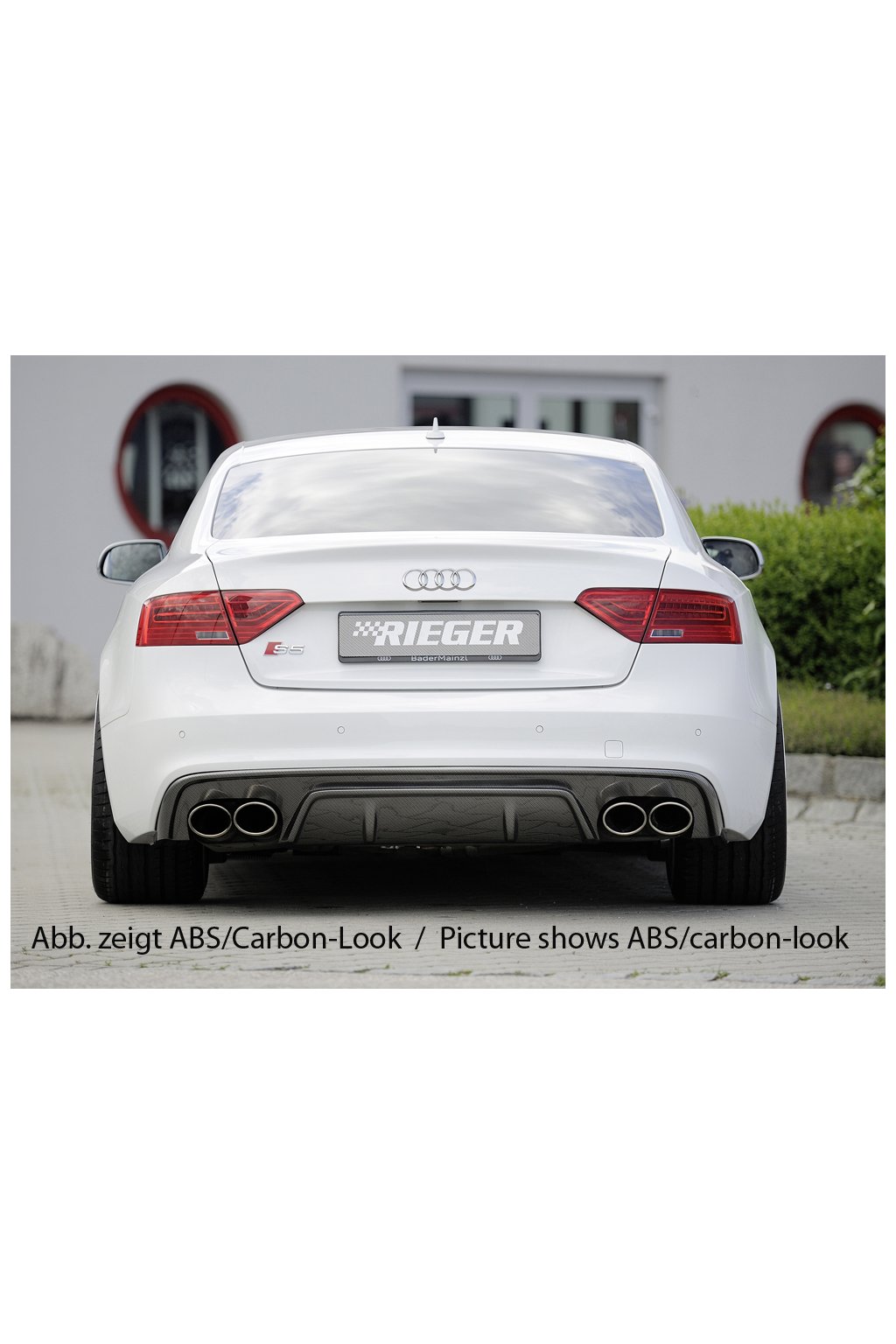 Rieger Tuning vložka zadního nárazníku pro vozy Audi A5 B8, B81 kabriolet, kupé po faceliftu, 10/11-06/16. Provedení v černém lesklém laku bez nutnosti dalšího lakování.