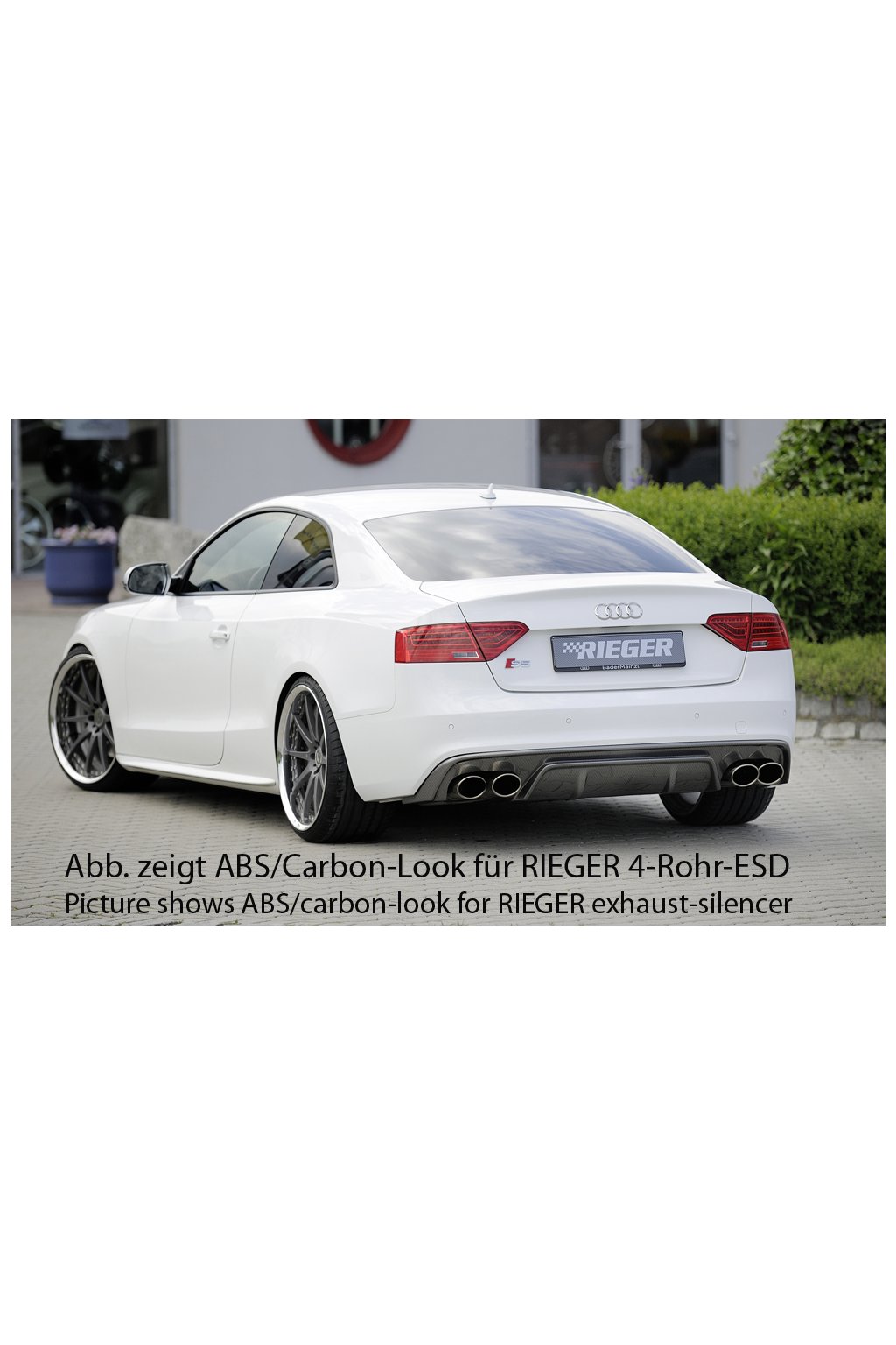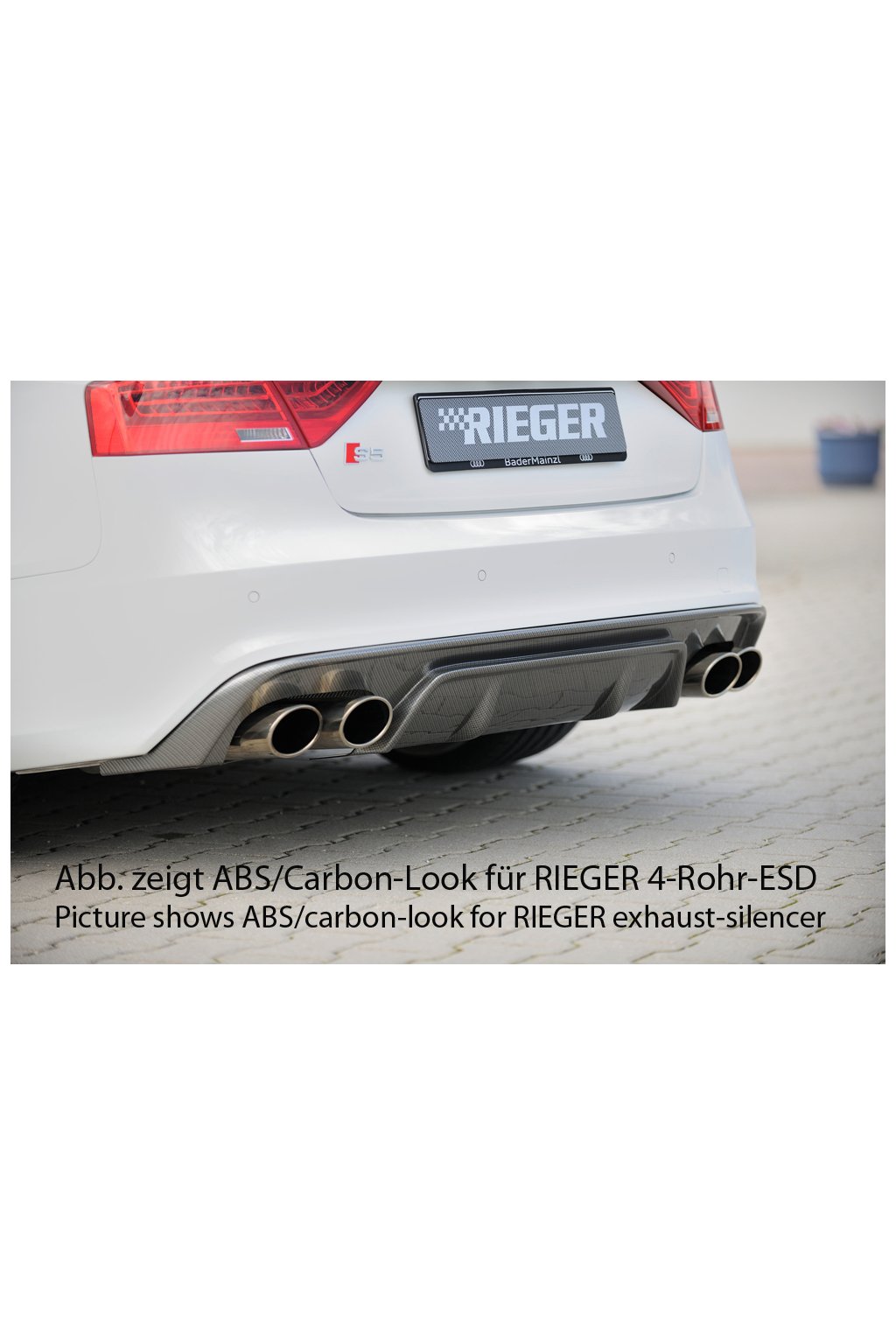 Rieger Tuning vložka zadního nárazníku pro vozy Audi A5 B8, B81 kabriolet, kupé po faceliftu, 10/11-06/16. Provedení v černém lesklém laku bez nutnosti dalšího lakování.