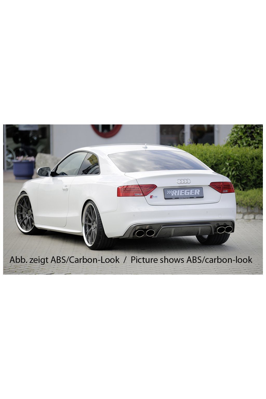 Rieger Tuning vložka zadního nárazníku pro vozy Audi A5 S5 B8, B81 kabriolet, kupé po faceliftu, 10/11-06/16. Provedení v černém lesklém laku bez nutnosti dalšího lakování.
