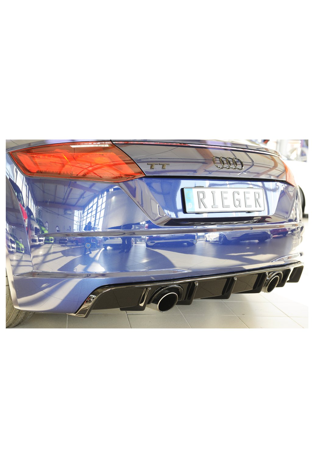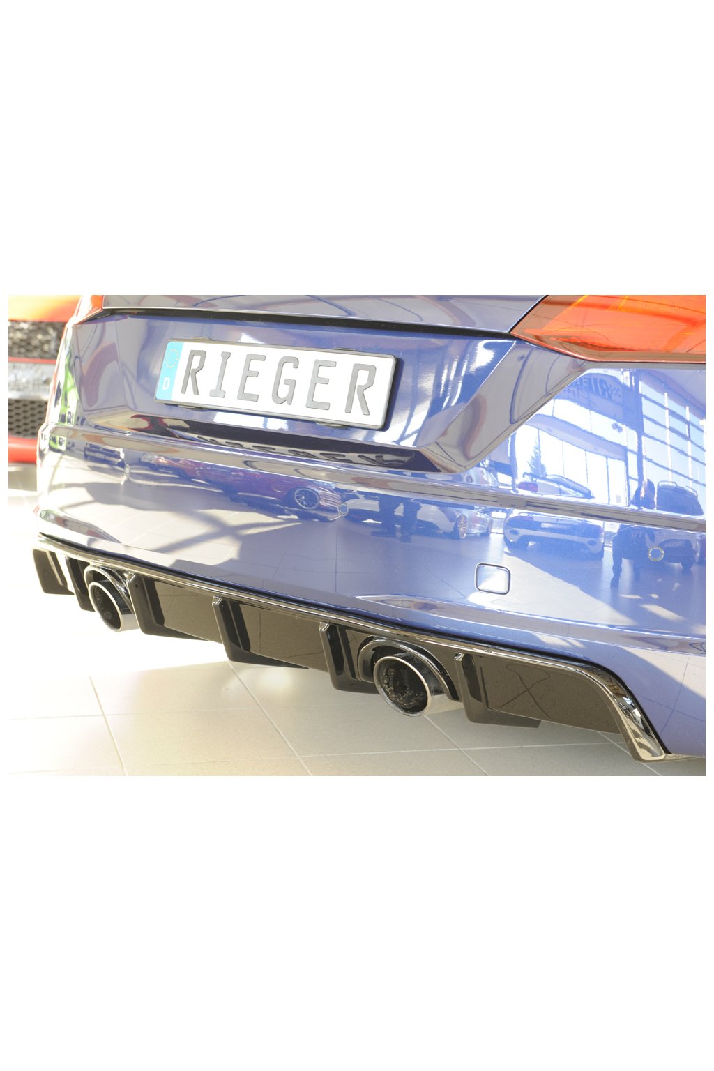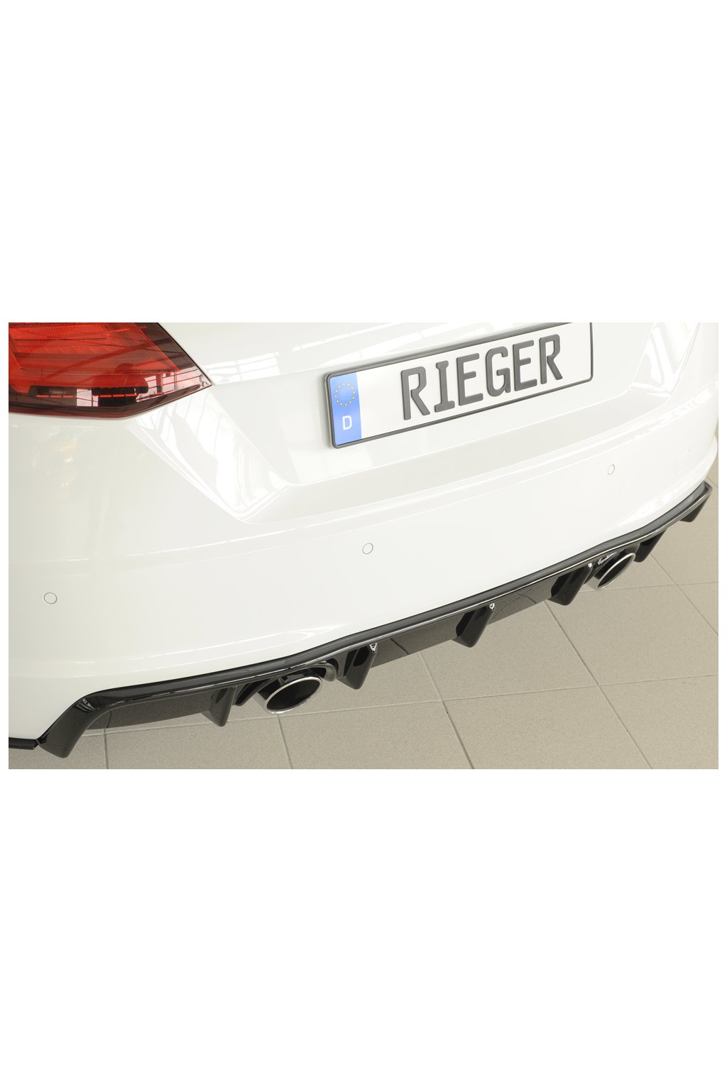 Rieger Tuning vložka zadního nárazníku pro vozy Audi TT 8J-FV, 8S kupé, roadster vč. faceliftu, 07/14-08/18, 09/18-. Provedení v černém lesklém laku bez nutnosti dalšího lakování.