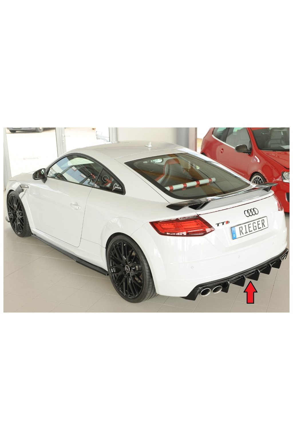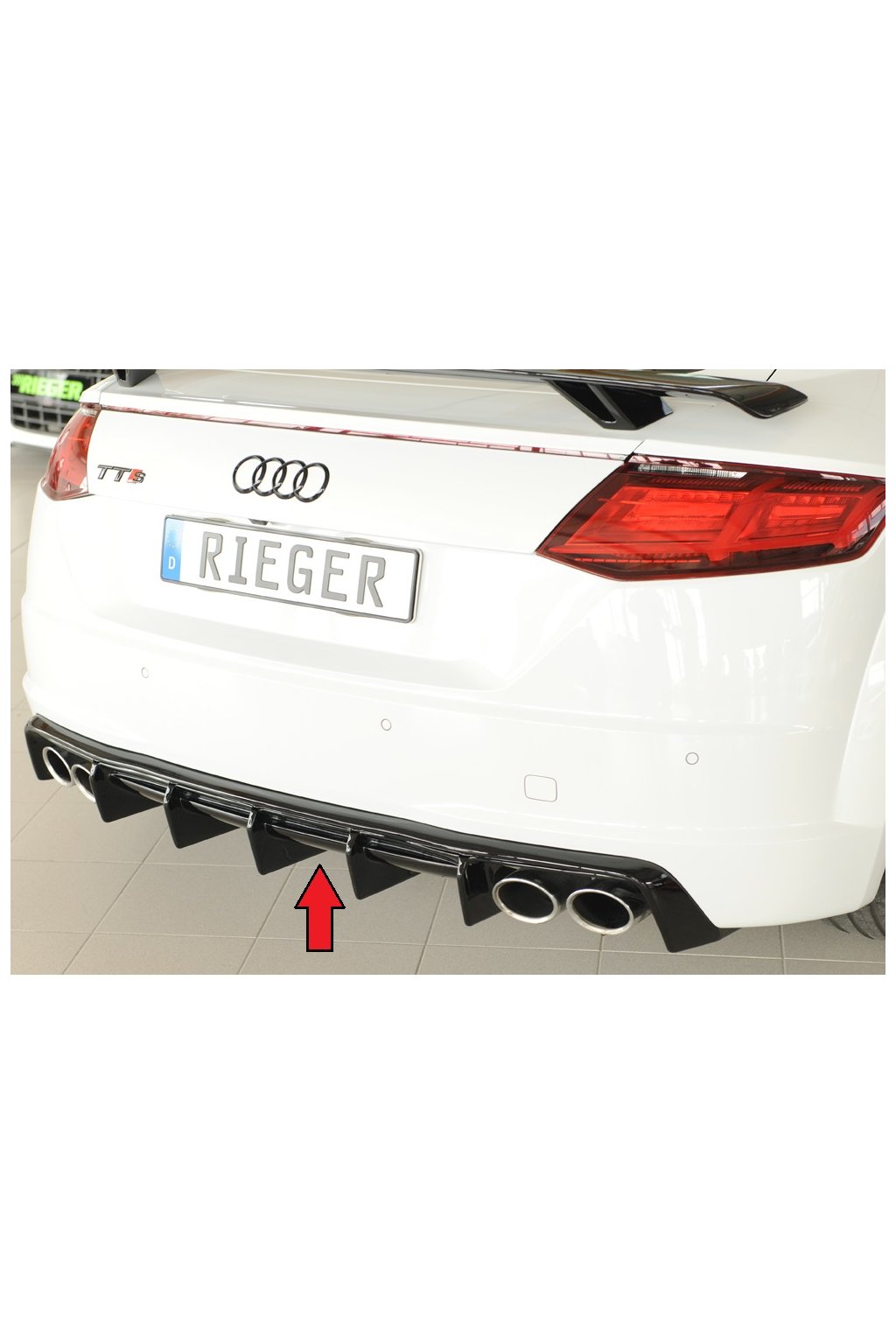 Rieger Tuning vložka zadního nárazníku pro vozy Audi TT 8J-FV, 8S roadster, 09/18-. Provedení v černém lesklém laku bez nutnosti dalšího lakování.