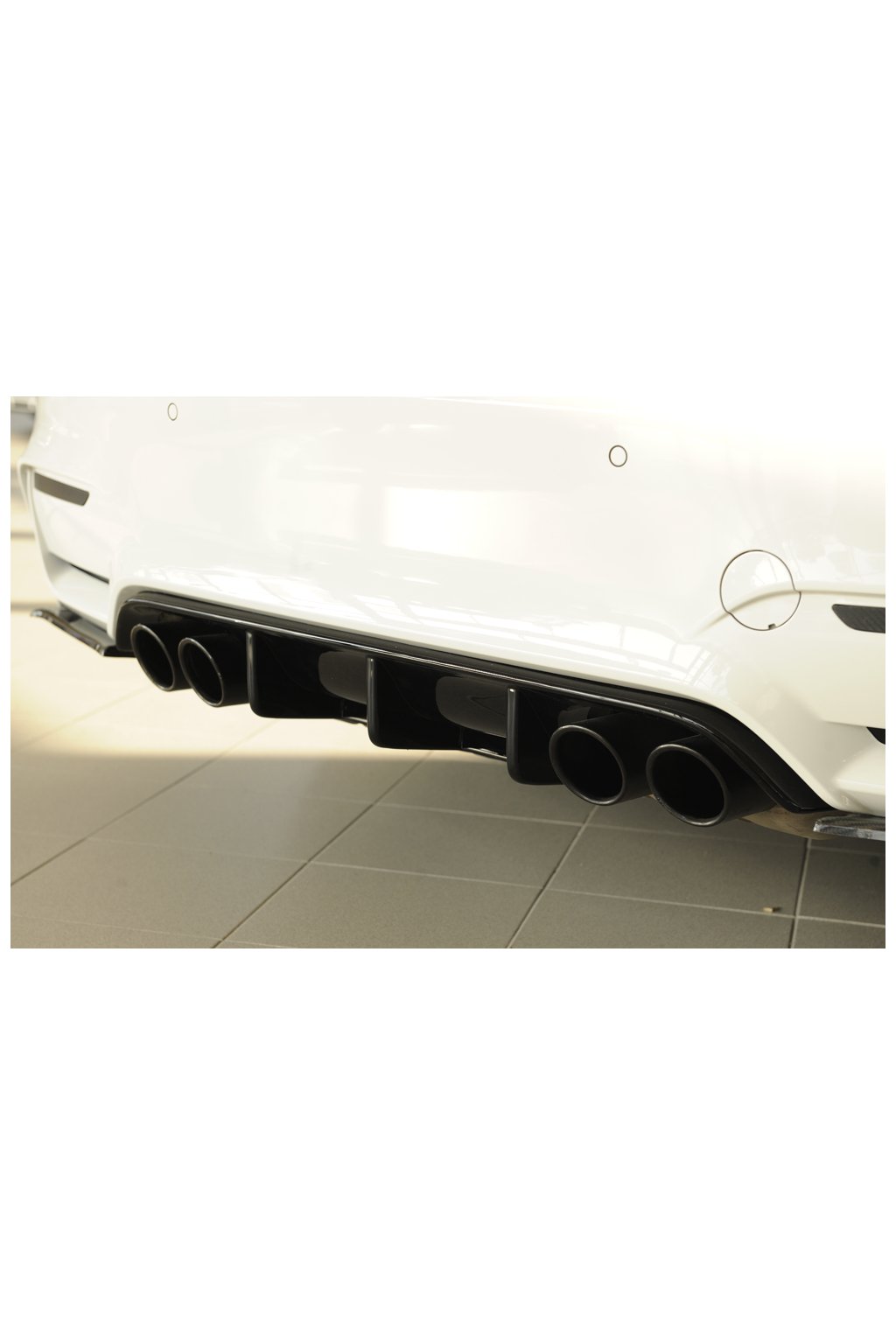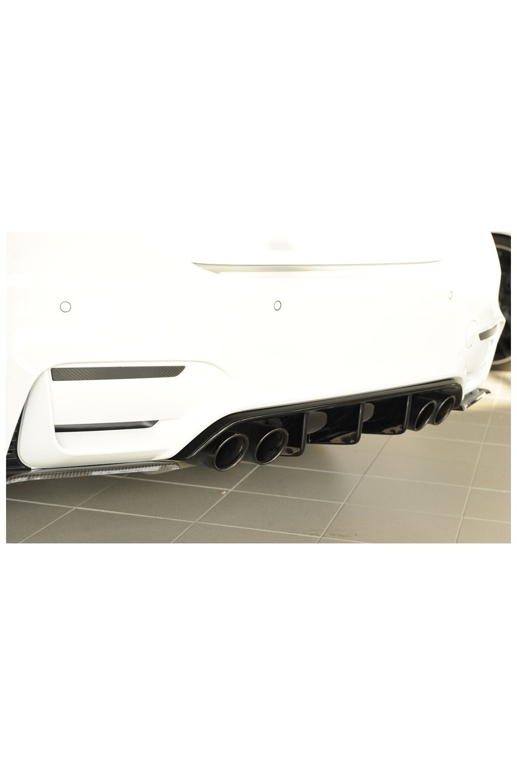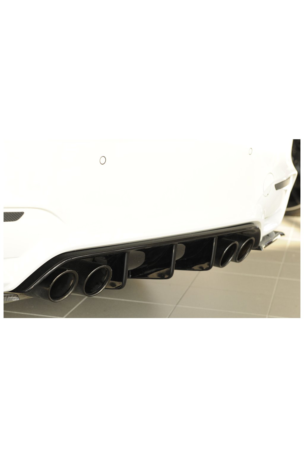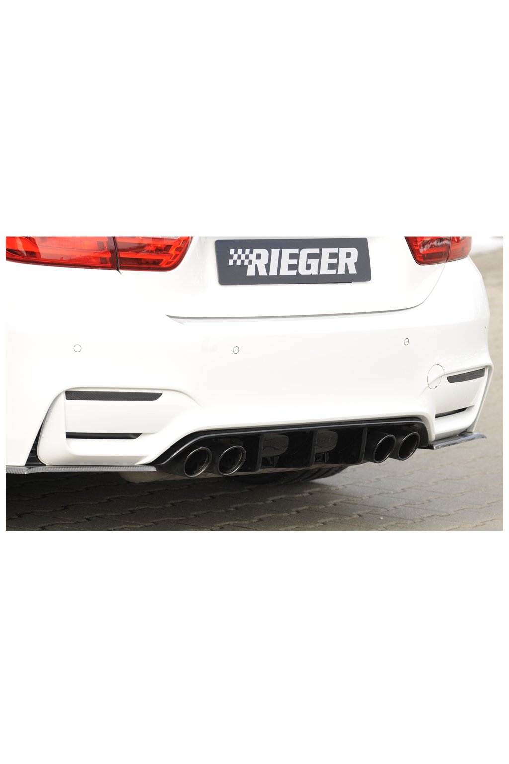 Rieger Tuning vložka zadního nárazníku pro vozy BMW řada 4 F82 M4, F83 M4 kabriolet, kupé, 01/14-, 07/14-. Provedení v černém lesklém laku bez nutnosti dalšího lakování.