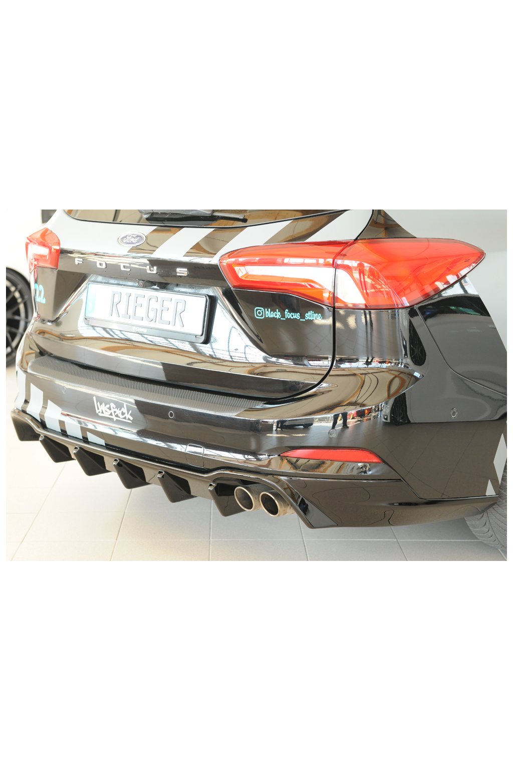 Rieger vložka zadního nárazníku pro Ford Focus 4 DEH 5-dvéř. (combi), plast ABS lakovaný do černé lesklé barvy, pro orig. koncovky 2x70 mm