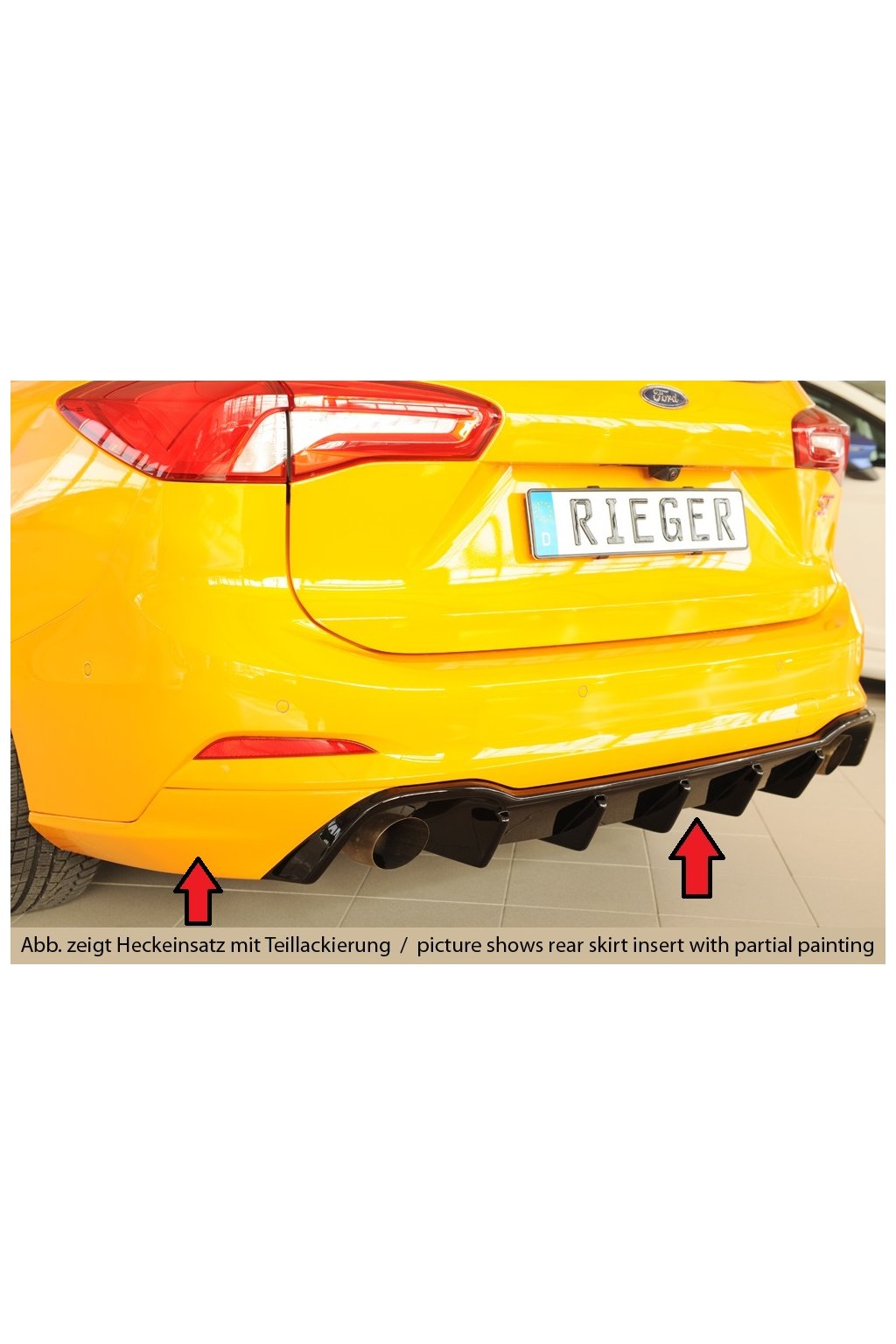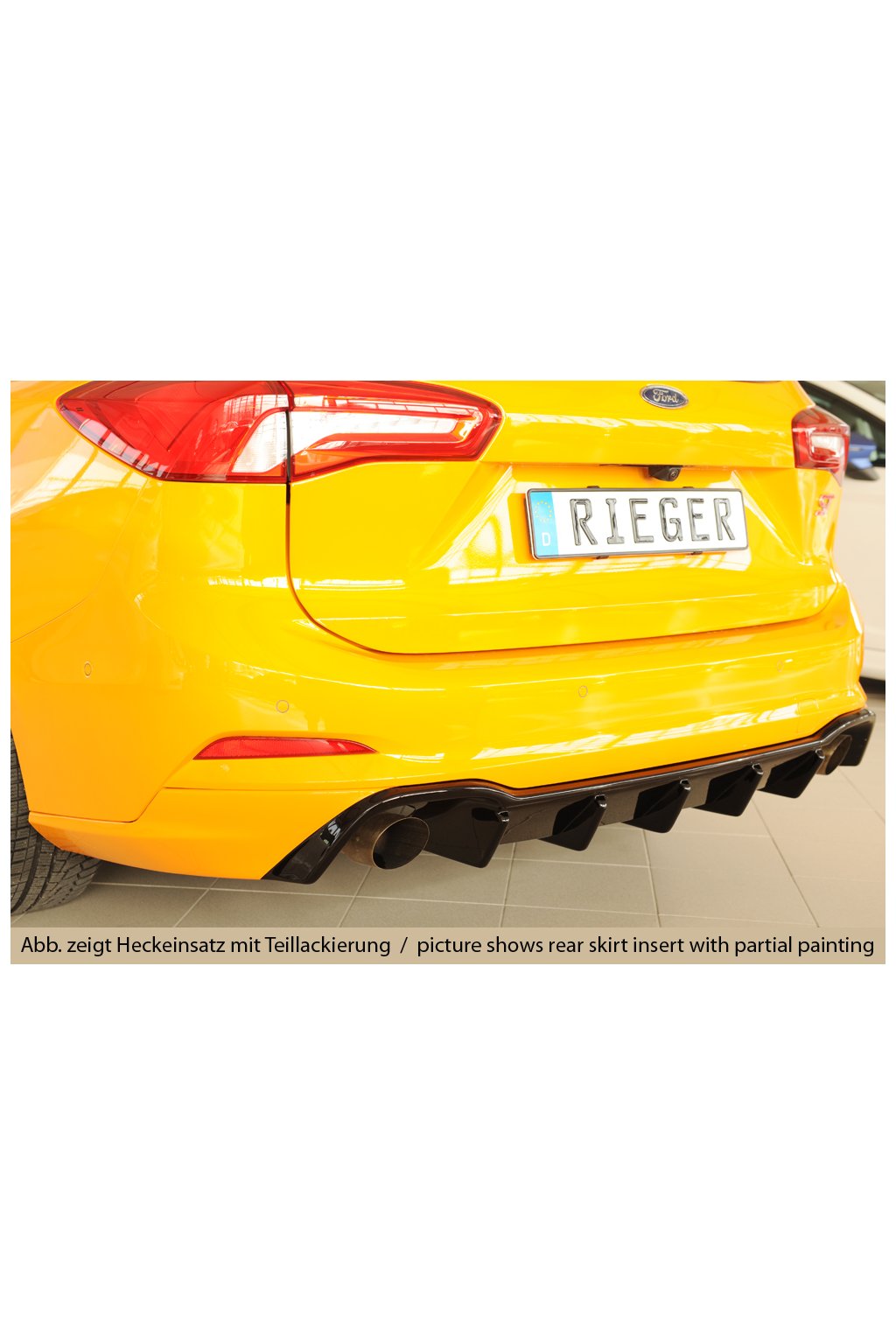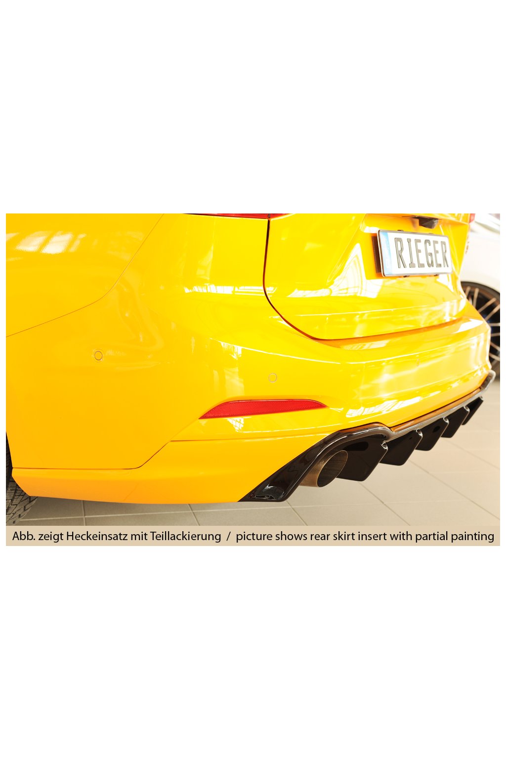 Rieger Tuning vložka zadního nárazníku pro vozy Ford Focus 4 ST 5-dvéř. (combi), 06/19-. Provedení v černém lesklém laku bez nutnosti dalšího lakování.
