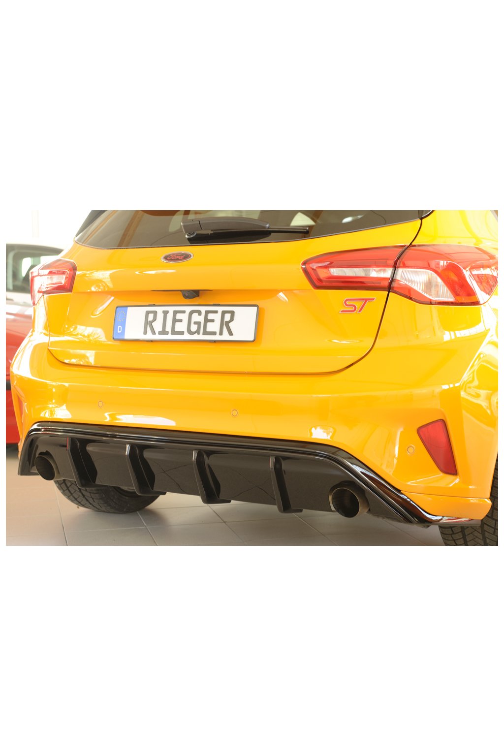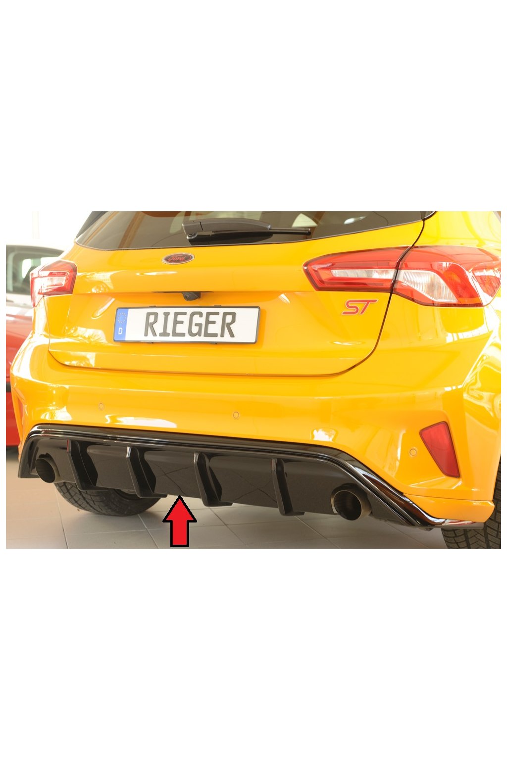 Rieger vložka zadního nárazníku pro Ford Focus 4 ST 5-dvéř. (hatchback), plast ABS lakovaný do černé lesklé barvy