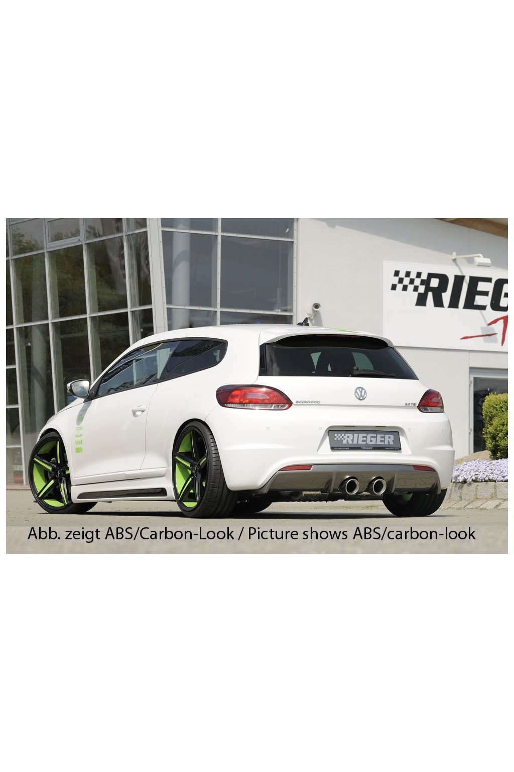 Rieger Tuning vložka zadního nárazníku pro R-Line zadní nárazník pro vozy Volkswagen Scirocco R 13 2-dvéř. vč. faceliftu, 05/14-, 11/09-04/14. Provedení v černém lesklém laku bez nutnosti dalšího lakování.