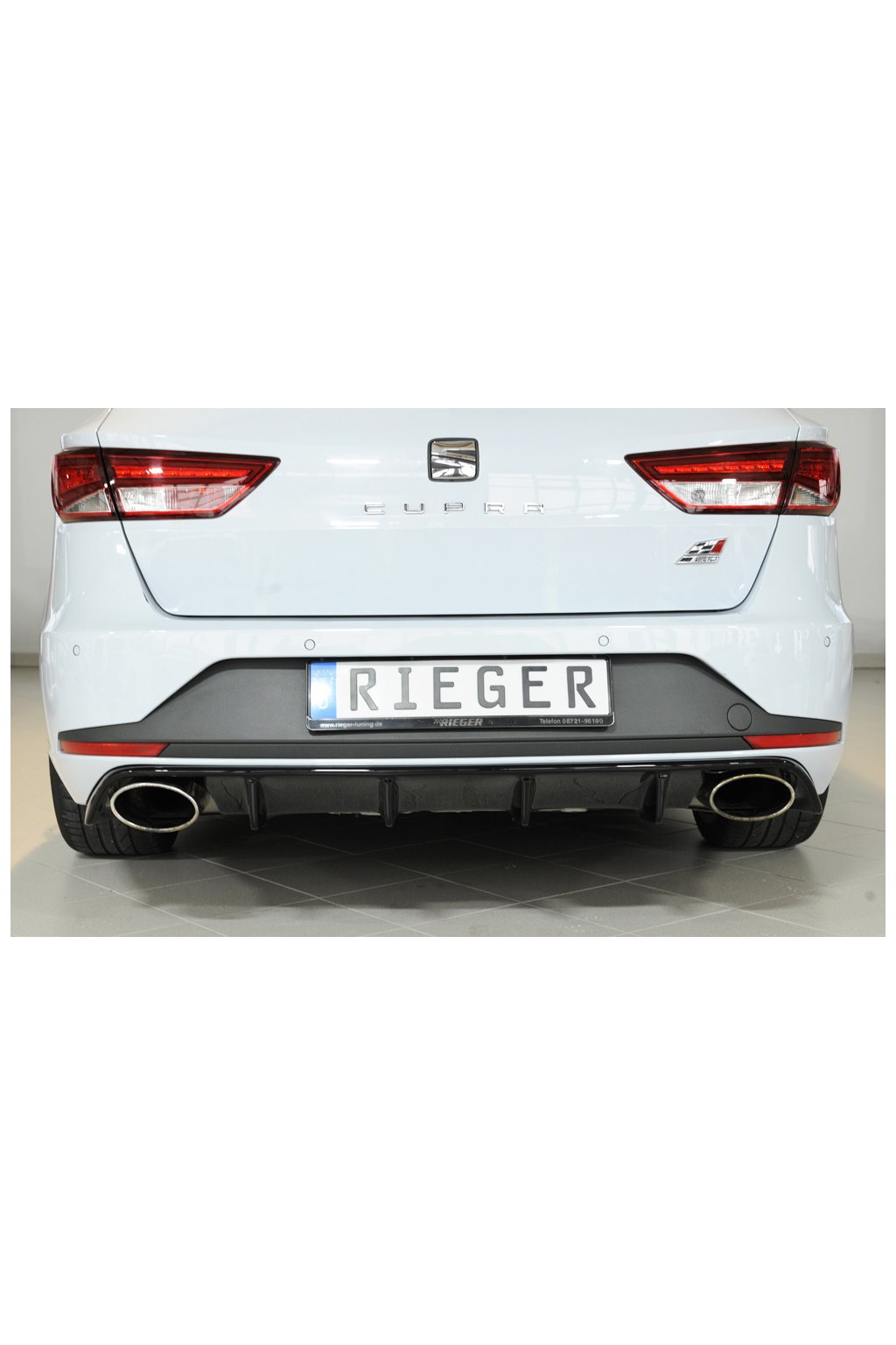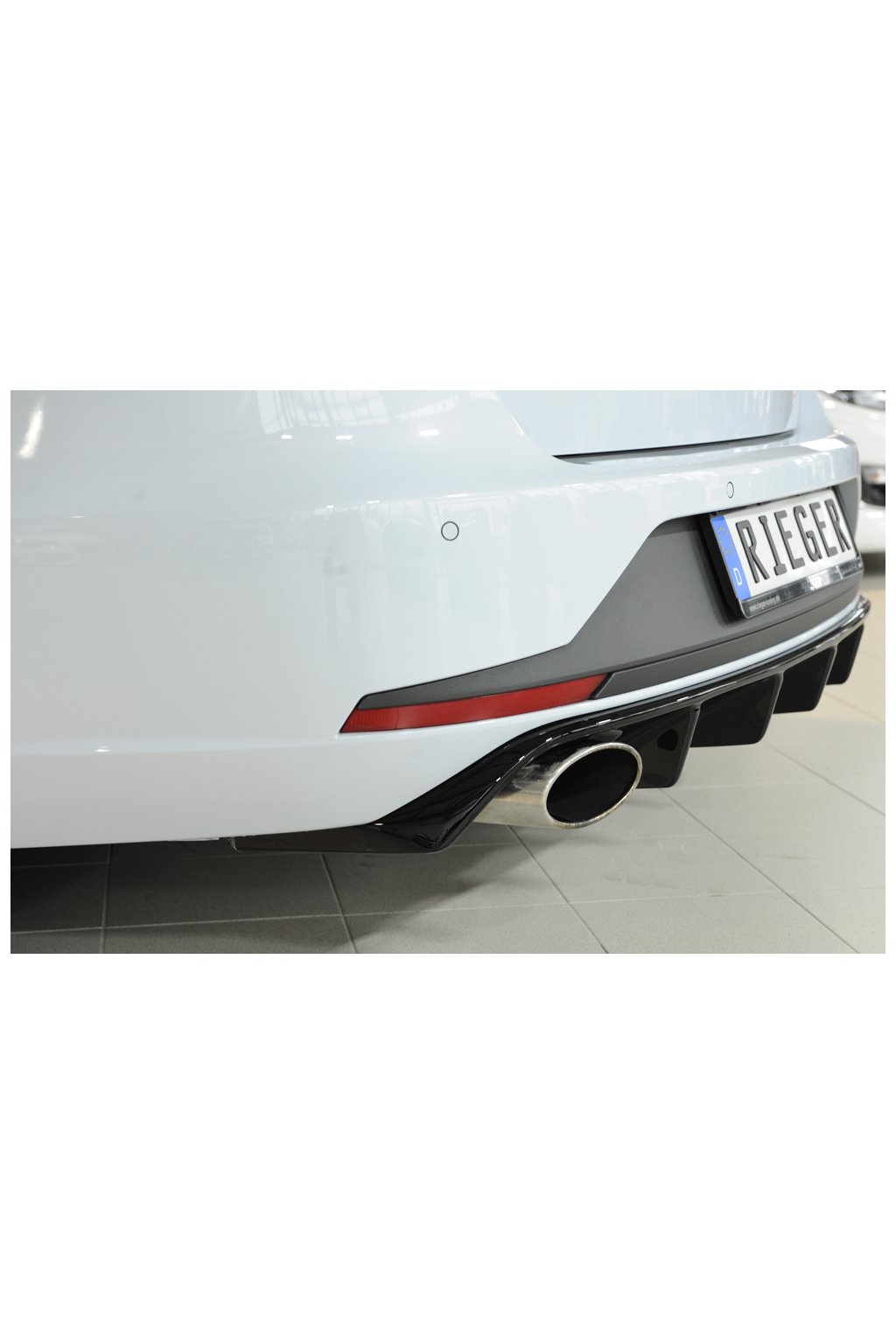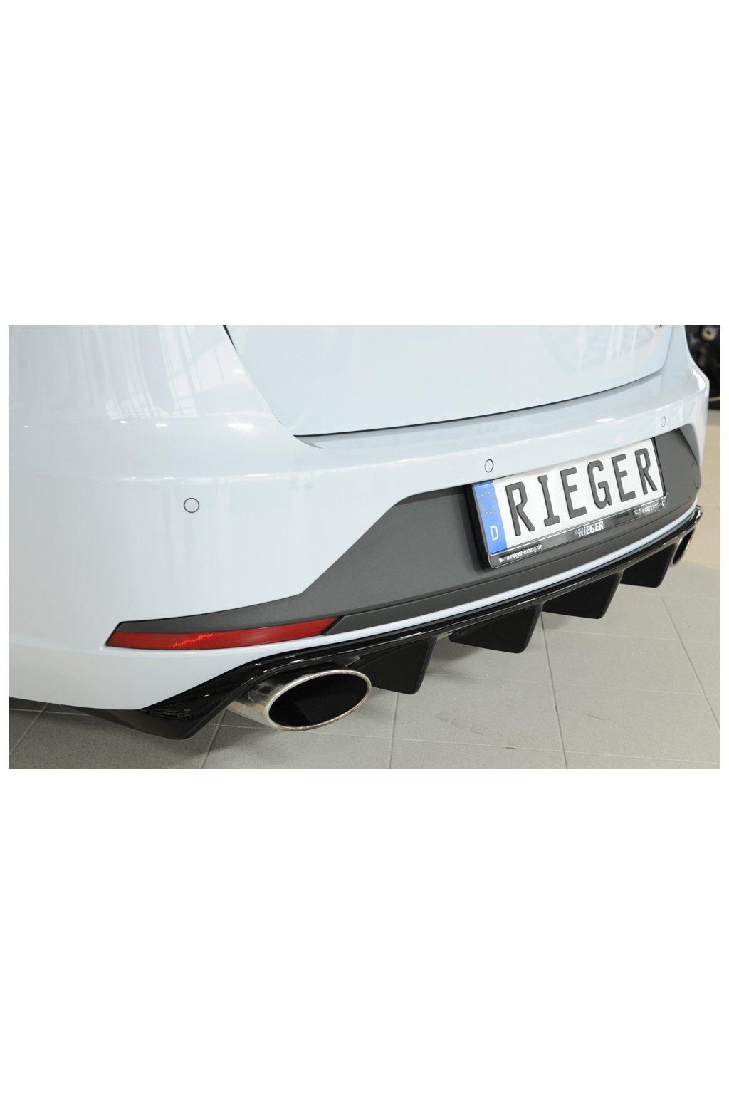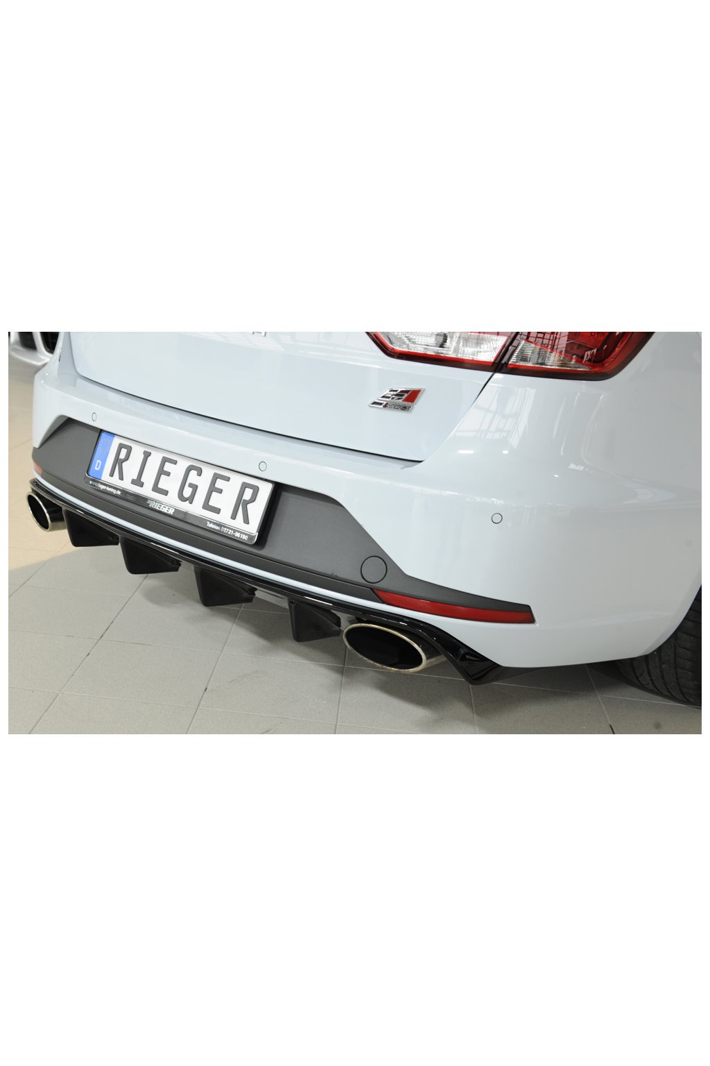 Rieger Tuning vložka zadního nárazníku pro vozy Seat Leon Cupra 5F 5-dvéř. (ST/Combi) před faceliftem, 03/14-12/16. Provedení v černém lesklém laku bez nutnosti dalšího lakování.