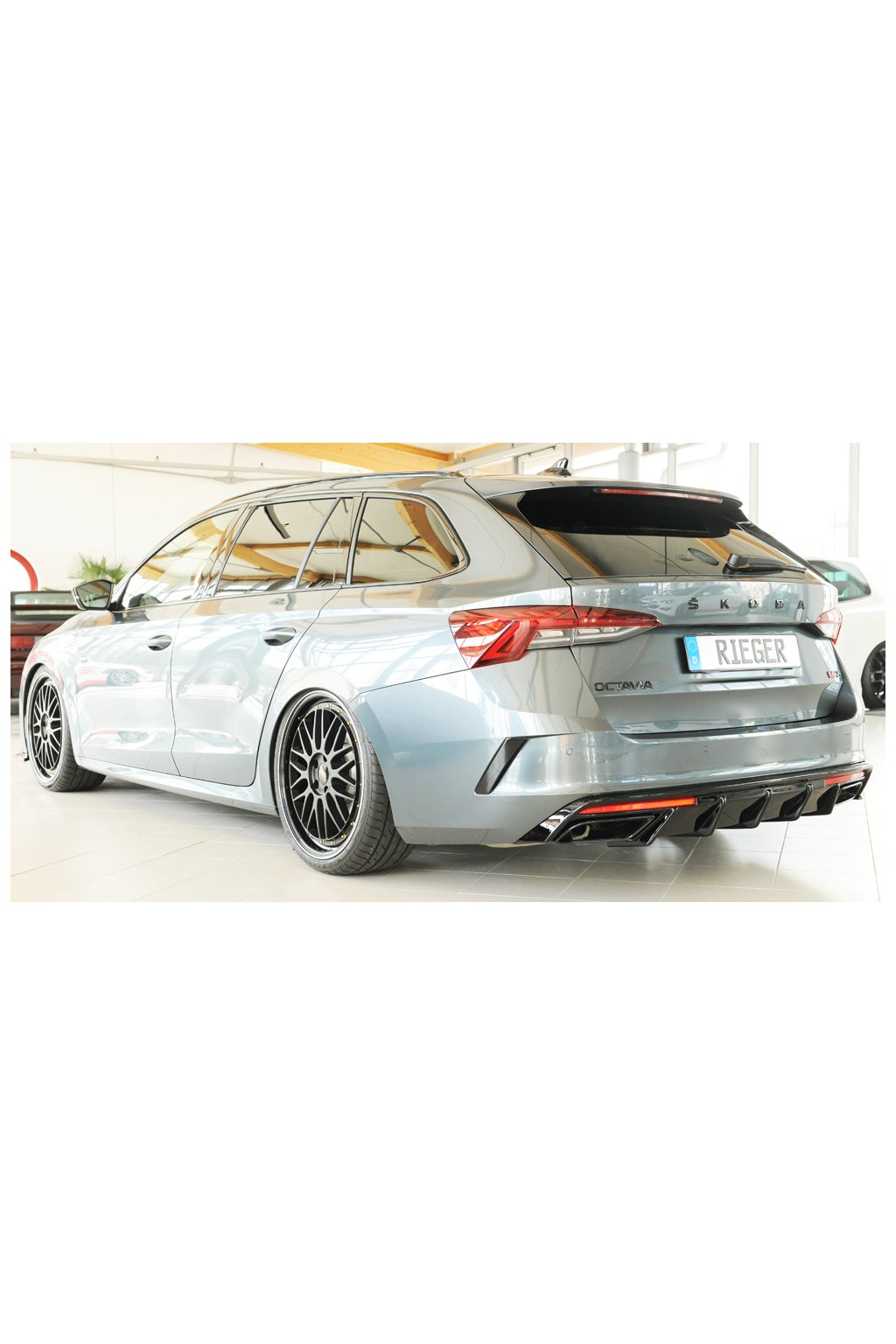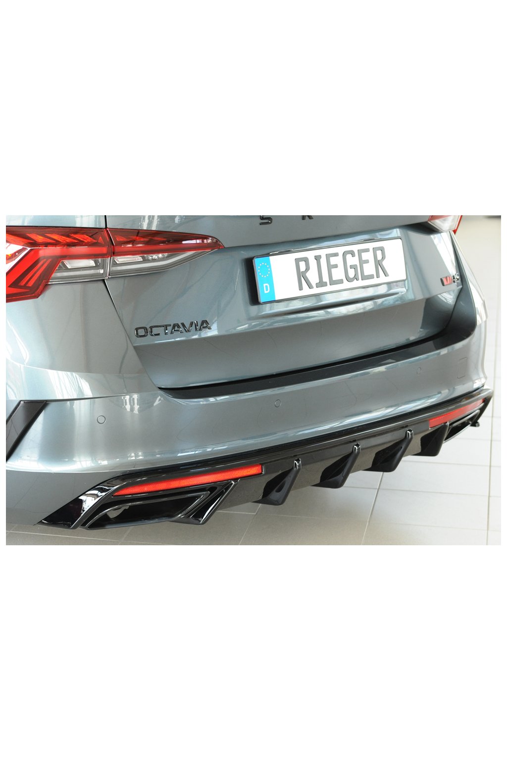 Rieger Tuning vložka zadního nárazníku pro vozy Škoda Octavia RS NX combi, 07/20-. Provedení v černém lesklém laku bez nutnosti dalšího lakování.