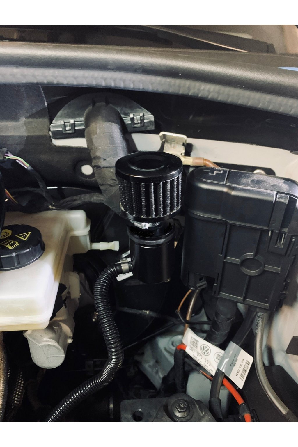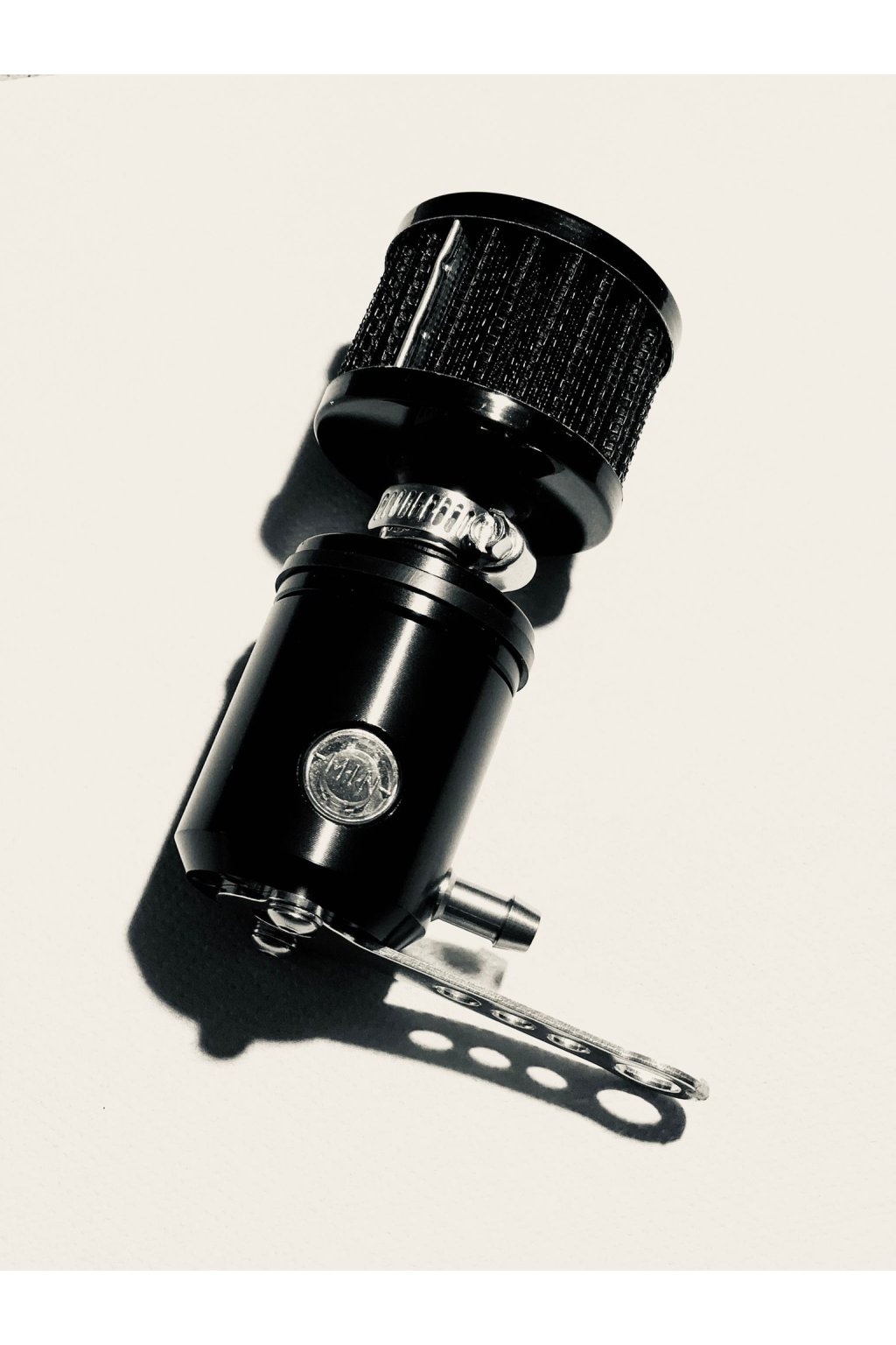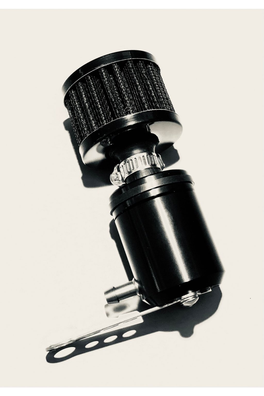 Hliníková odvzdušňovací nádoba RSRTuned pro DSG převodovky určená pro vozy Audi RS3 8V nebo TTRS 8S nahrazuje malý plastový větrací otvor a zabraňuje vytlačování převodové kapaliny, která následně stříká po motorovém prostoru. Převodová kapalina, která se shromažďuje v záchytu, může odtékat zpět do převodovky.