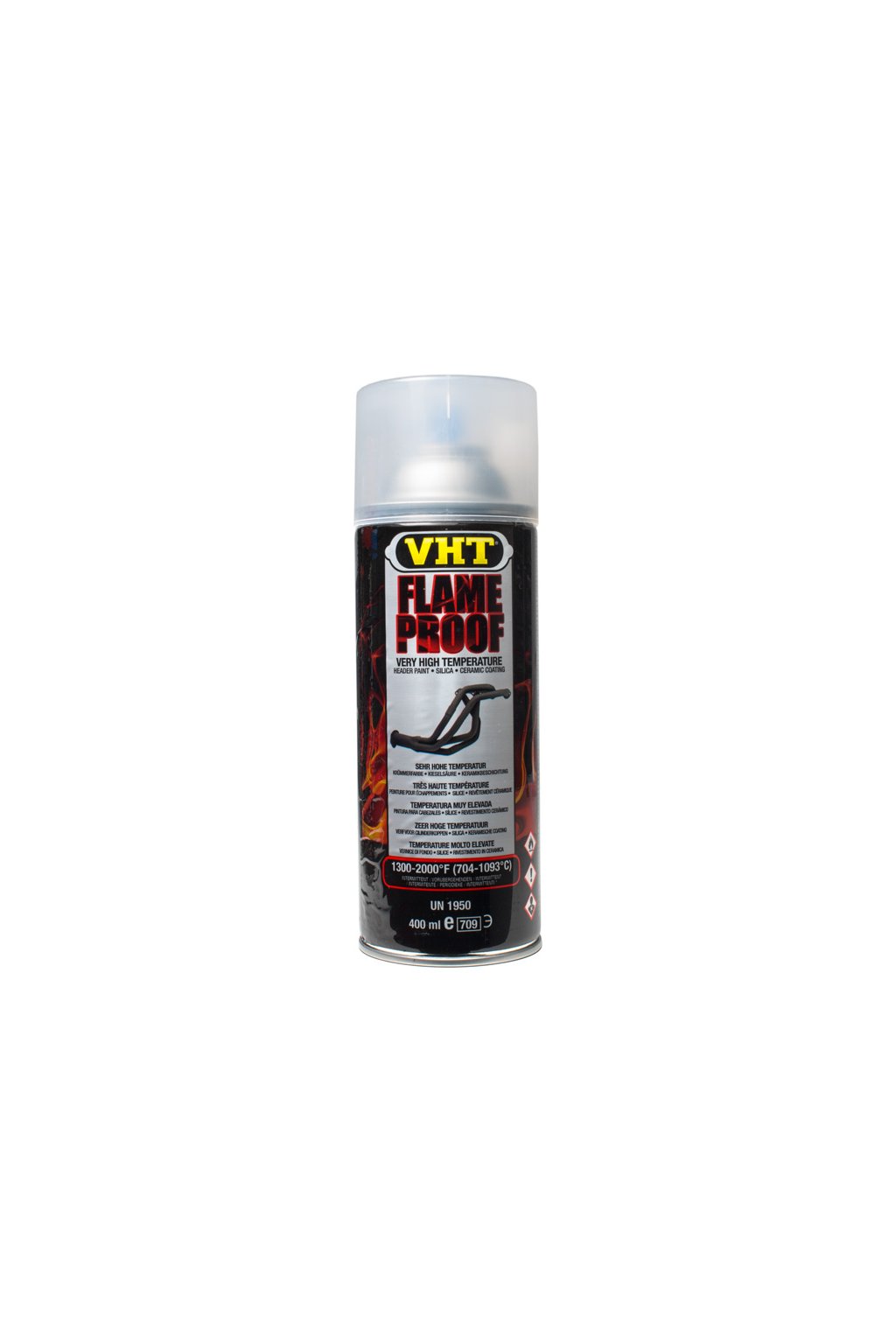 VHT Flameproof™ Clear - krycí čirý lak na Flameproof žáruvzdornou barvu. Ta obnovuje a prodlužuje životnost povrchům vystavovaným extrémním teplotám (až 1093°C). V automobilovém průmyslu se nejčastěji využívá pro lakování svodů a dalších výfukových částí či bloků a hlav motoru.
