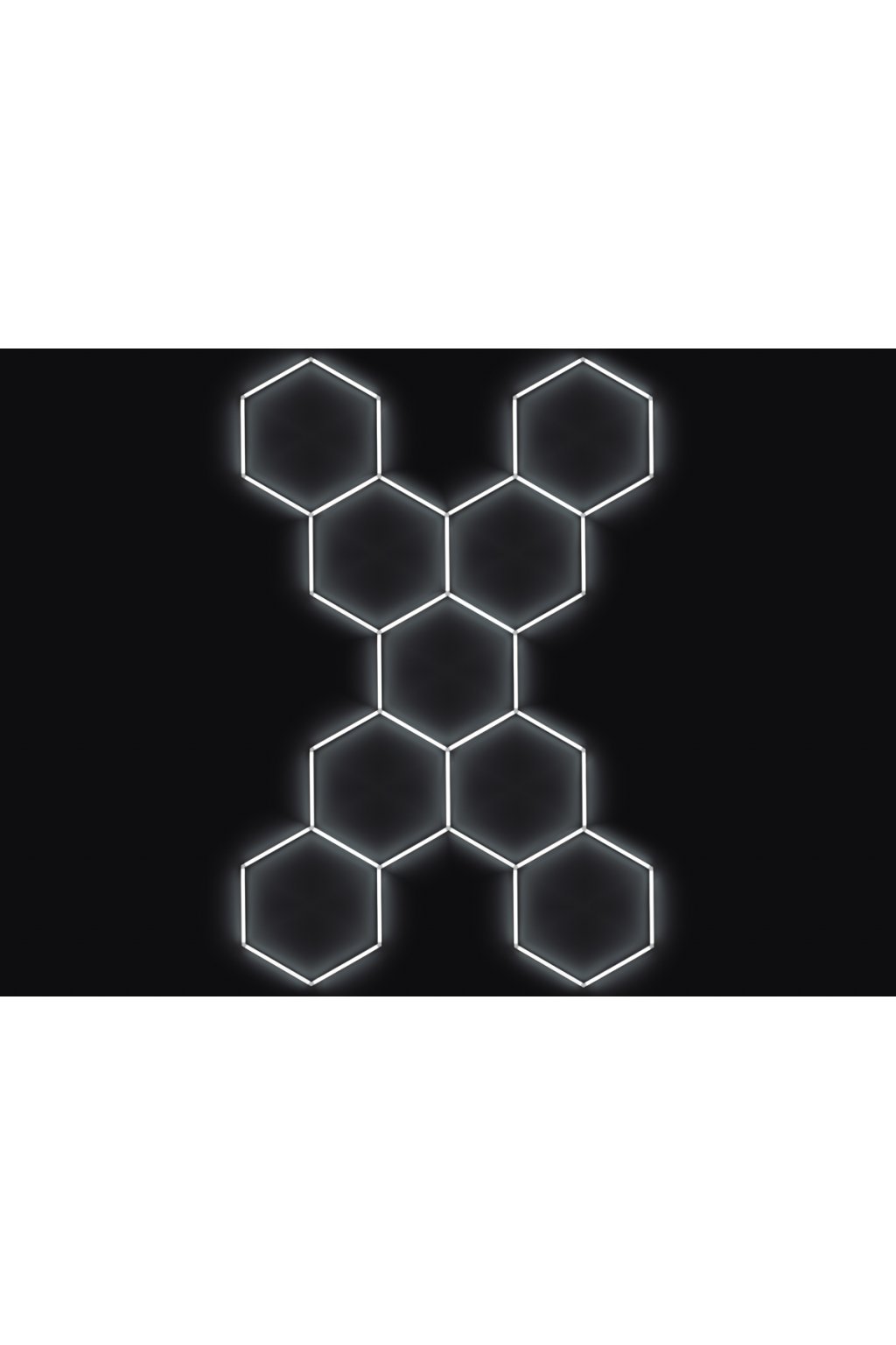 Kompletní LED hexagonové svítidlo bílé 4500 K, rozměr: 9 elementů 246 x 386 cm tvar X